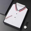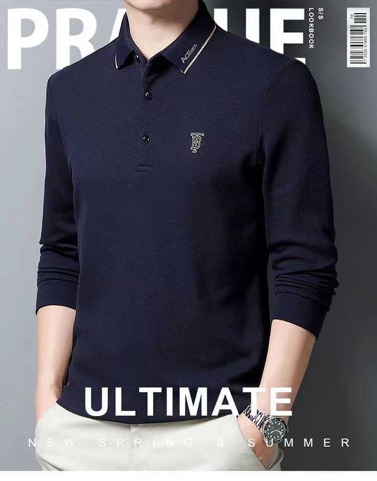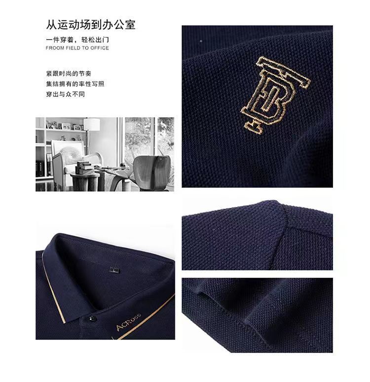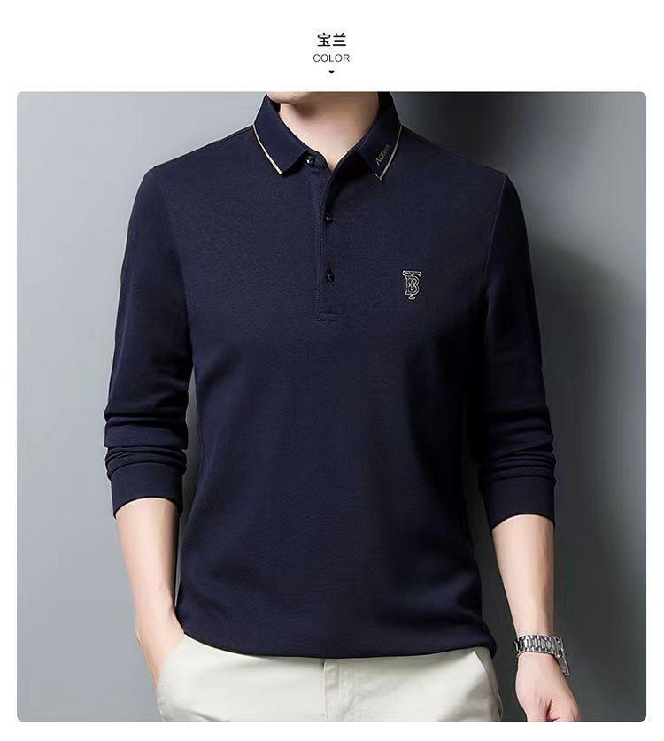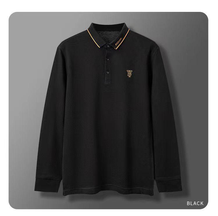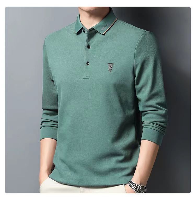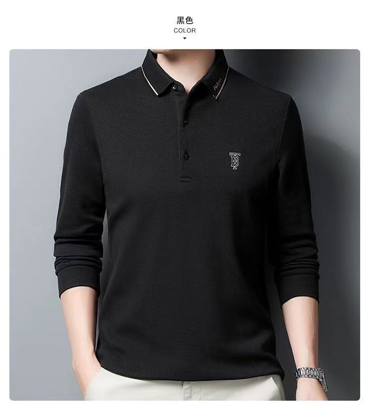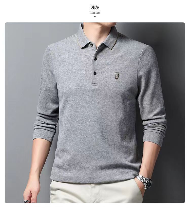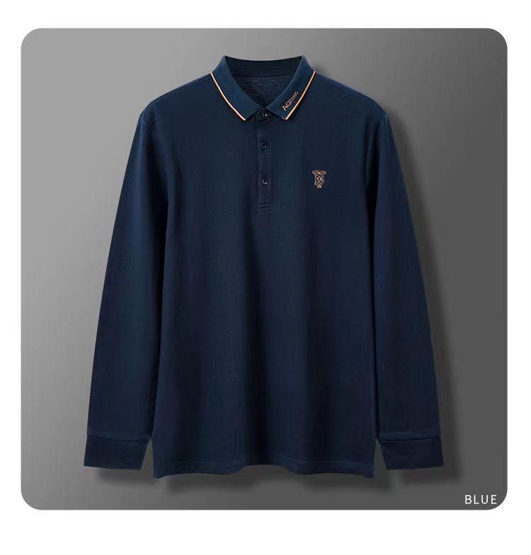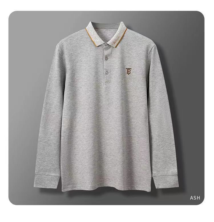 Camiseta de manga larga para hombre de otoño directa de fábrica, polo de talla grande con solapa bordada, top de color sólido para negocios para jóvenes y mediana edad