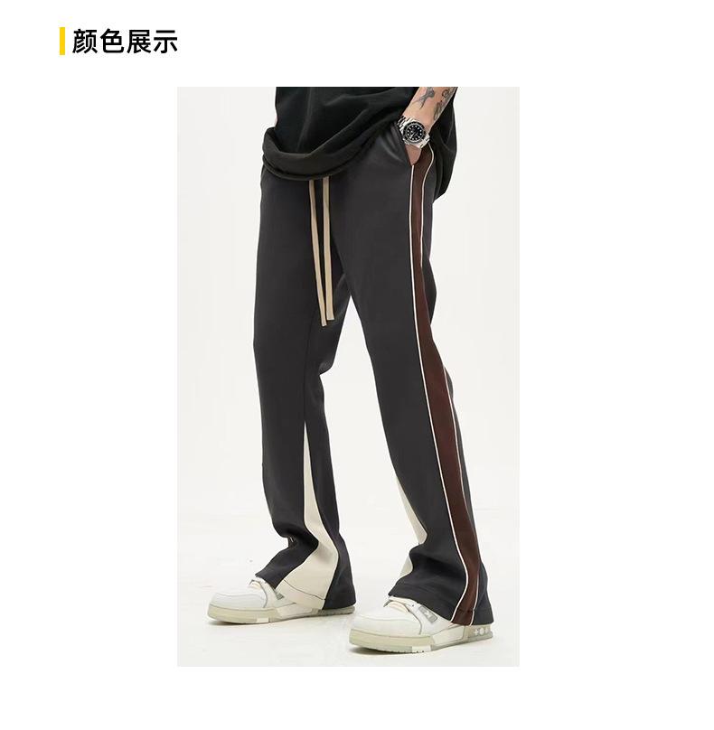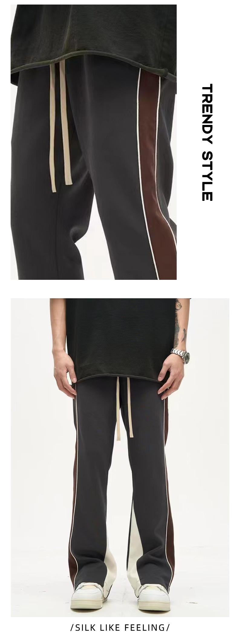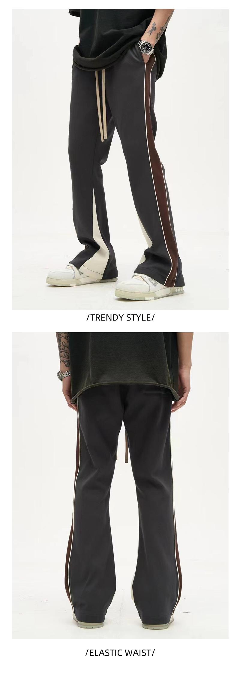 Pantalones casuales a rayas con microcuernos y costuras de colores callejeros americanos, nuevos pantalones rectos sueltos de hip hop de moda.