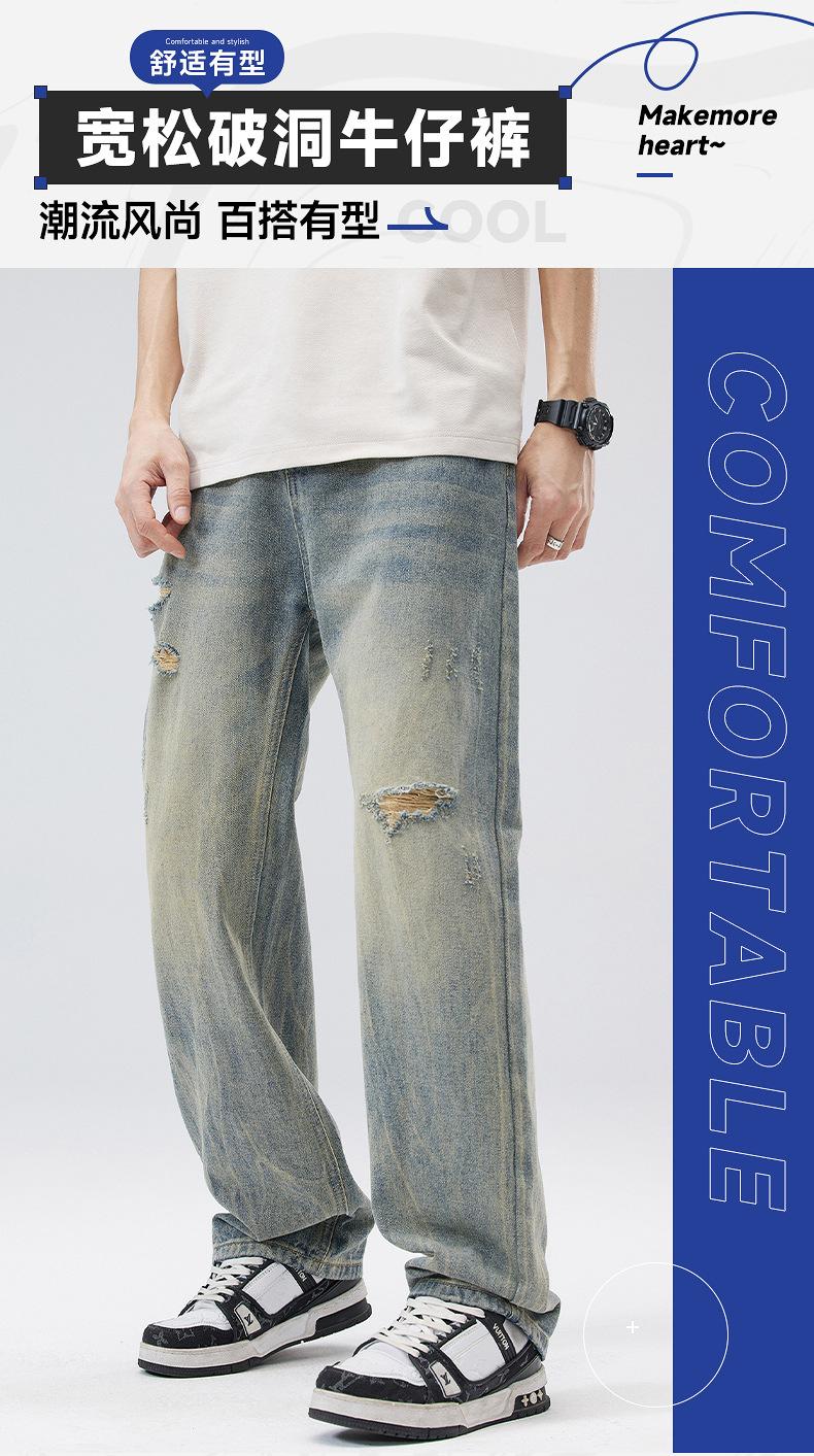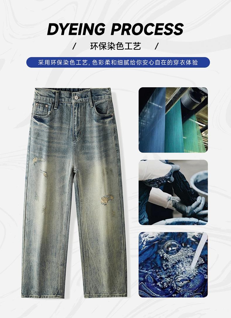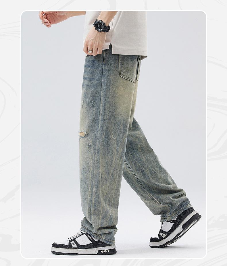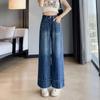 Primavera 2024 High Street Americanos Lavados Rotos Rectos Pierna Ancha Azul Claro