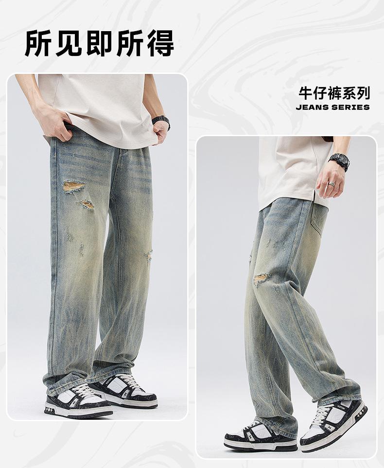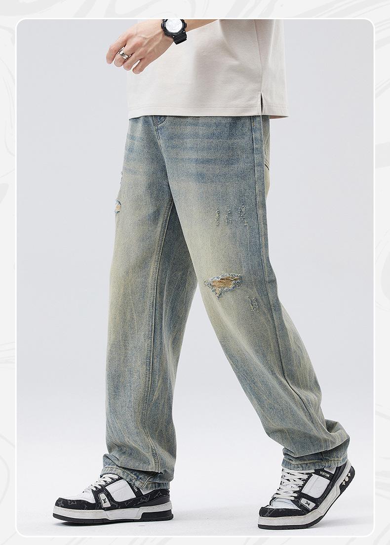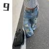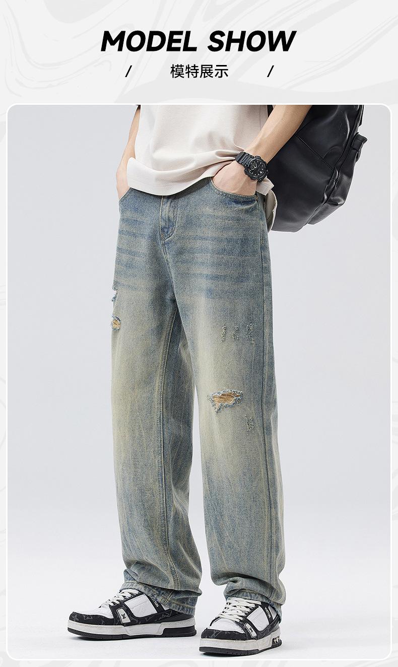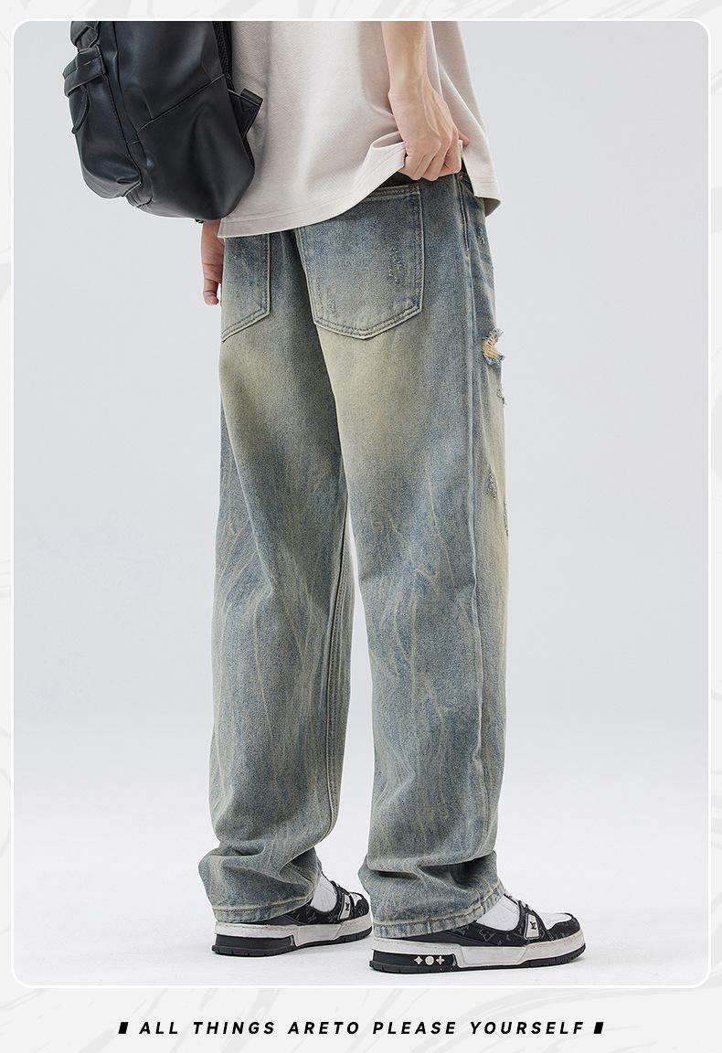 Primavera 2024 High Street Americanos Lavados Rotos Rectos Pierna Ancha Azul Claro