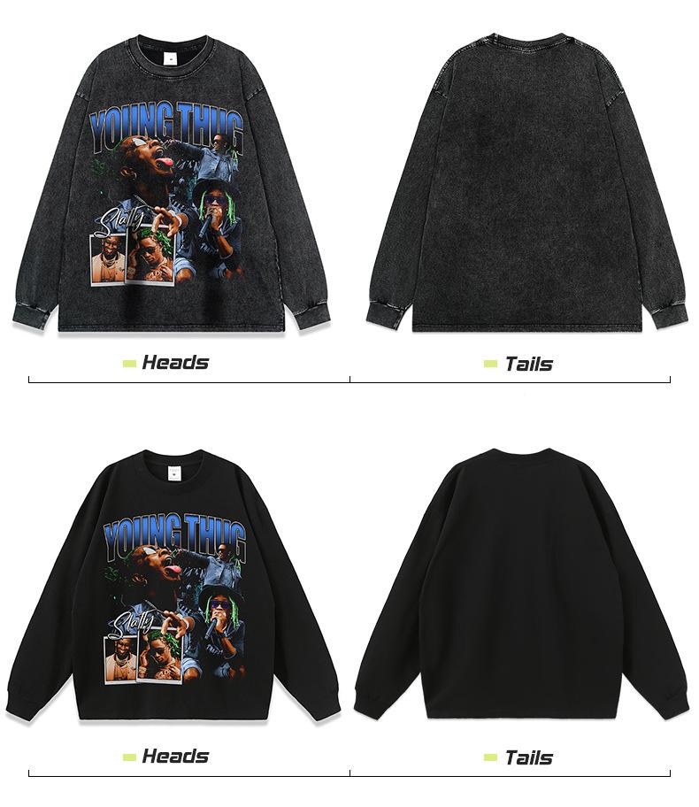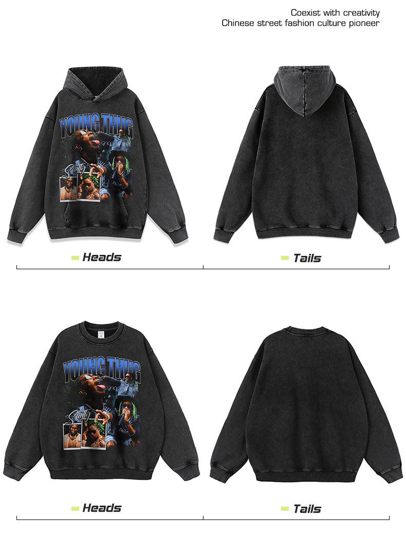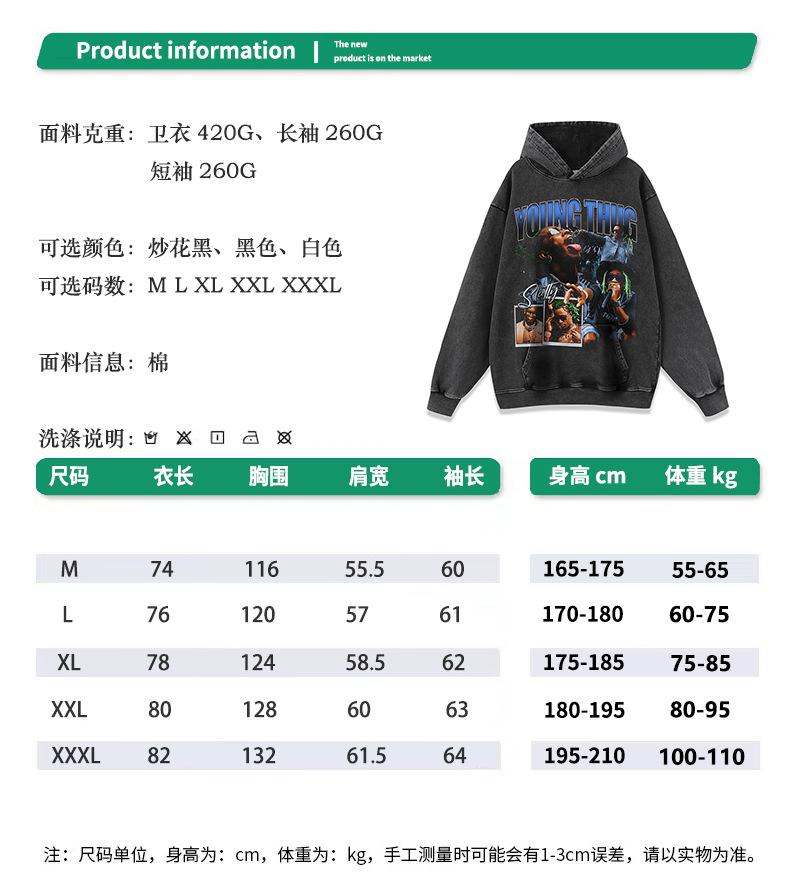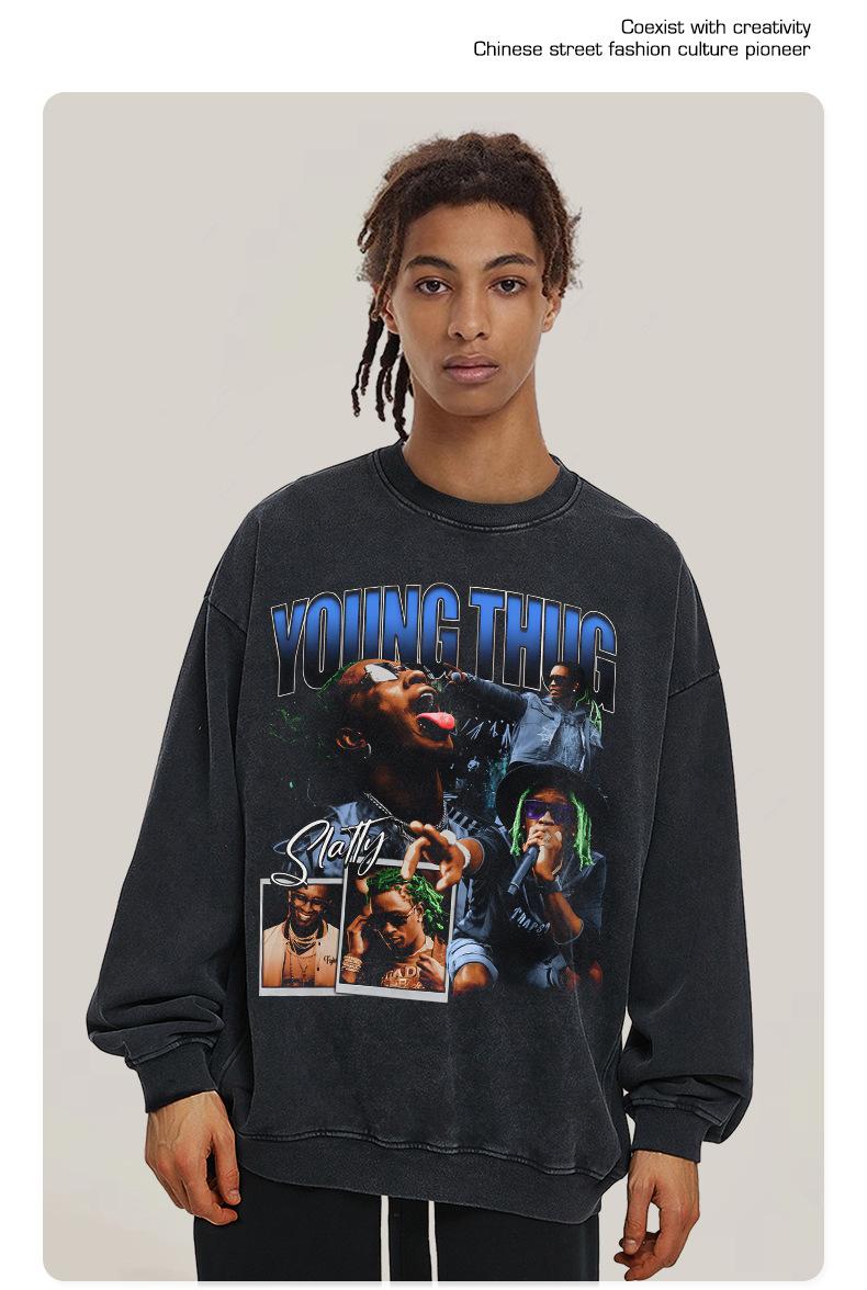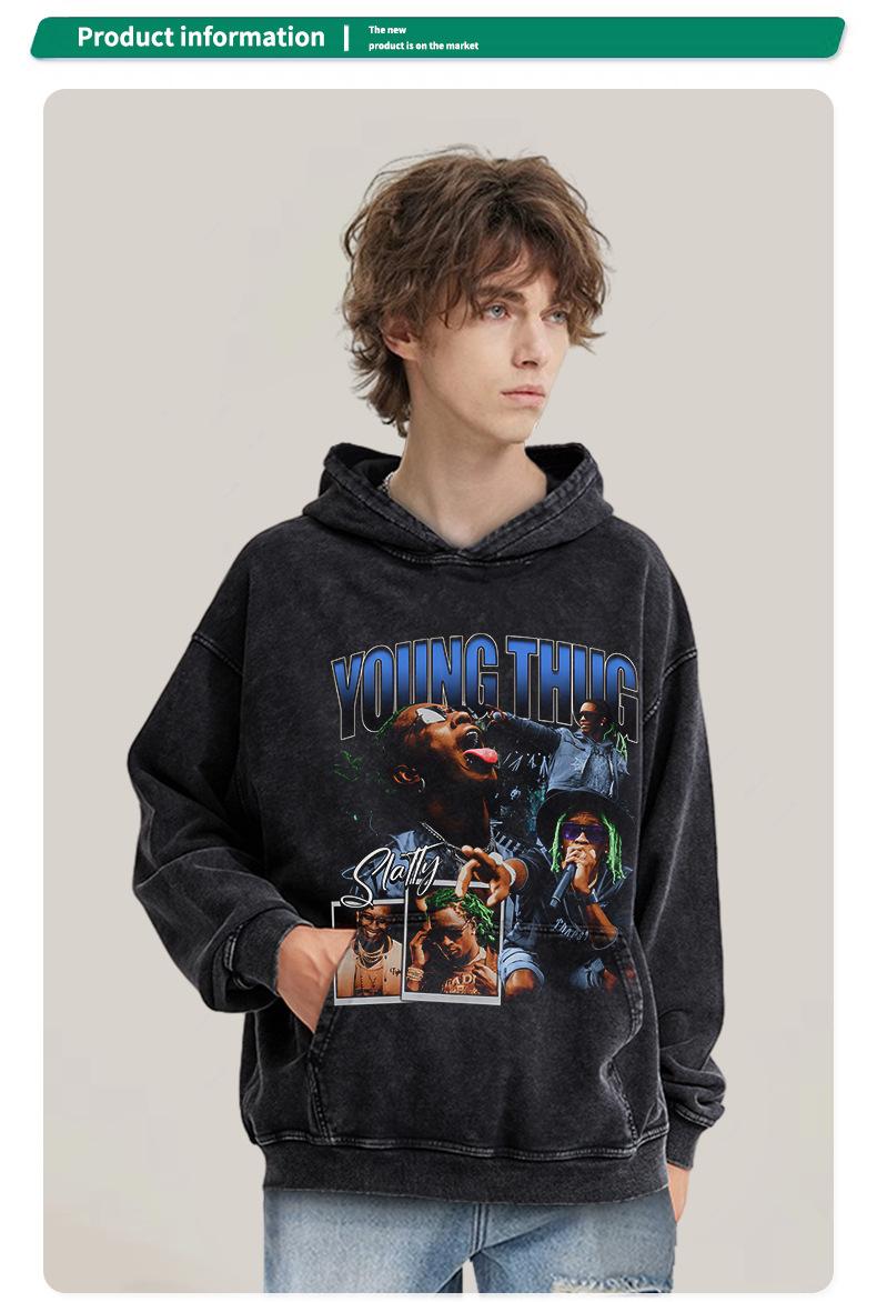 Sudadera con capucha pesada lavada y muy desgastada con estampado de rap americano para hombre y mujer, marca de moda hip hop, abrigo oversize transfronterizo