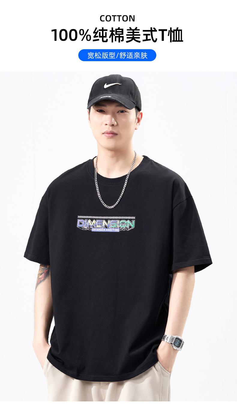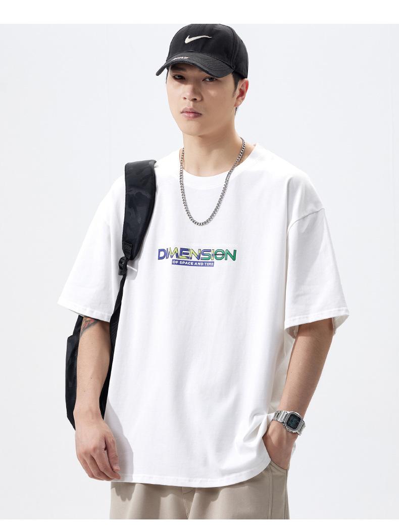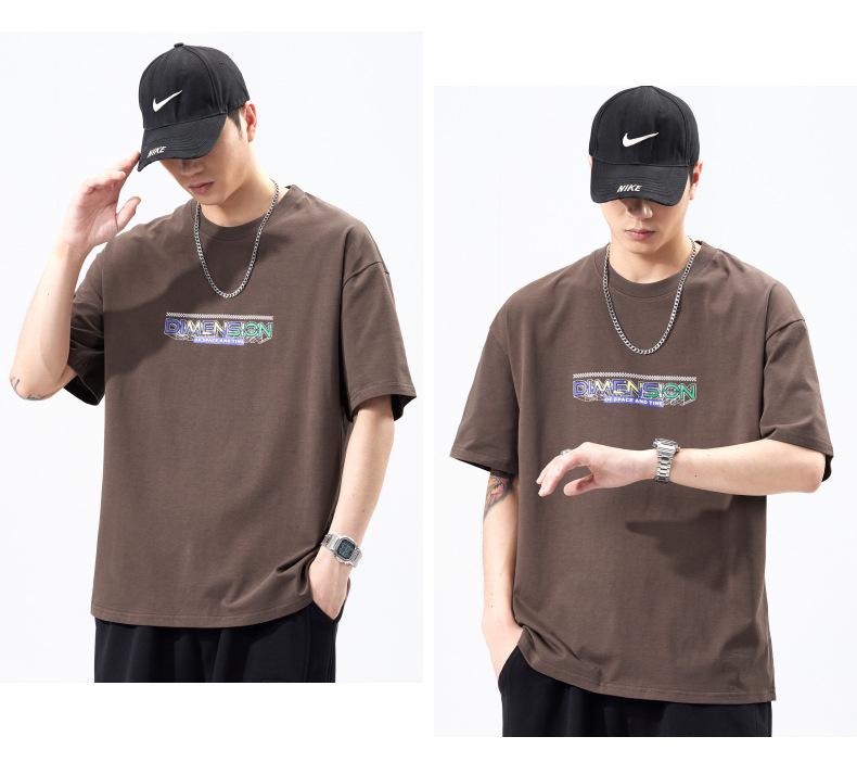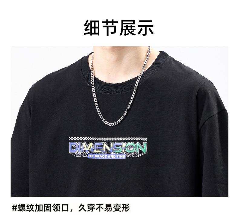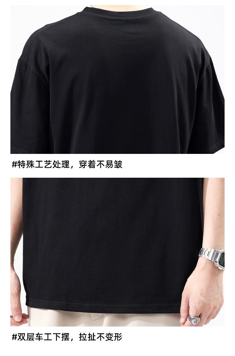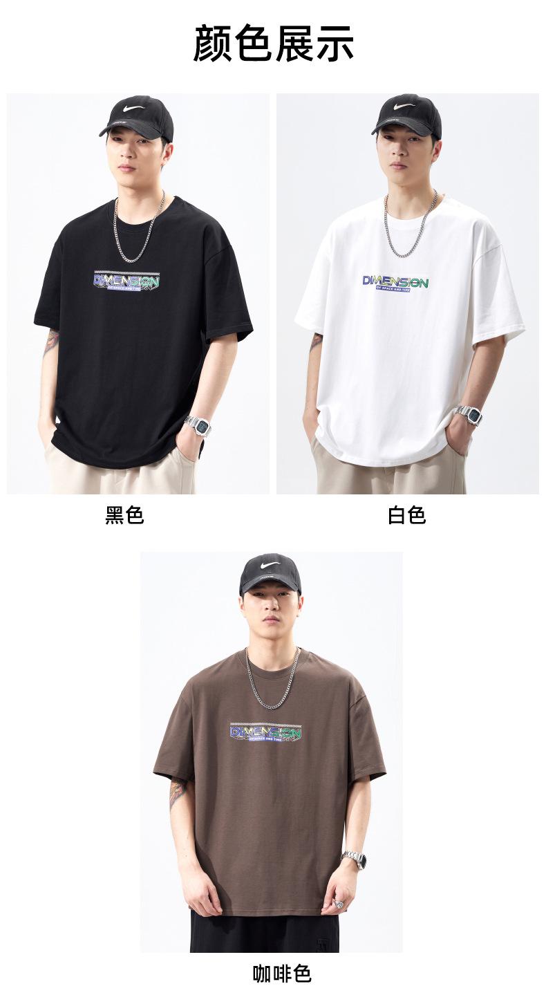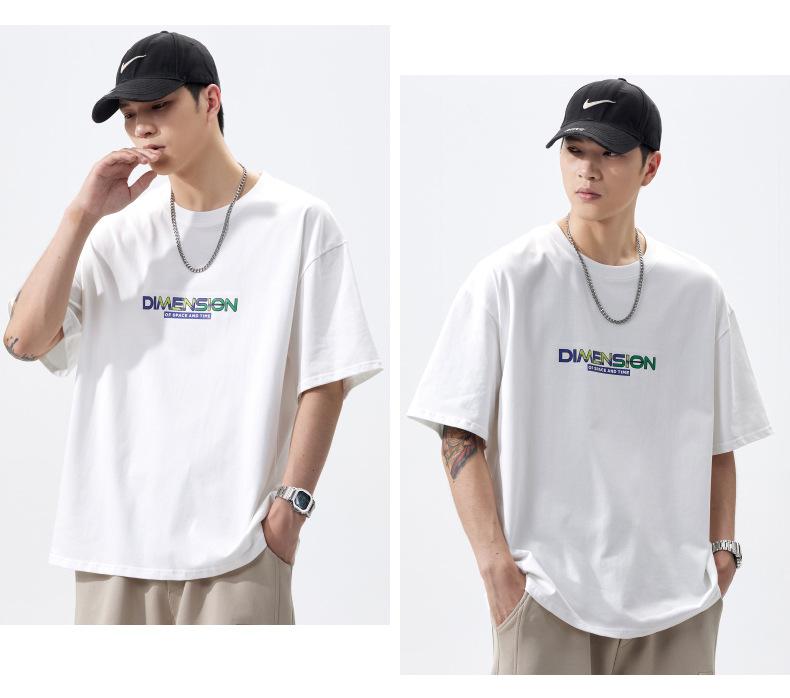 T2429 | Camiseta de verano para hombre, talla grande, algodón grueso de 260 g, cuello redondo, holgada, sencilla, estampada, de manga corta.