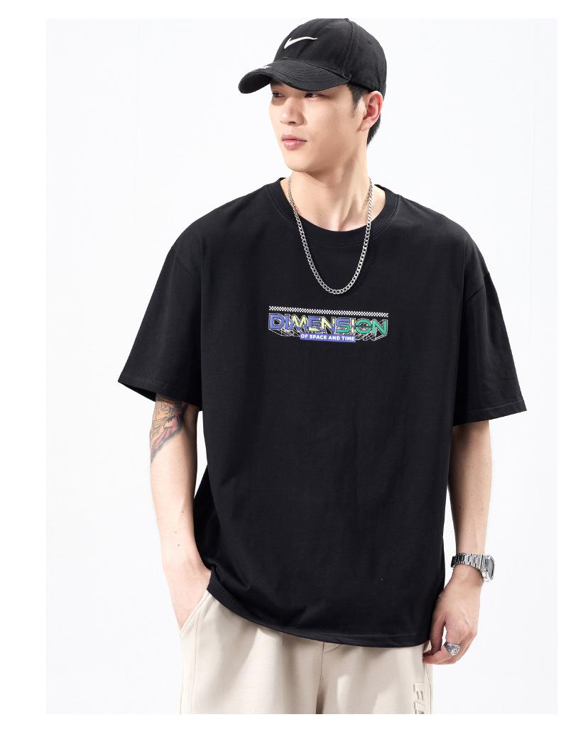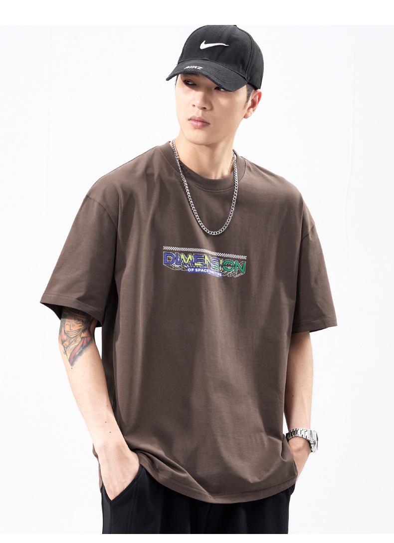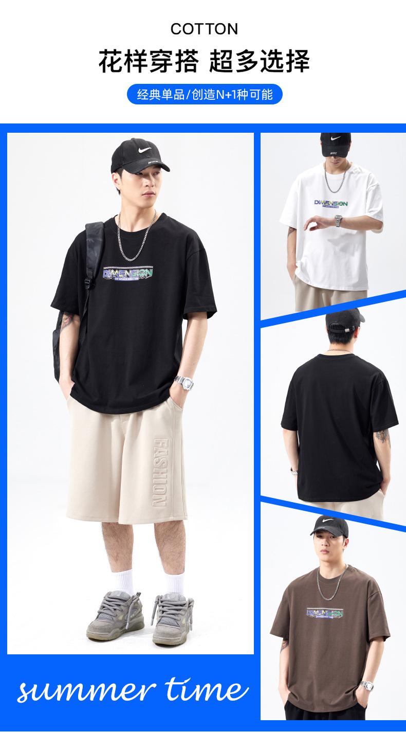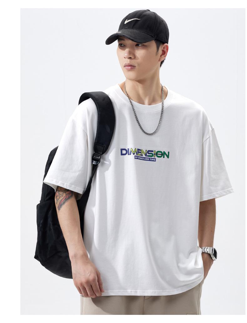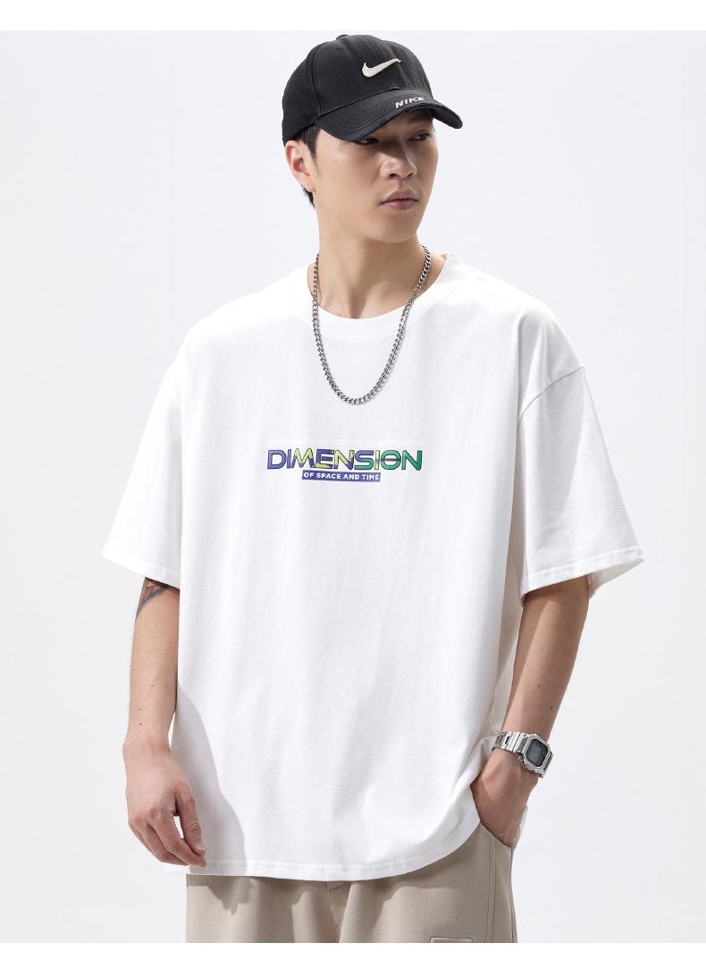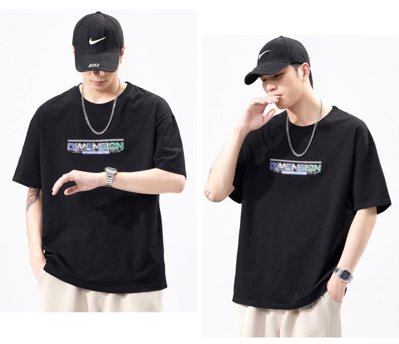 T2429 | Camiseta de verano para hombre, talla grande, algodón grueso de 260 g, cuello redondo, holgada, sencilla, estampada, de manga corta.