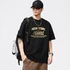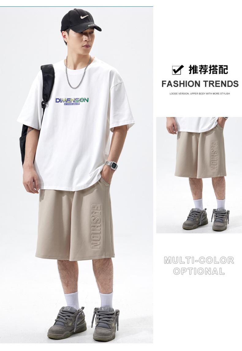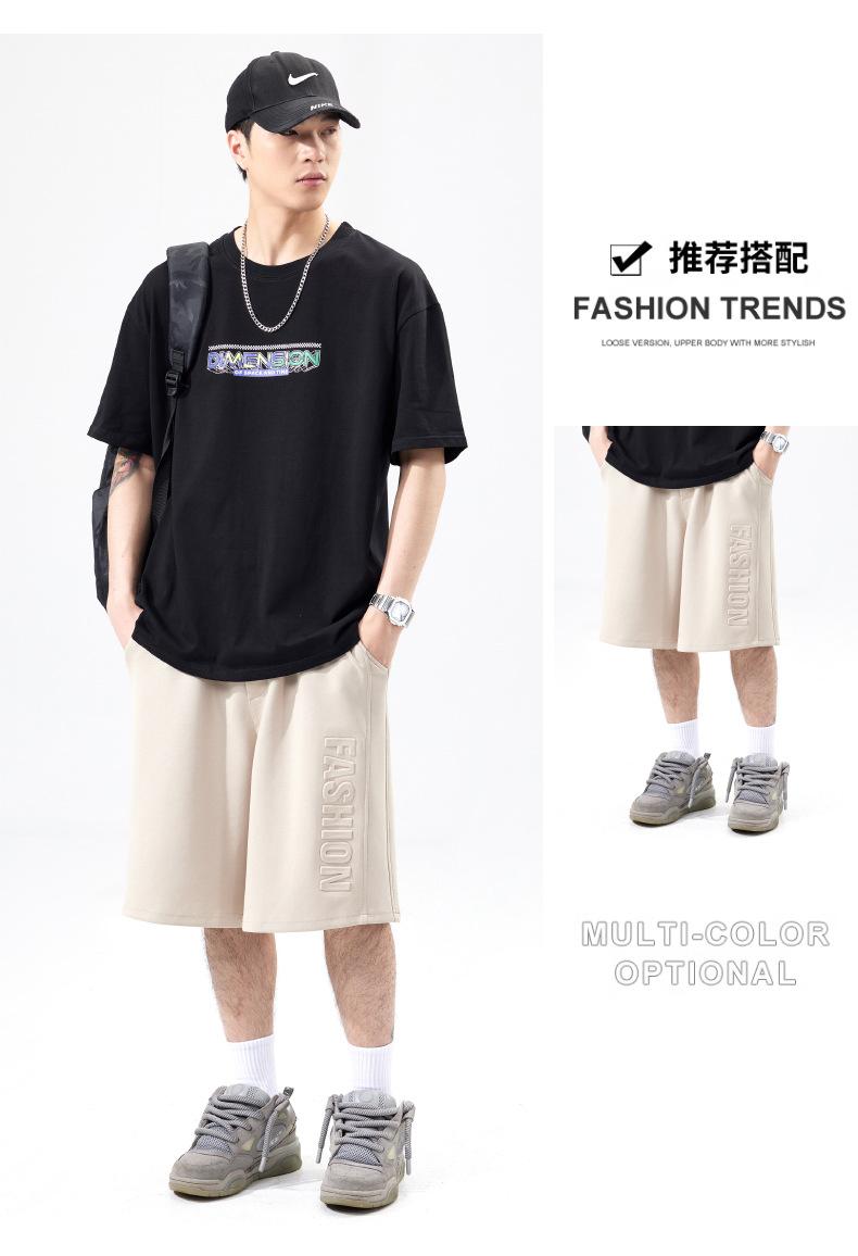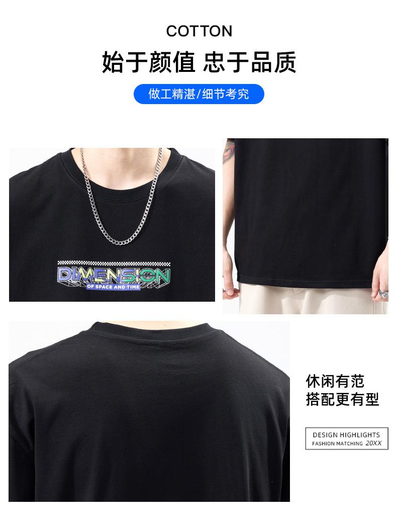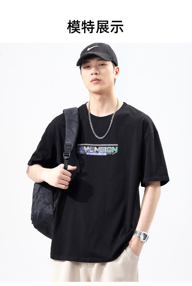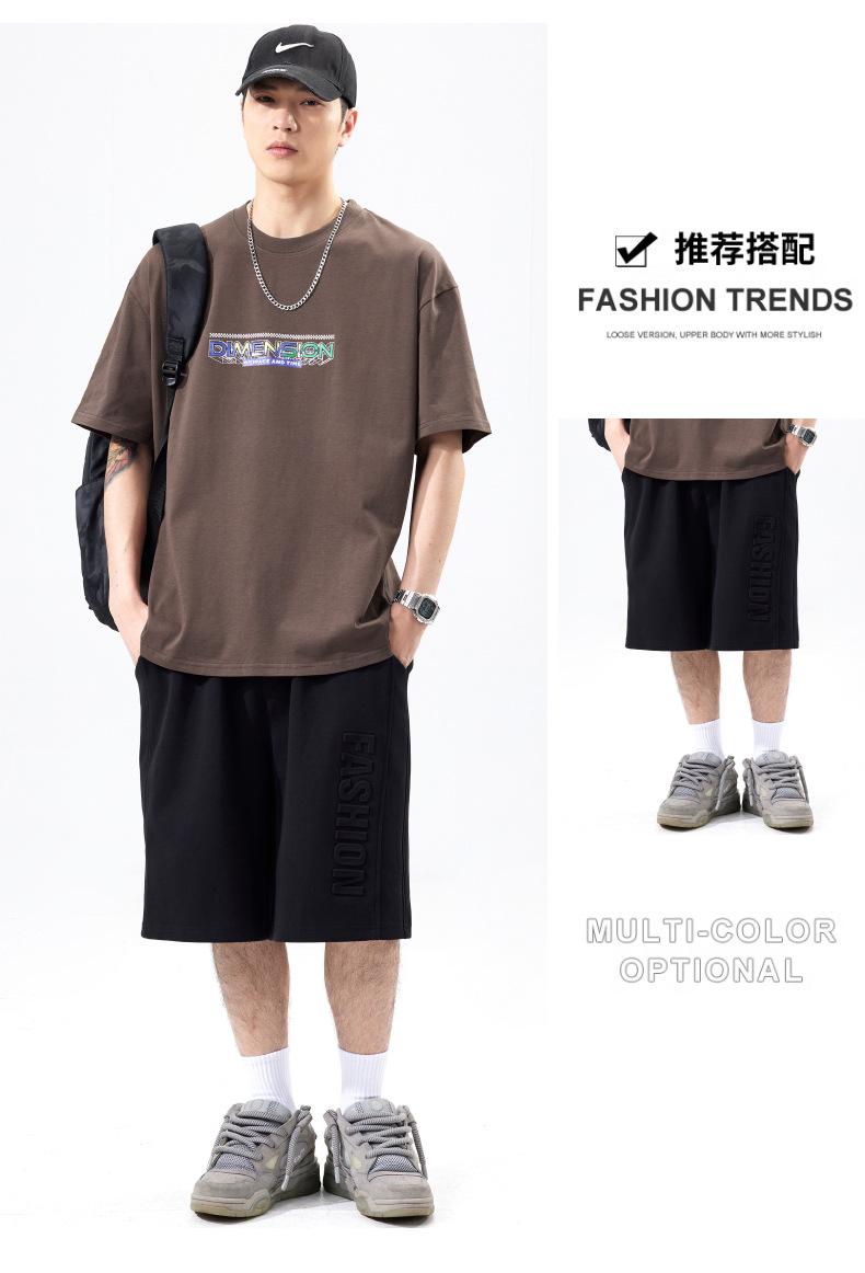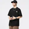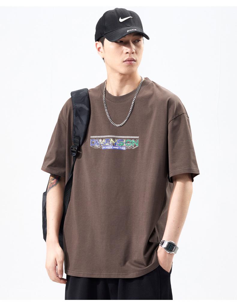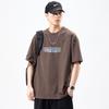 T2429 | Camiseta de verano para hombre, talla grande, algodón grueso de 260 g, cuello redondo, holgada, sencilla, estampada, de manga corta.