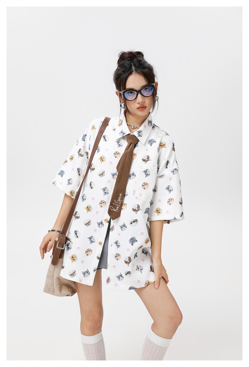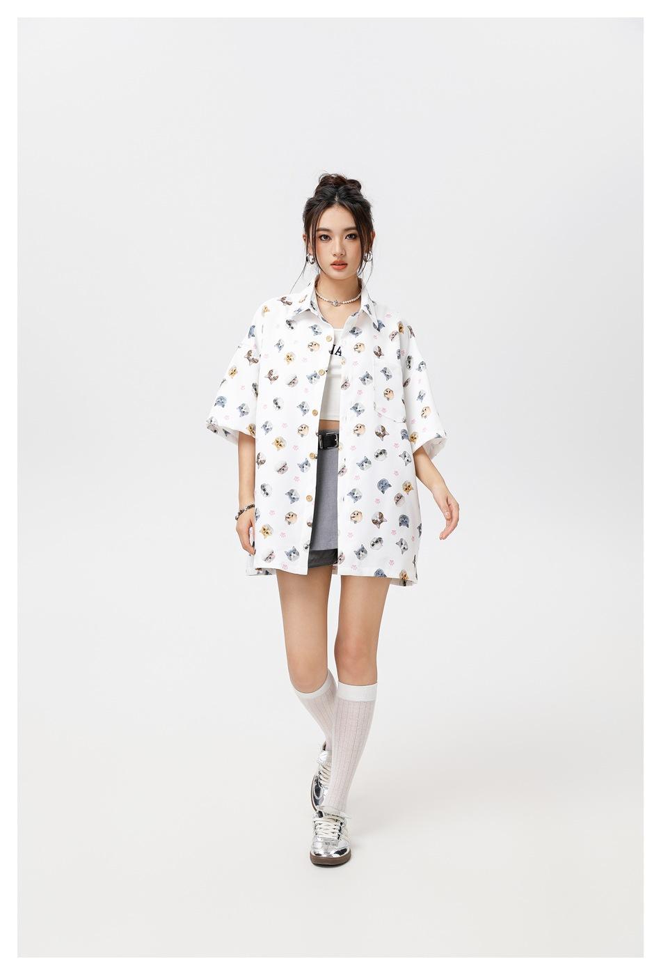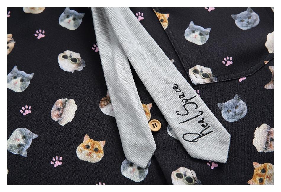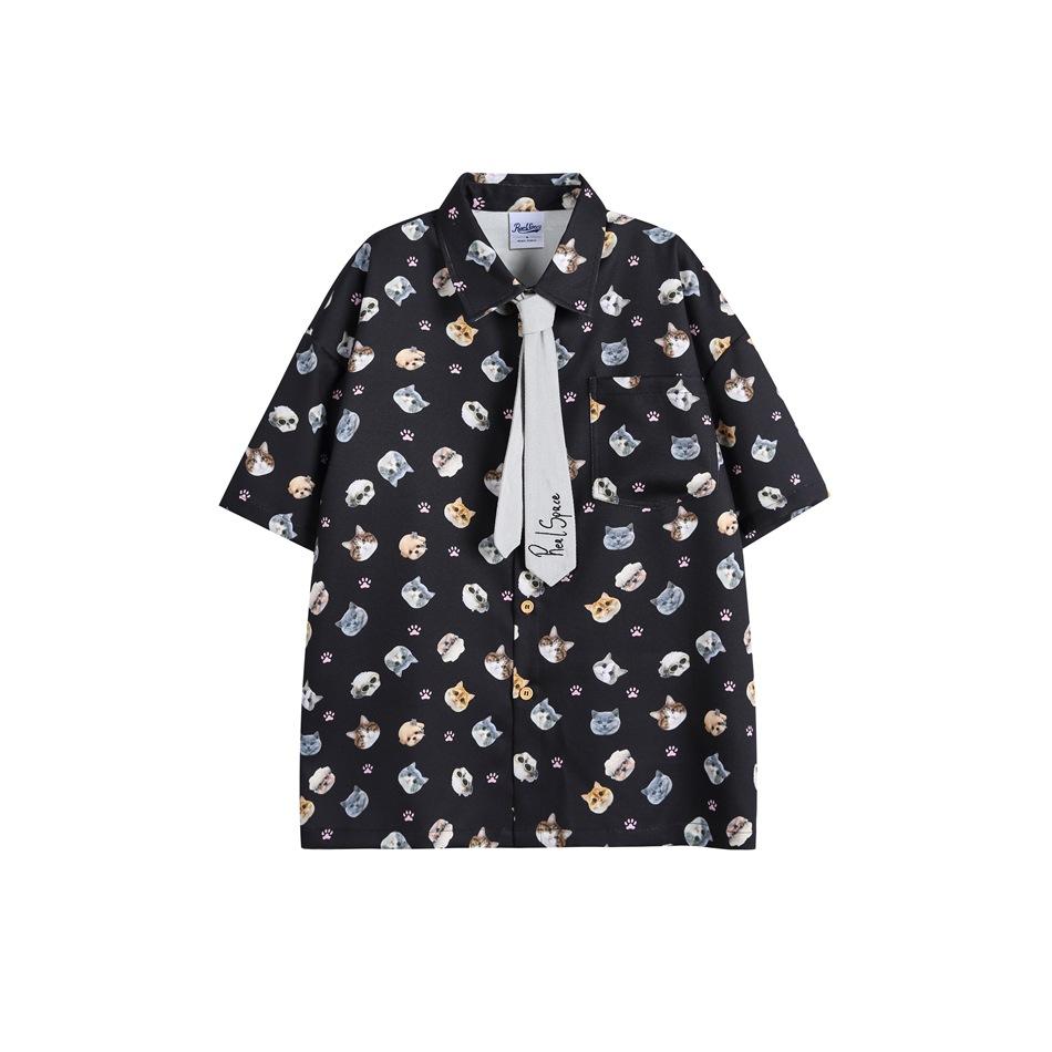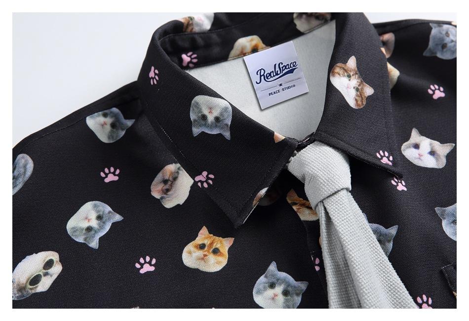 Camiseta de manga corta de verano con estampado de gato para hombre y mujer de REALSPACE Youth Campus, marca de moda para estudiantes SC74