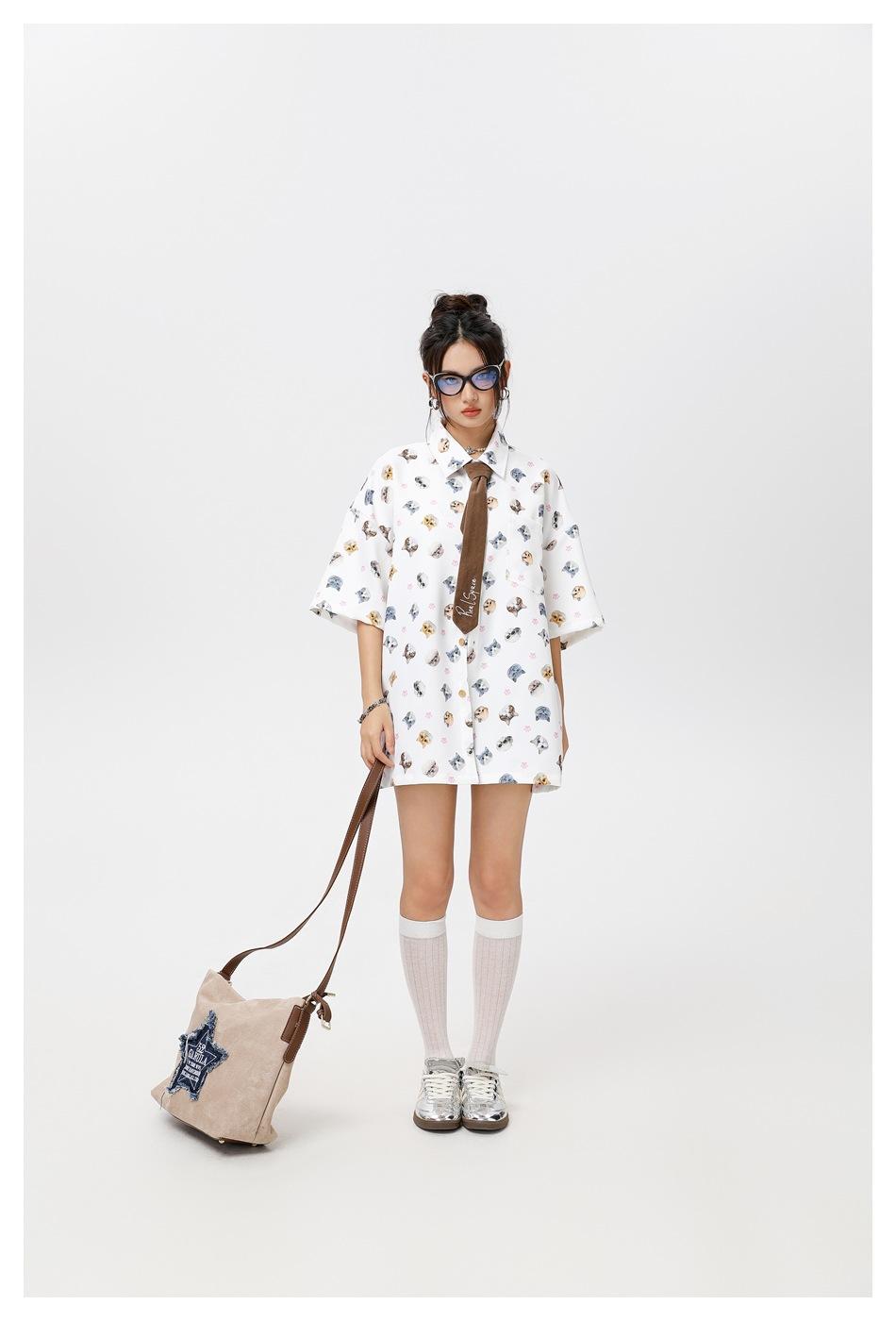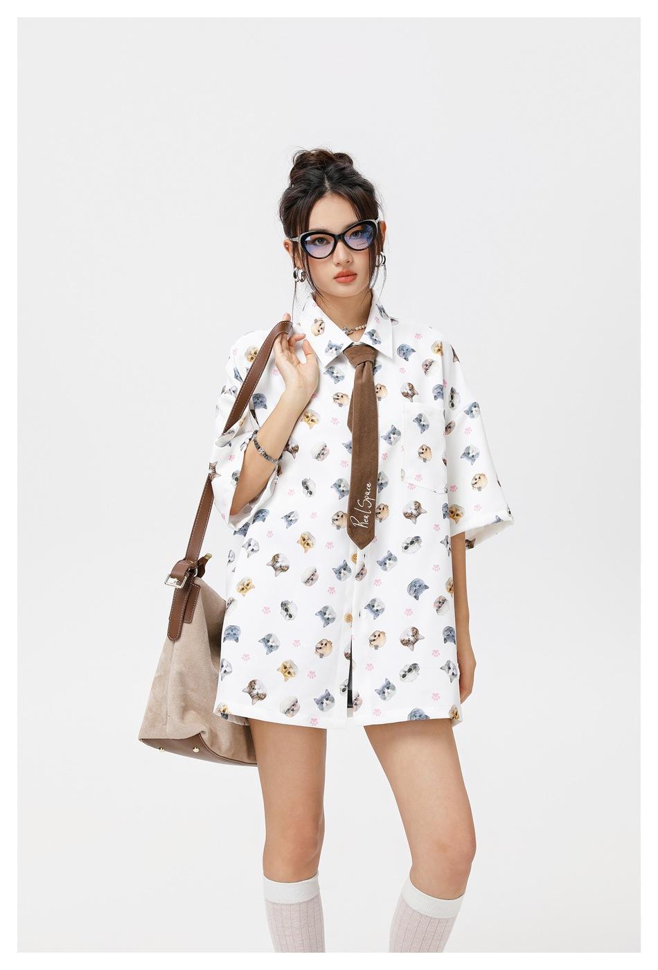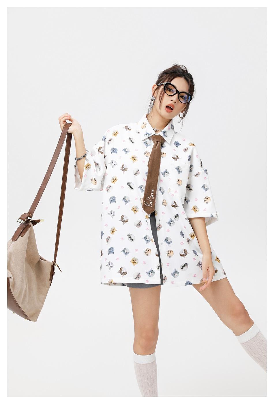 Camiseta de manga corta de verano con estampado de gato para hombre y mujer de REALSPACE Youth Campus, marca de moda para estudiantes SC74