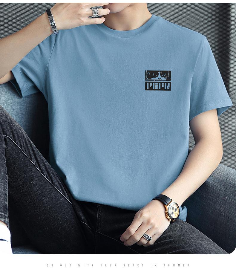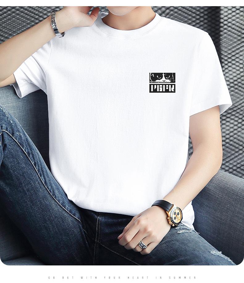 Camiseta de algodón para hombre, de manga corta, de verano, de moda, blanca, de marca, estampada, con cuello redondo, de algodón, de media manga.