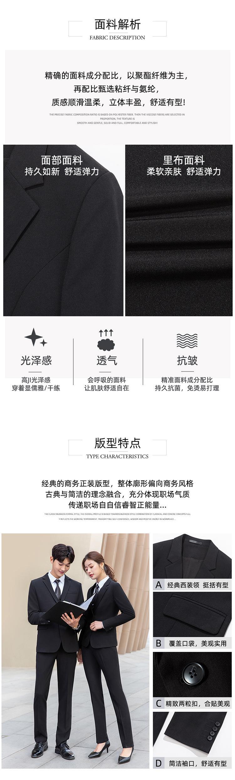 Traje profesional negro traje para hombre y mujer mismo elástico doble hebilla ropa formal de negocios traje ajustado traje peto