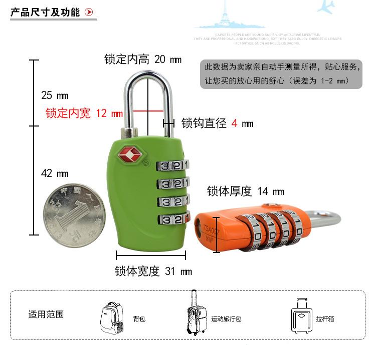 Cerradura Aduanera TSA Viaje al Extranjero TSA007 Aprobada Cerradura para Equipaje Código de Bloqueo para el Extranjero