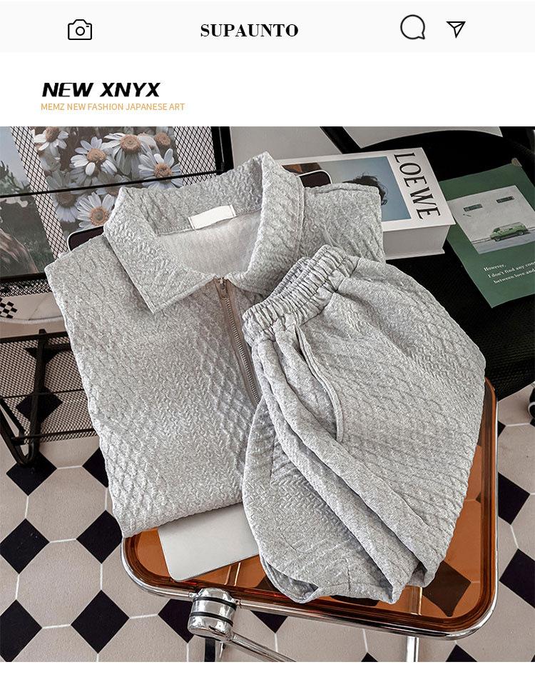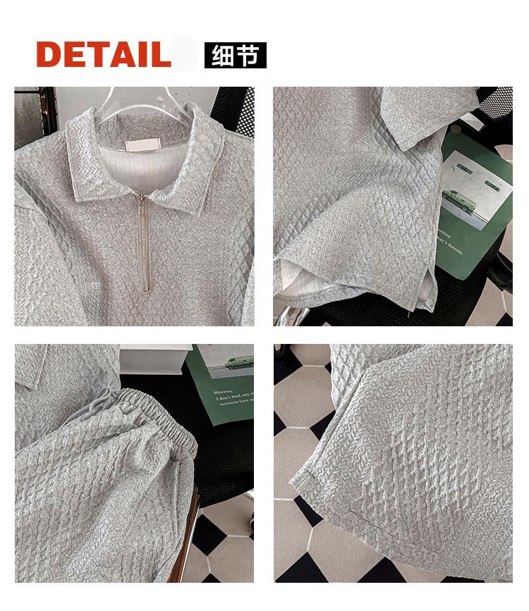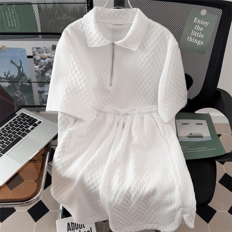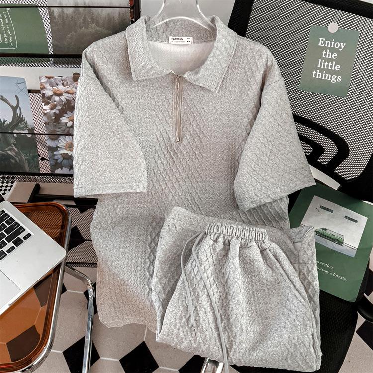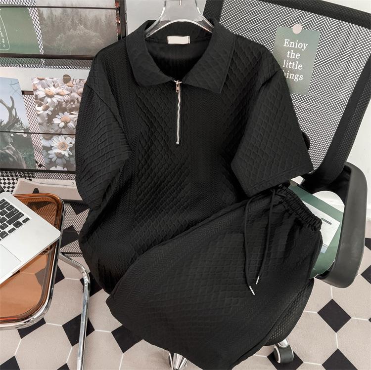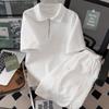 Traje Deportivo Estilo Harajuku Cuello Polo para Hombre Verano Estilo Coreano Moderno ins Color Sólido Manga Corta Shorts de Pierna Ancha Conjunto de Dos Piezas