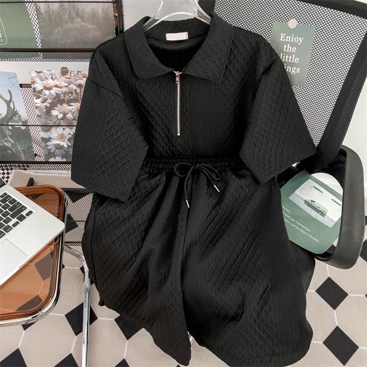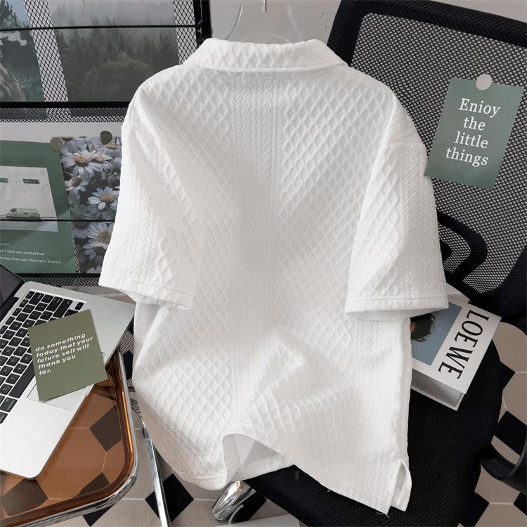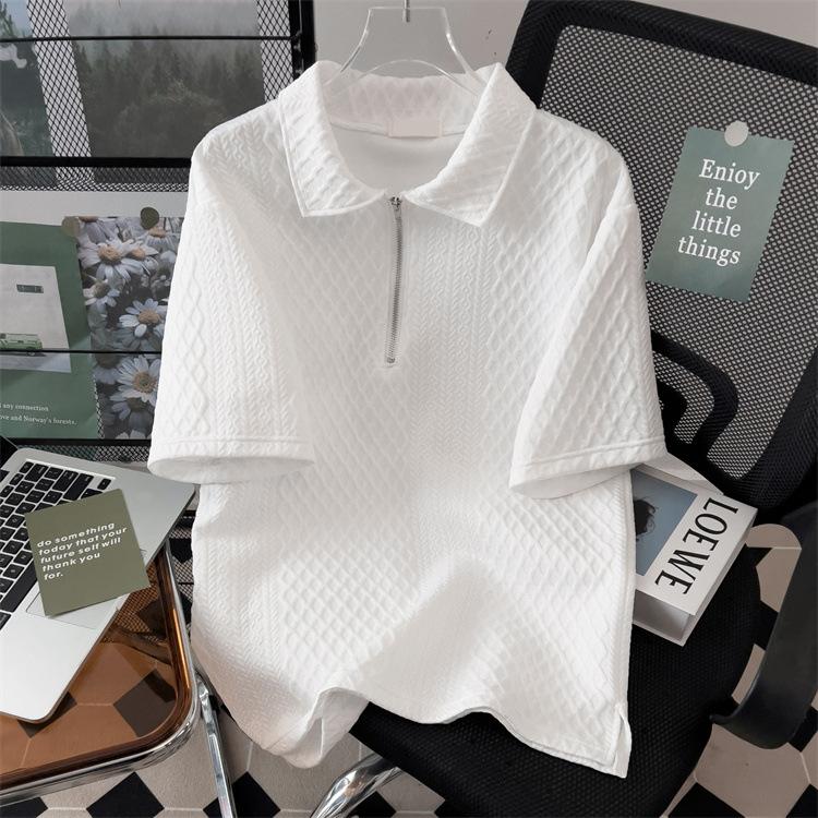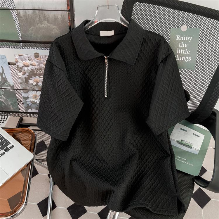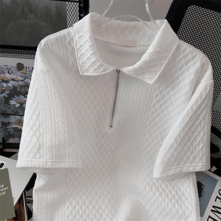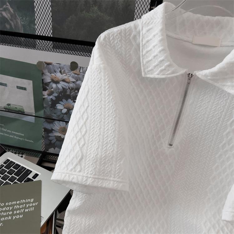 Traje Deportivo Estilo Harajuku Cuello Polo para Hombre Verano Estilo Coreano Moderno ins Color Sólido Manga Corta Shorts de Pierna Ancha Conjunto de Dos Piezas