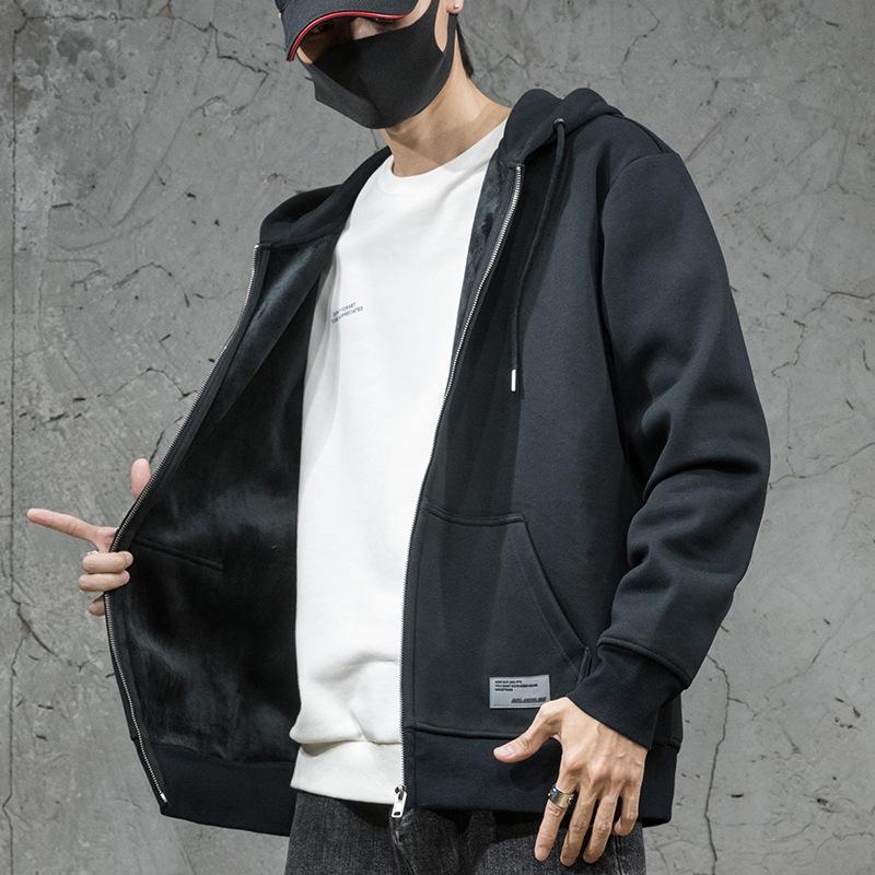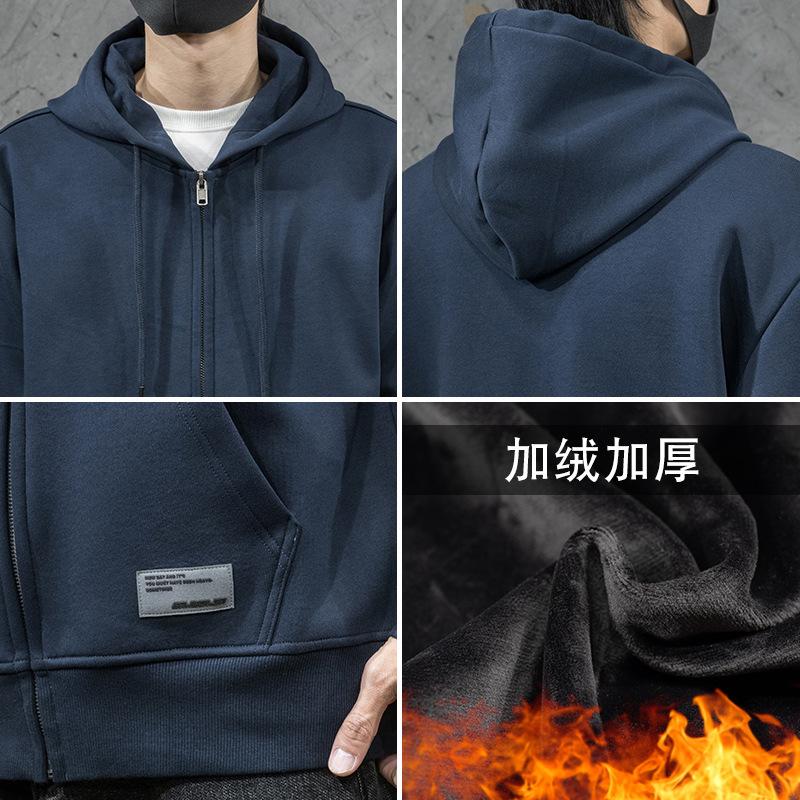 Suéter con cremallera forrado de polar de otoño e invierno cárdigan con capucha para hombre 2024 nuevo otoño hombre talla grande abrigo deportivo grueso marea