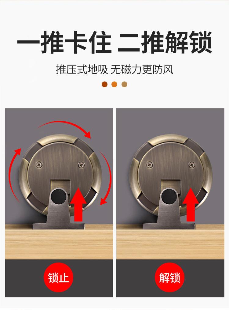 Puerta de succión mecánica sin orificios, tipo empuje no magnético, a prueba de viento, con cerradura automática, resistente a la succión, anticolisión, táctil, de aleación de zinc en la parte superior.