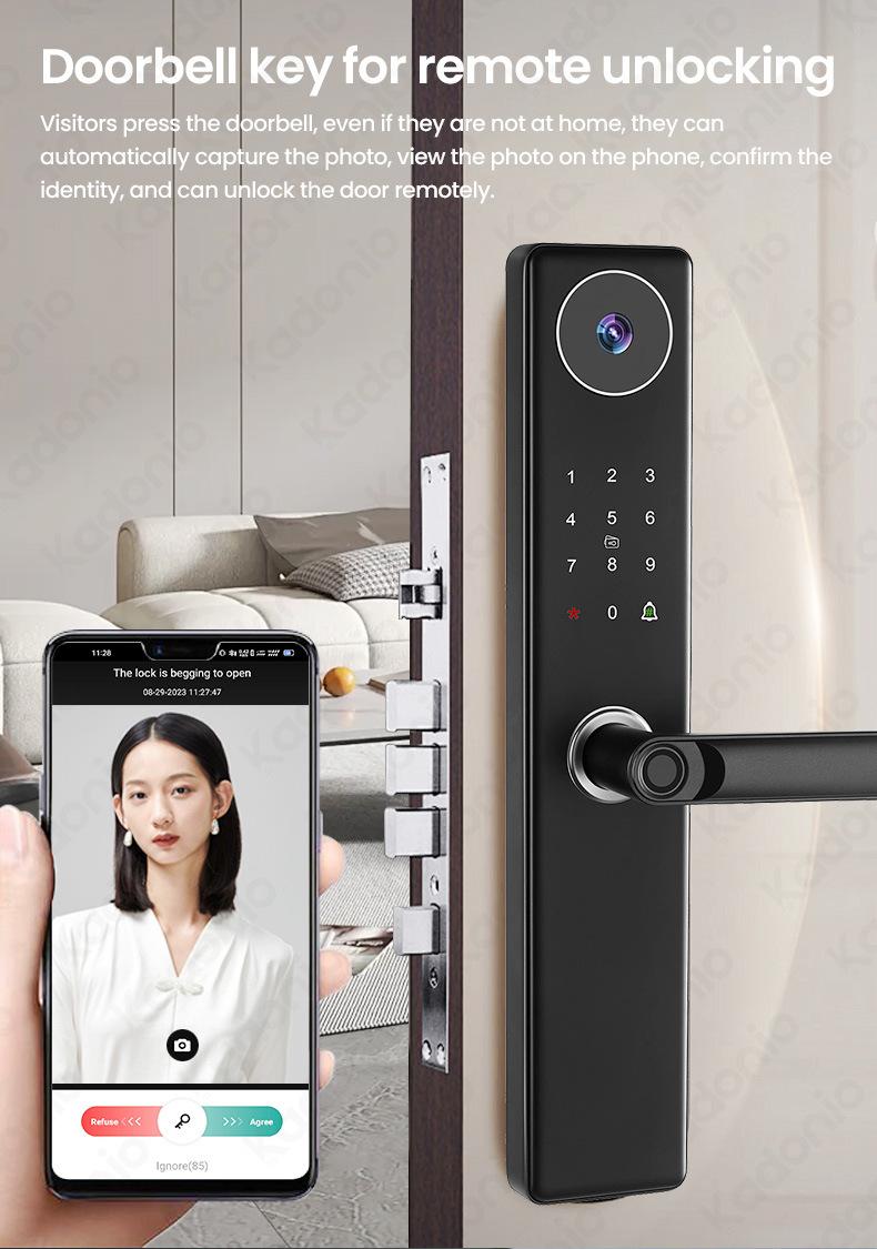 Cerradura de Huella Digital Visual Ojo de Gato con Control Remoto por Cámara para Hogar Antirrobo Puerta de Entrada Puerta de Madera Grafiti Cerradura Inteligente para Puerta Venta al por Mayor