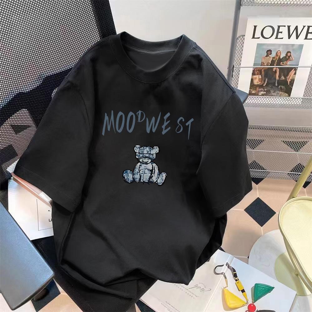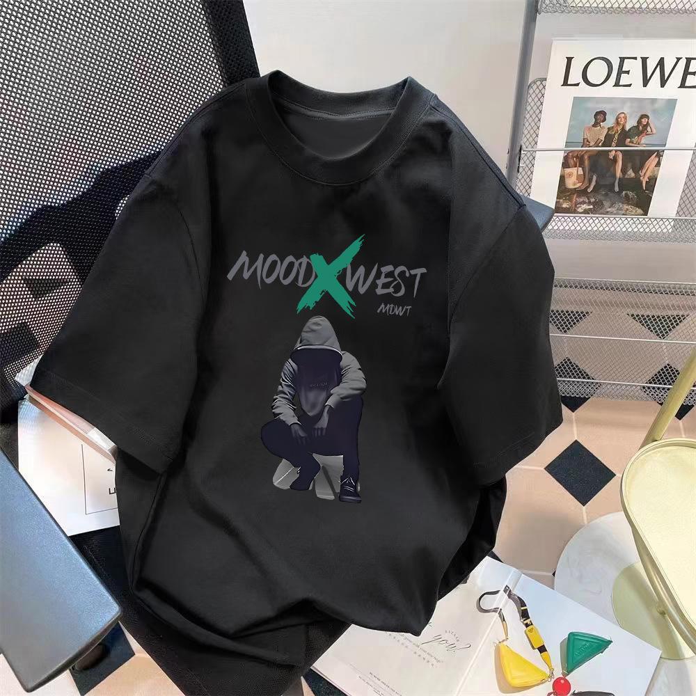 Venta al por mayor de fábrica top con estampado, camiseta holgada de media manga, tendencia retro con letras simples, top comodín