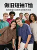 Camiseta juvenil holgada retro de manga corta de algodón desgastado y lavado pesado de marca de moda estadounidense transfronteriza de 230 g para hombres y mujeres