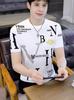 Camiseta de seda de hielo estampada para hombre 2024, de manga corta, con letras de marca de moda, cuello redondo, camiseta de moda para hombre que combina con todo.