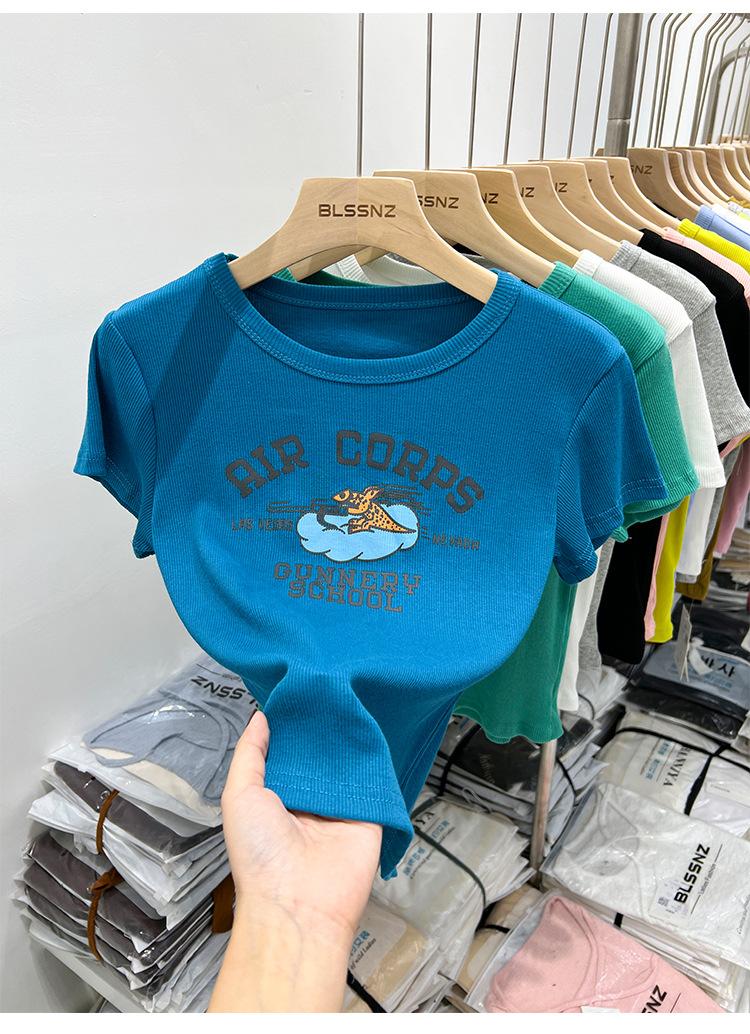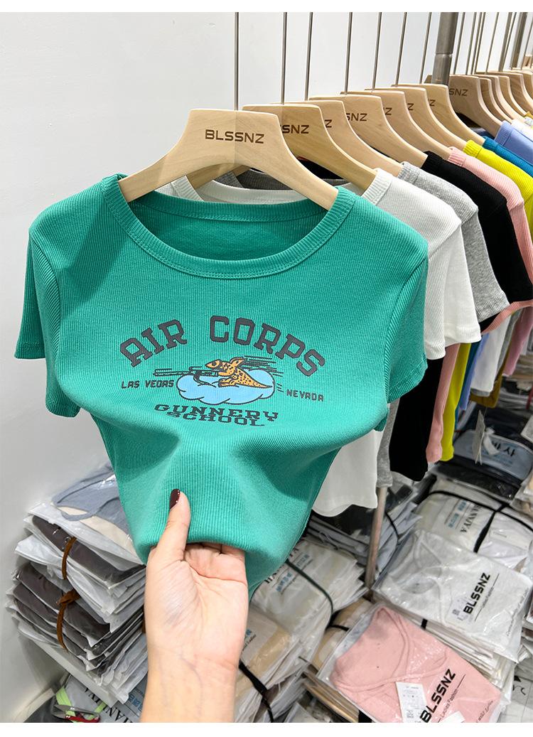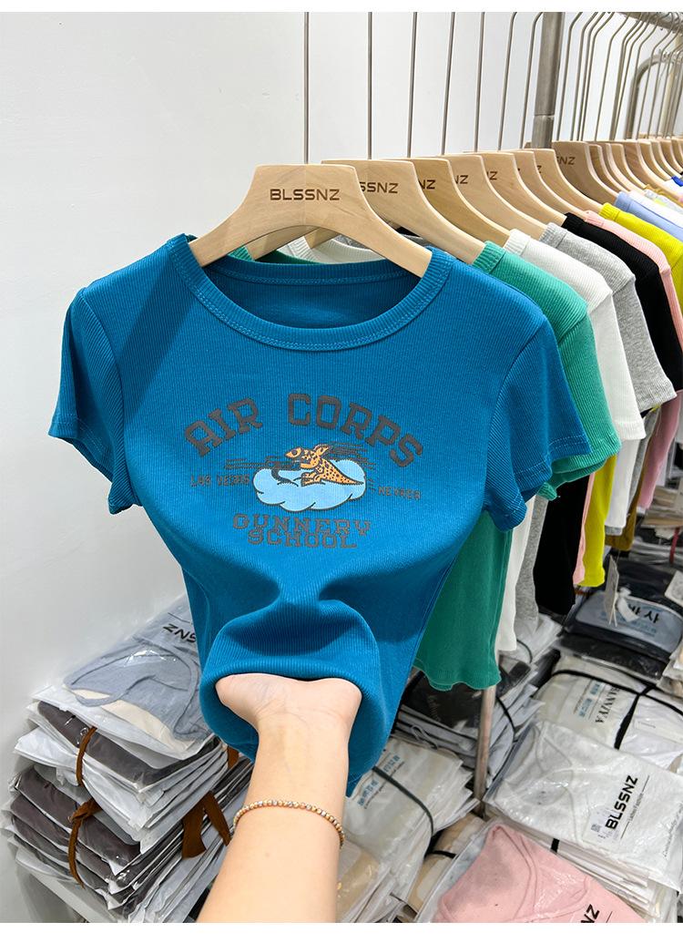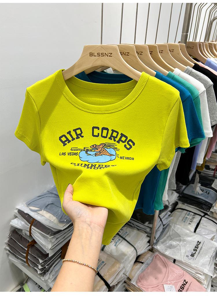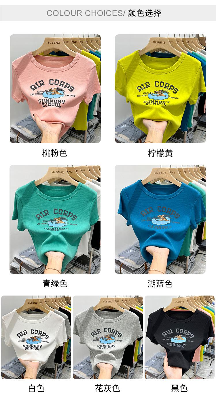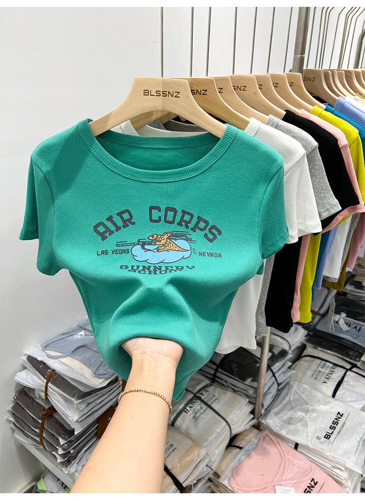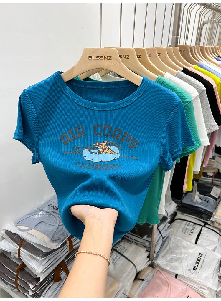 Camiseta de manga corta de algodón europeo para mujer, novedad de verano 2023, con estampado de estilo occidental, camiseta de media manga para mujer