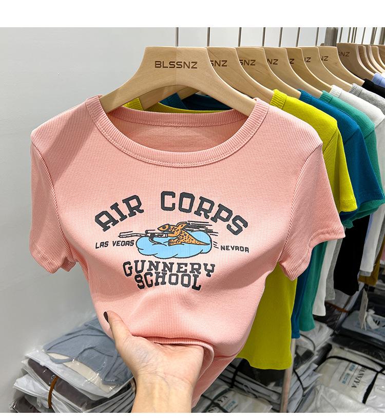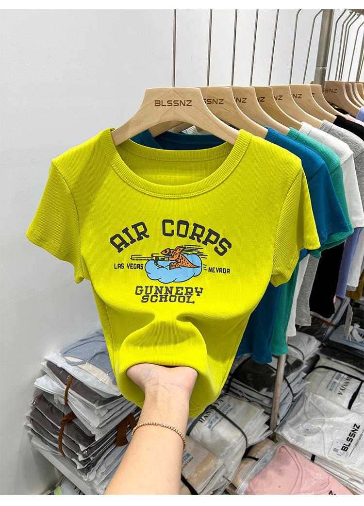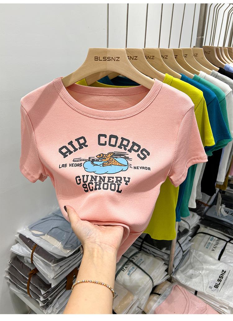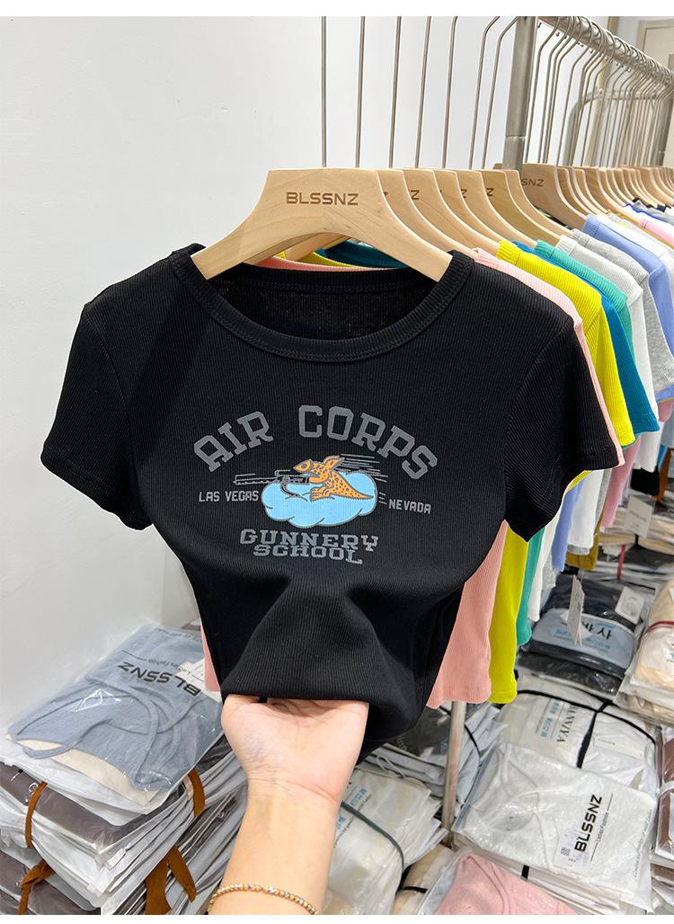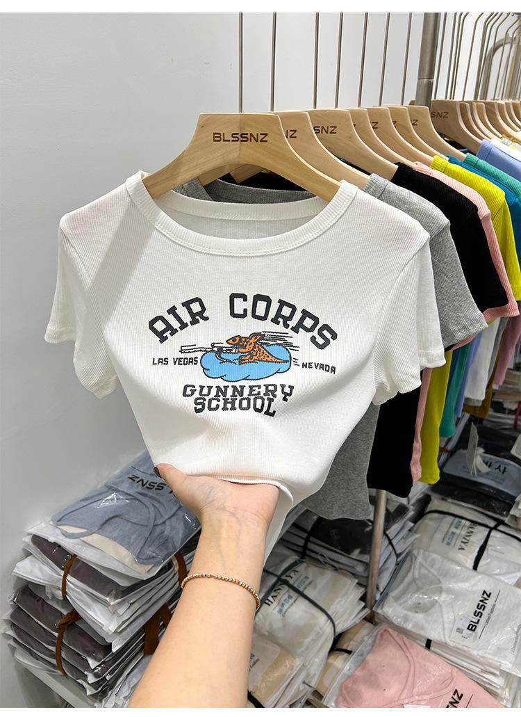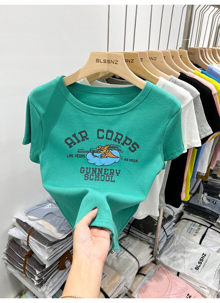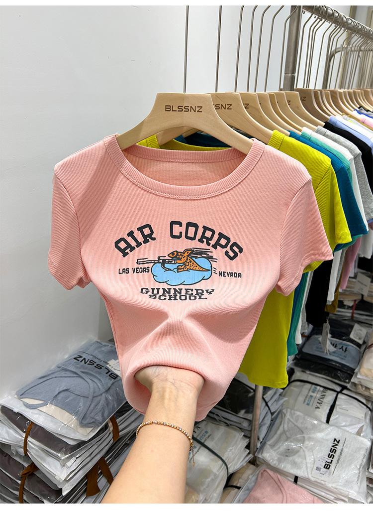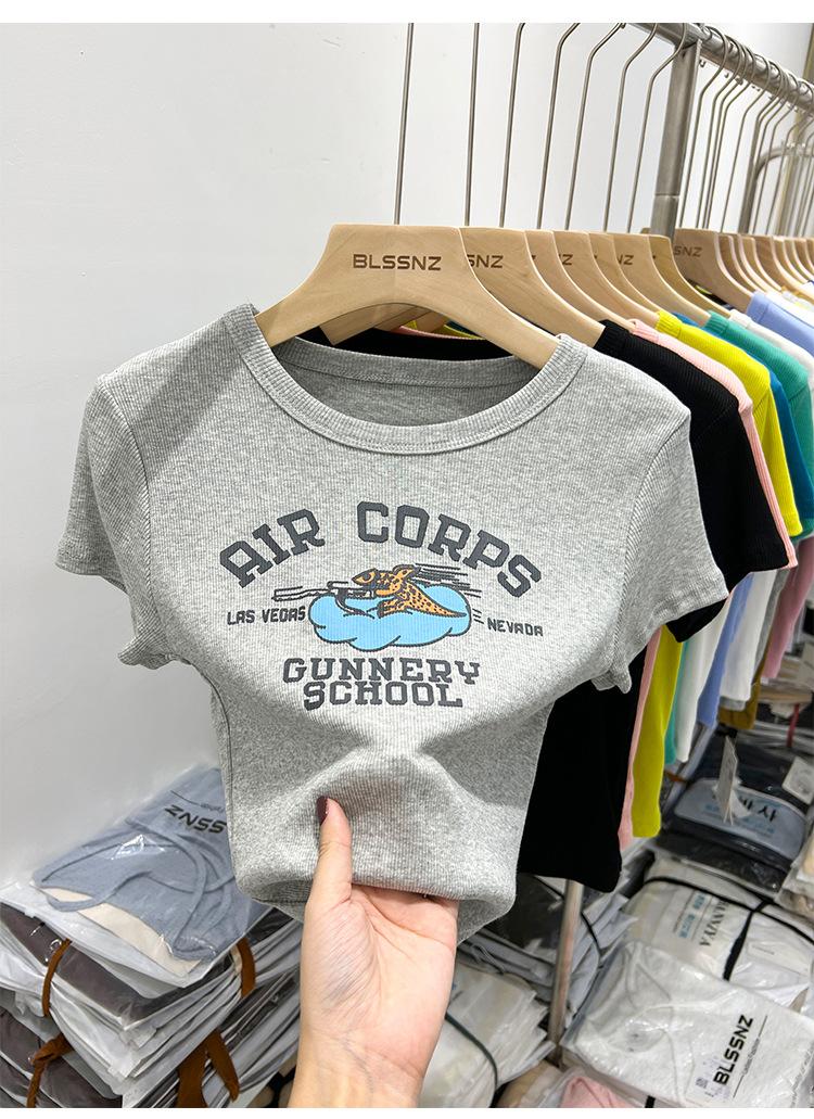 Camiseta de manga corta de algodón europeo para mujer, novedad de verano 2023, con estampado de estilo occidental, camiseta de media manga para mujer