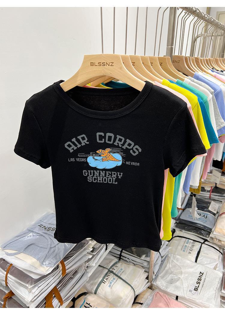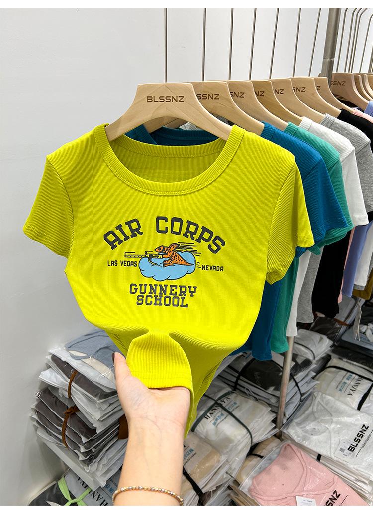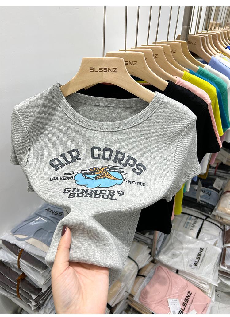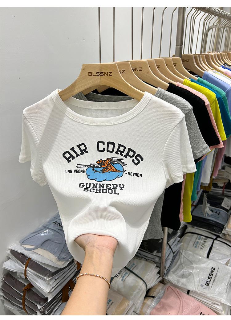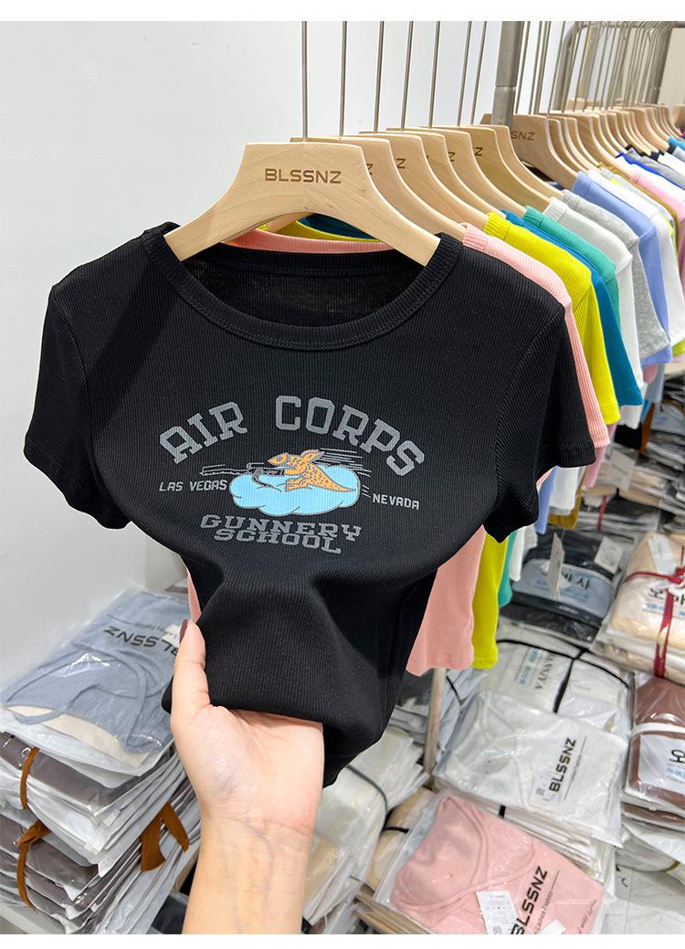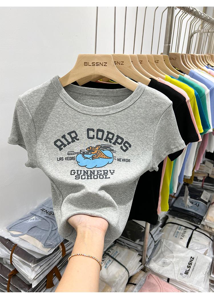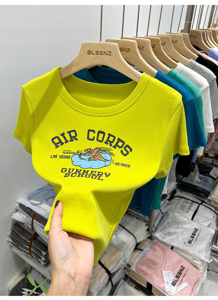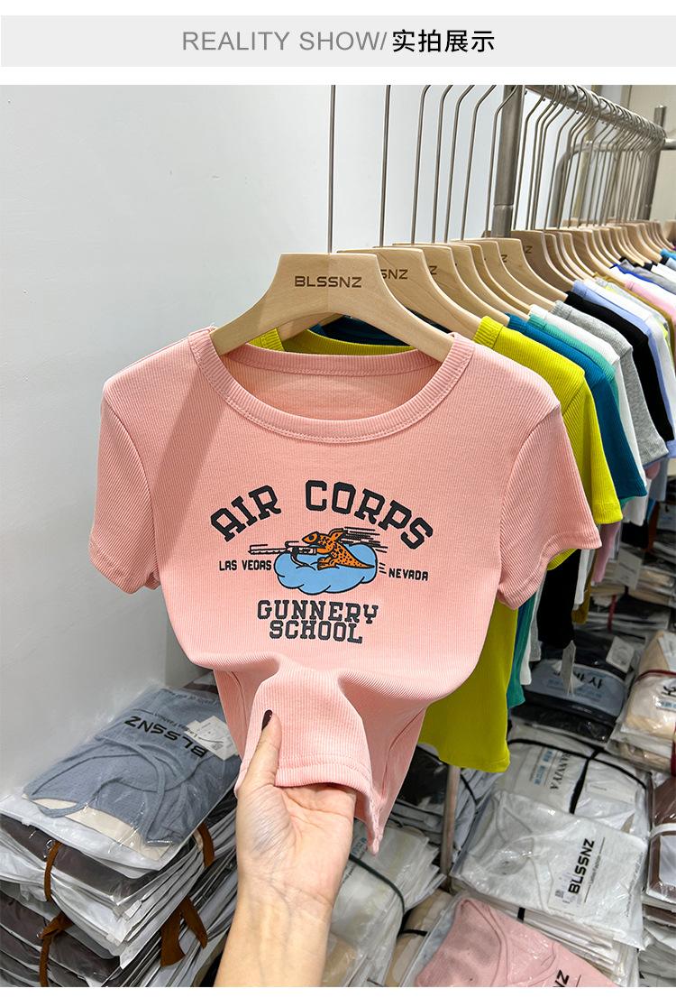 Camiseta de manga corta de algodón europeo para mujer, novedad de verano 2023, con estampado de estilo occidental, camiseta de media manga para mujer