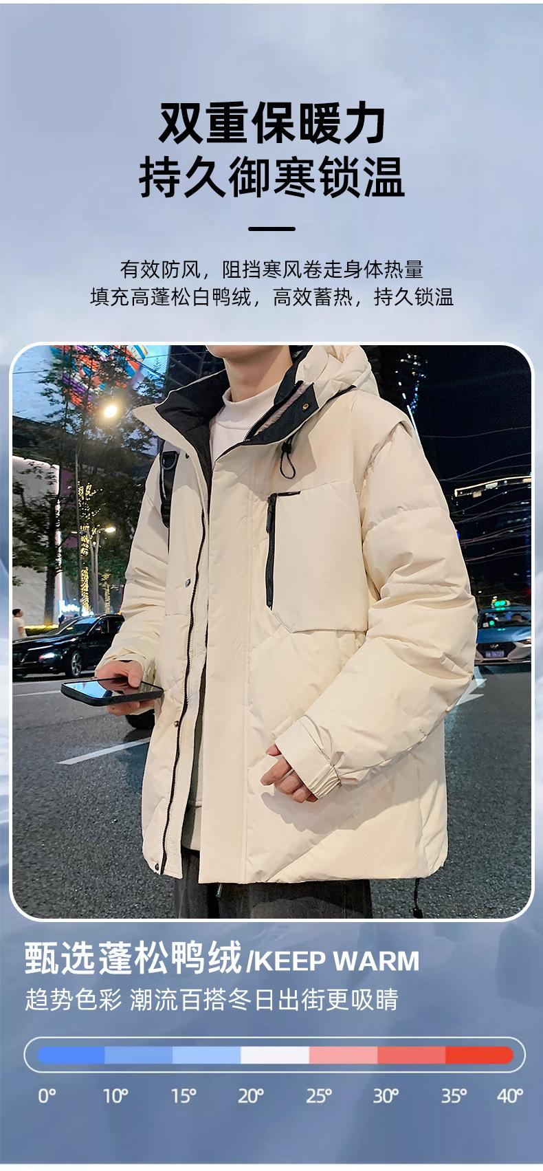 Chaqueta de plumón desmontable para hombre, abrigo de invierno, nuevo chaleco con capucha de moda, abrigo corto de plumón de pato blanco cálido