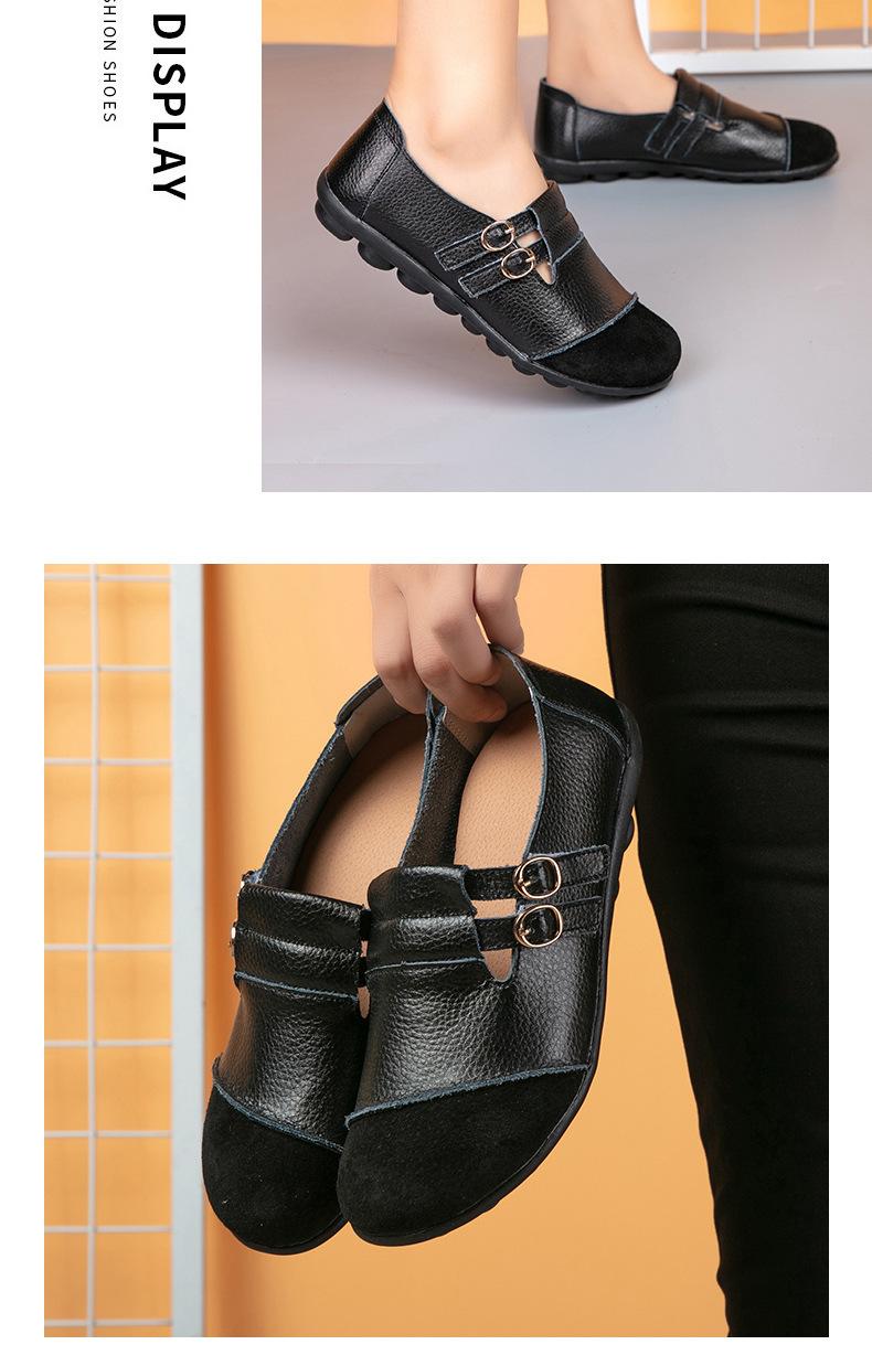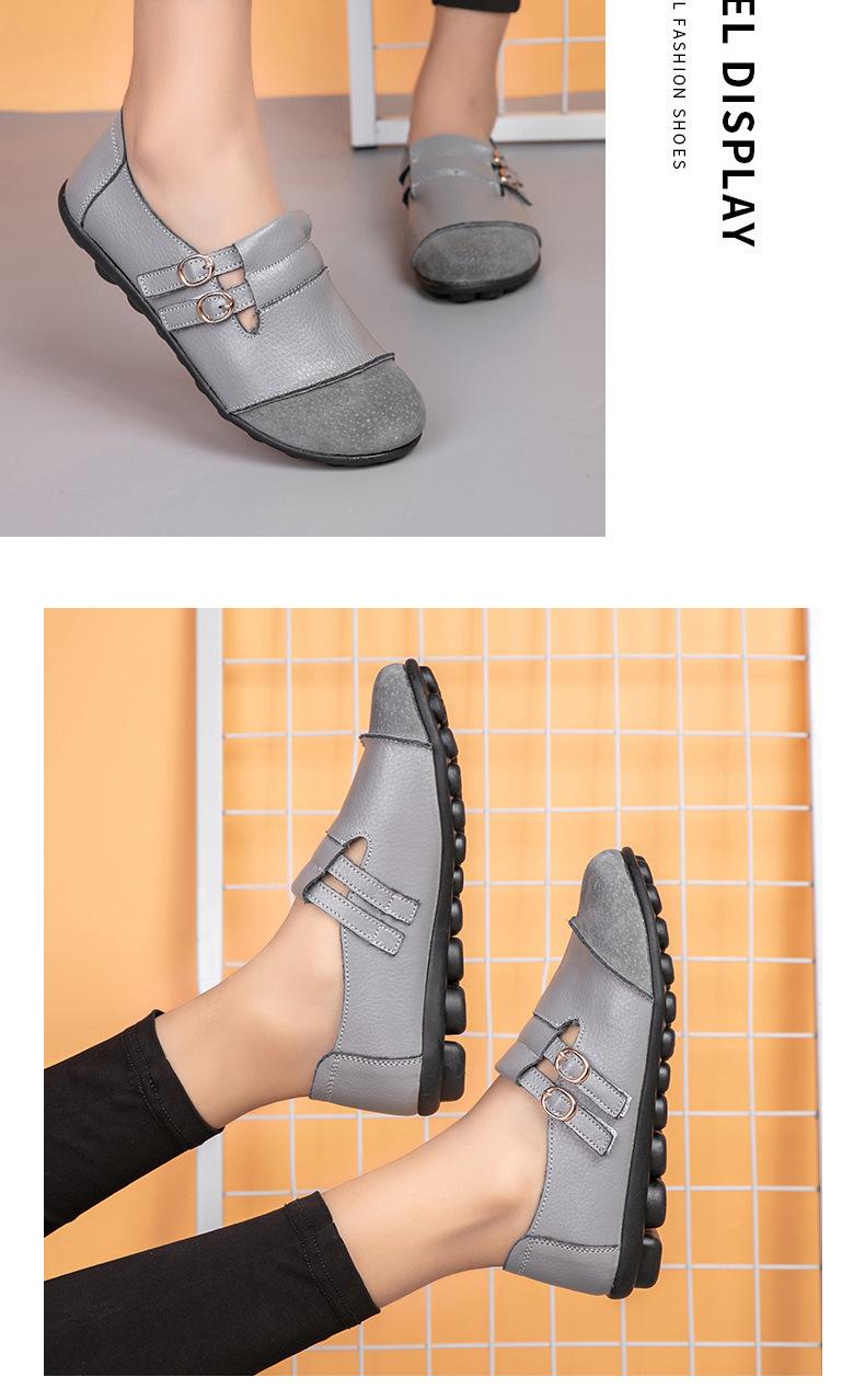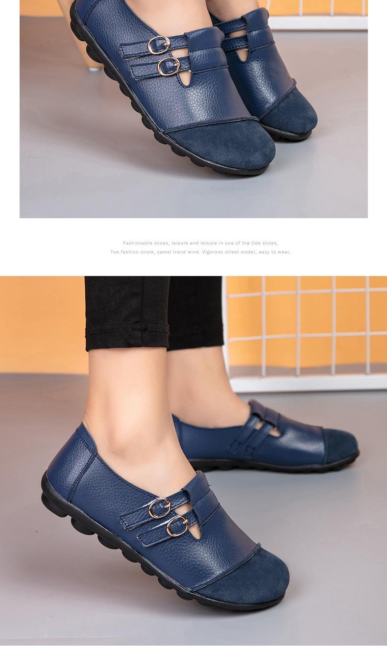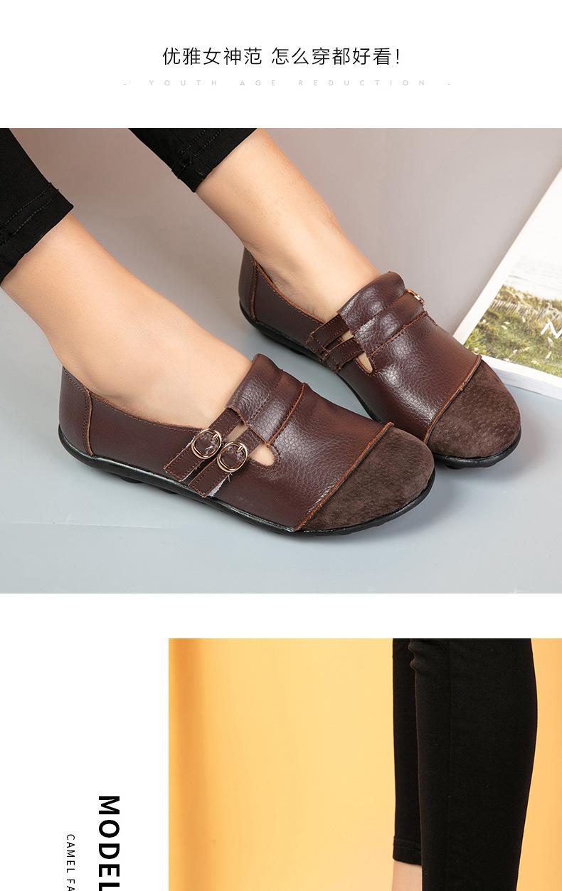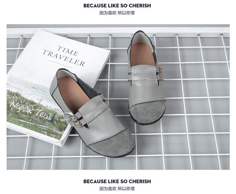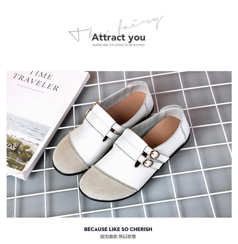 Zapatos de mujer de talla grande con botones nuevos de otoño transfronterizos, zapatos casuales de una sola capa que combinan con todo, zapatos de guisante con velcro cómodos de caña baja
