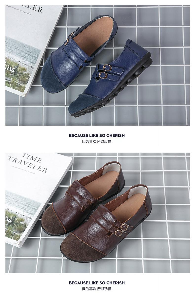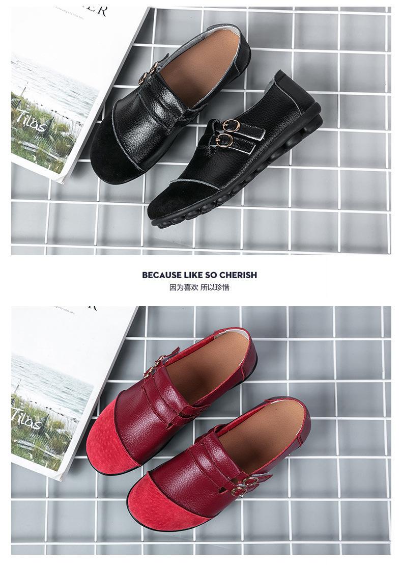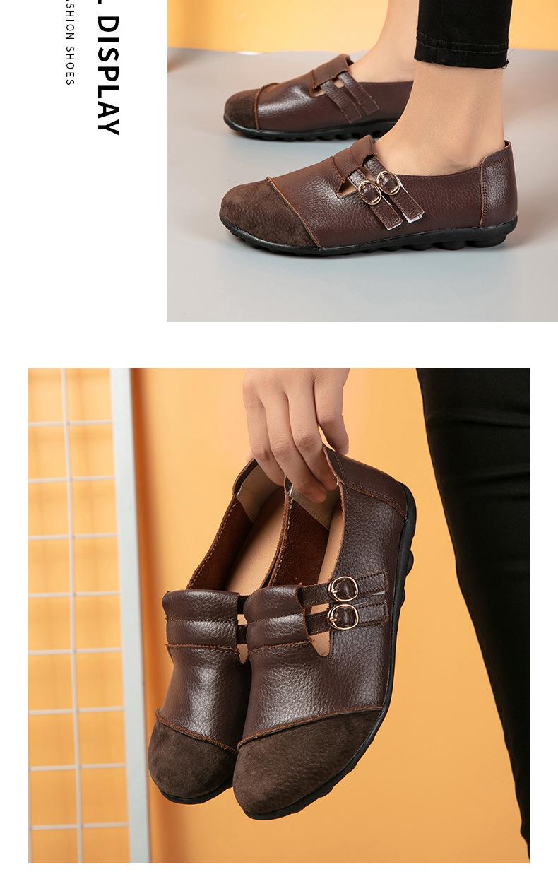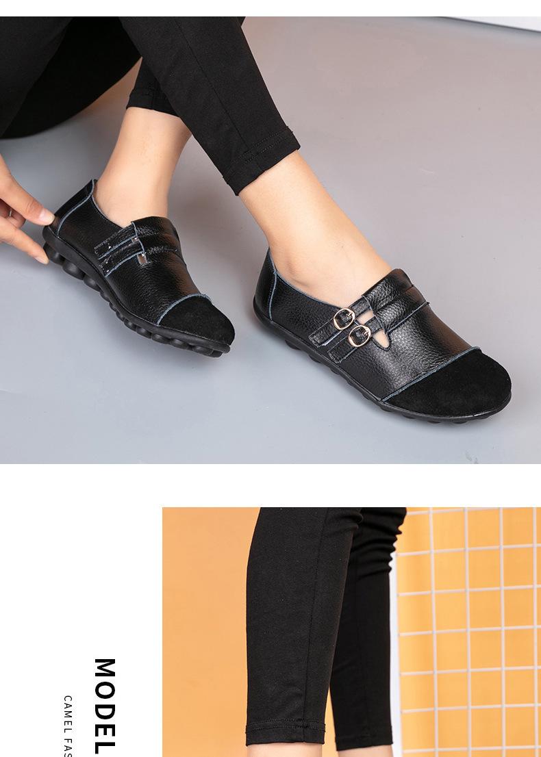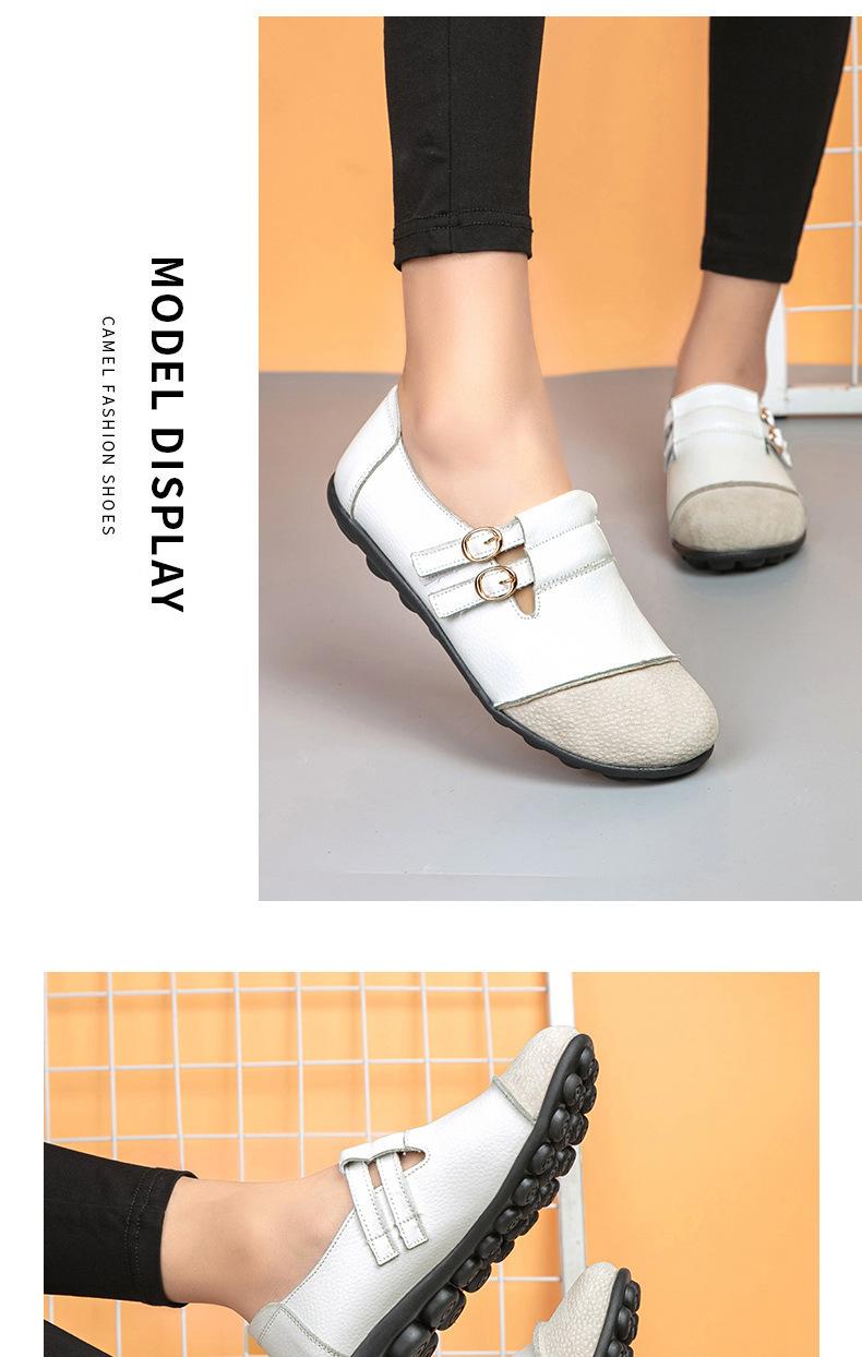 Zapatos de mujer de talla grande con botones nuevos de otoño transfronterizos, zapatos casuales de una sola capa que combinan con todo, zapatos de guisante con velcro cómodos de caña baja