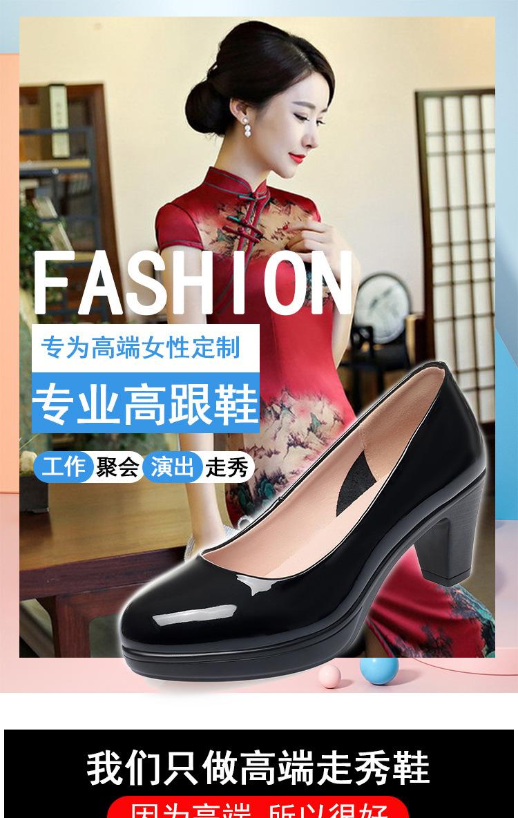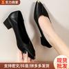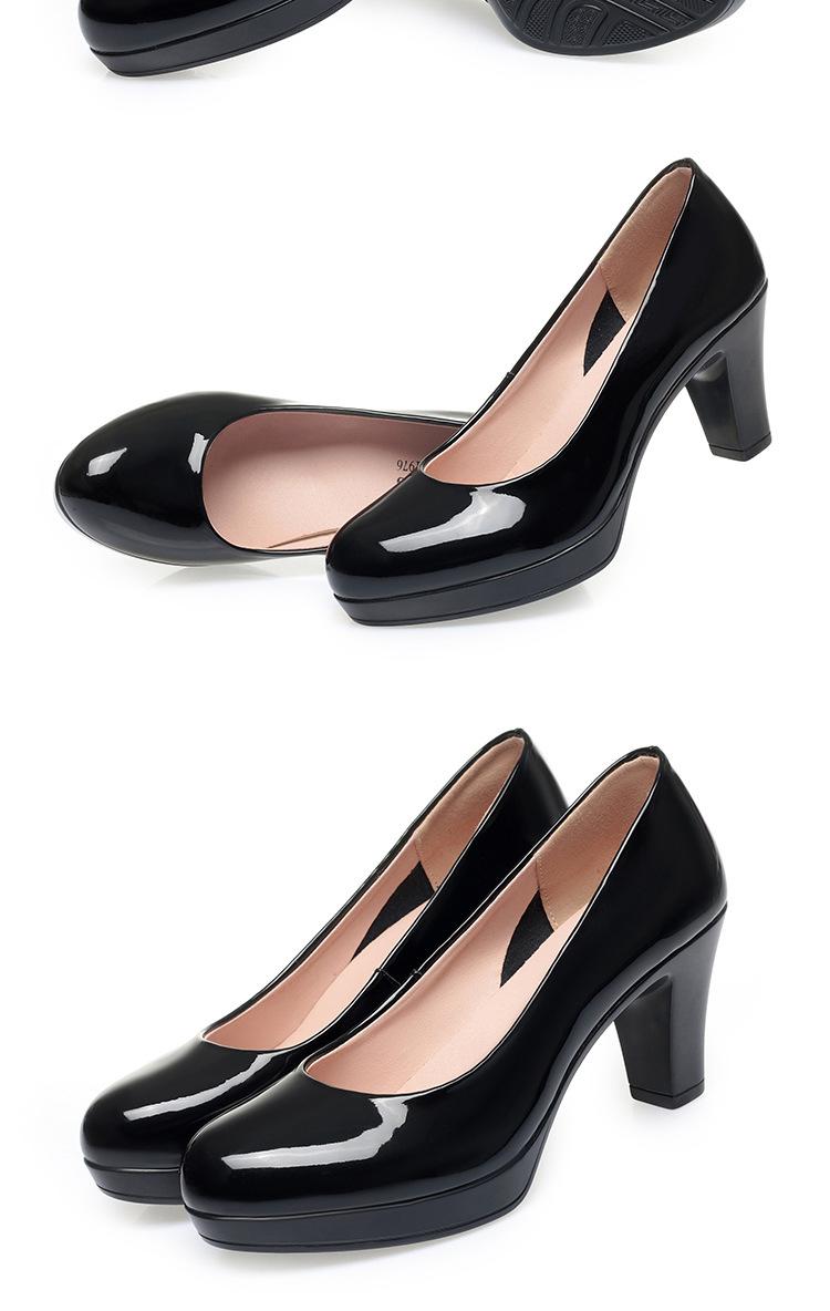 Zapatos de trabajo para mujer, zapatos negros de piel para mujer, tacones altos para mujer, tacón grueso, para trabajo, entrevista, azafata, zapatos individuales, piel brillante, combinables para primavera y otoño.