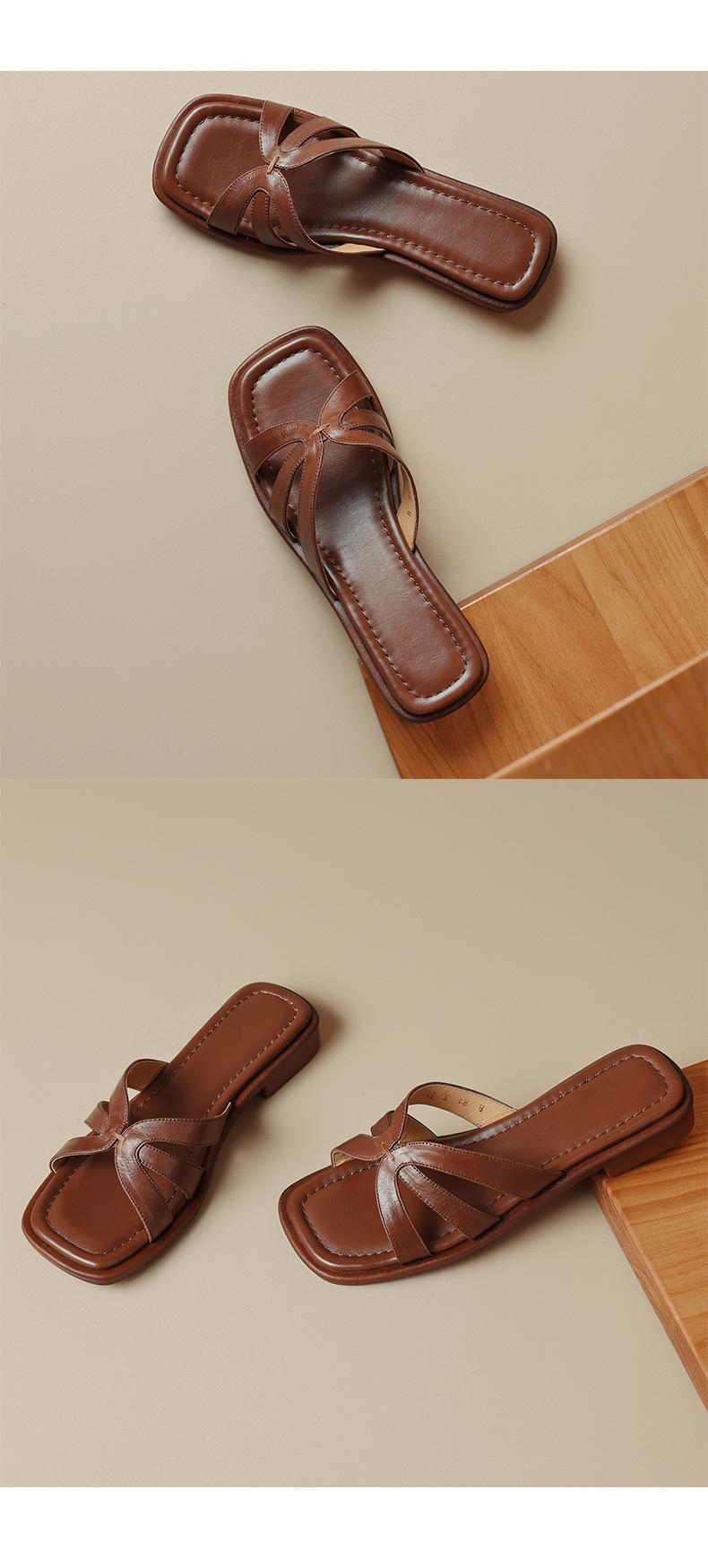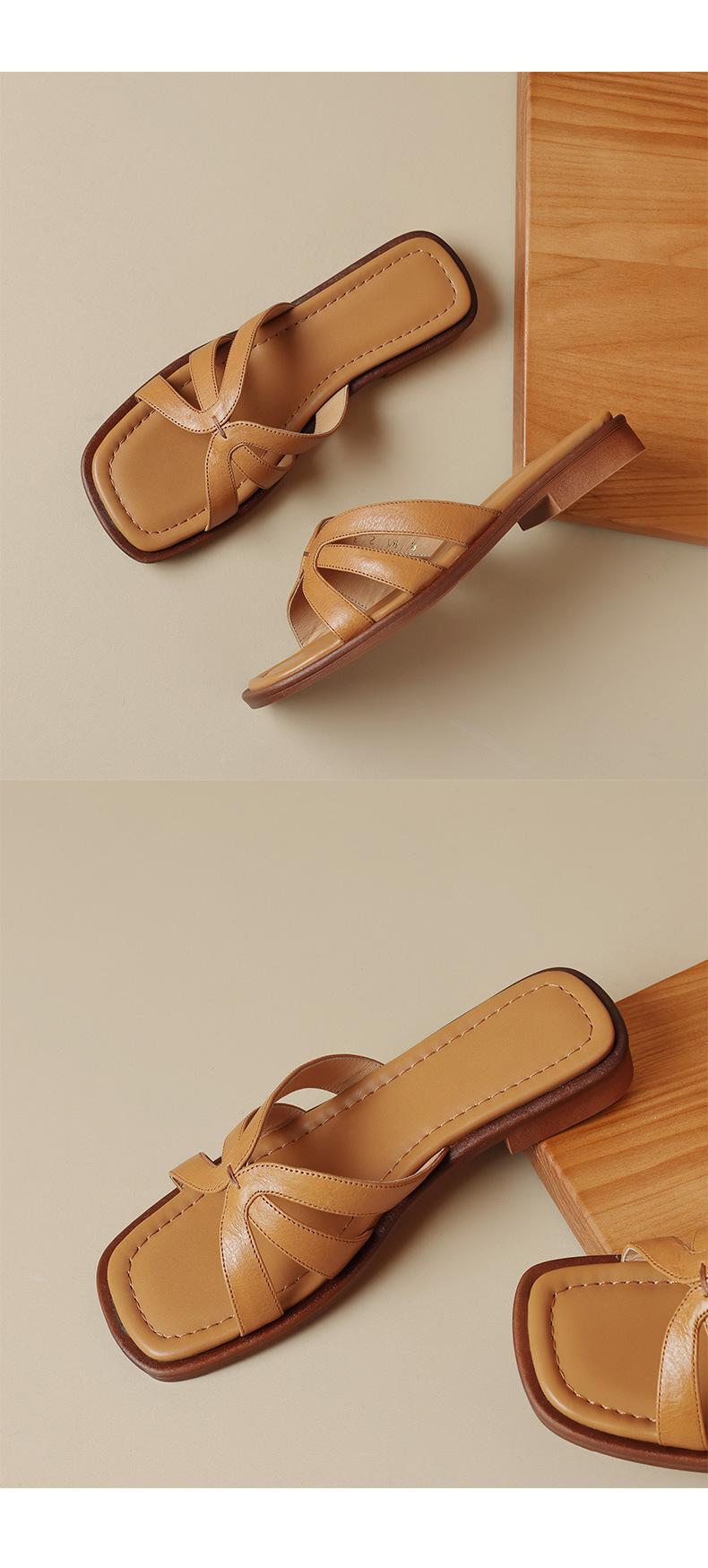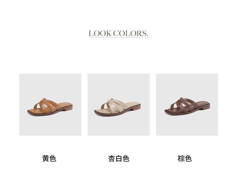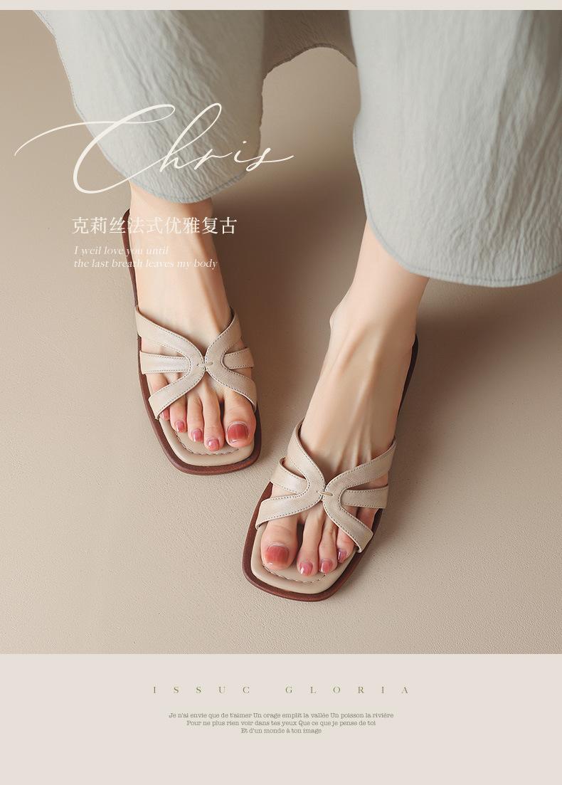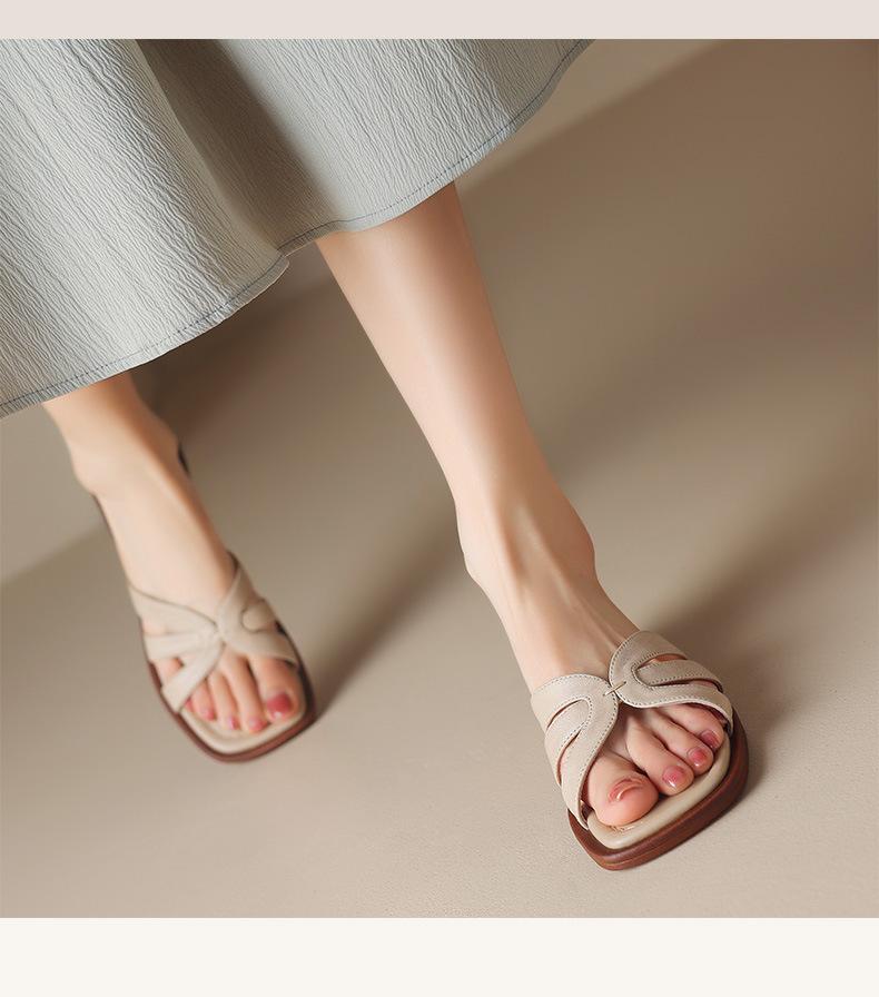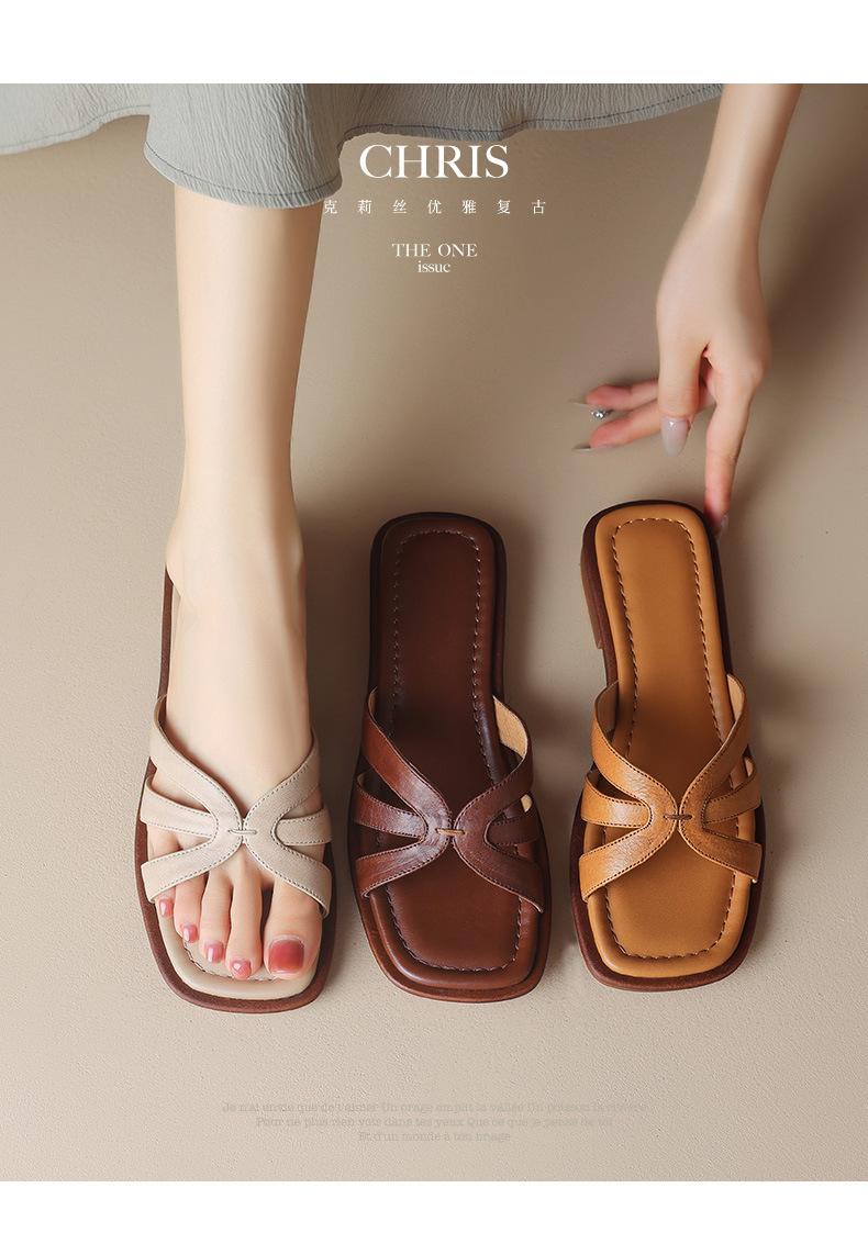 Zapatillas de cuero genuino Jiao Wenxi para mujer para usar en exteriores 2023 nuevas chanclas planas de verano de suela blanda sandalias francesas de alta gama