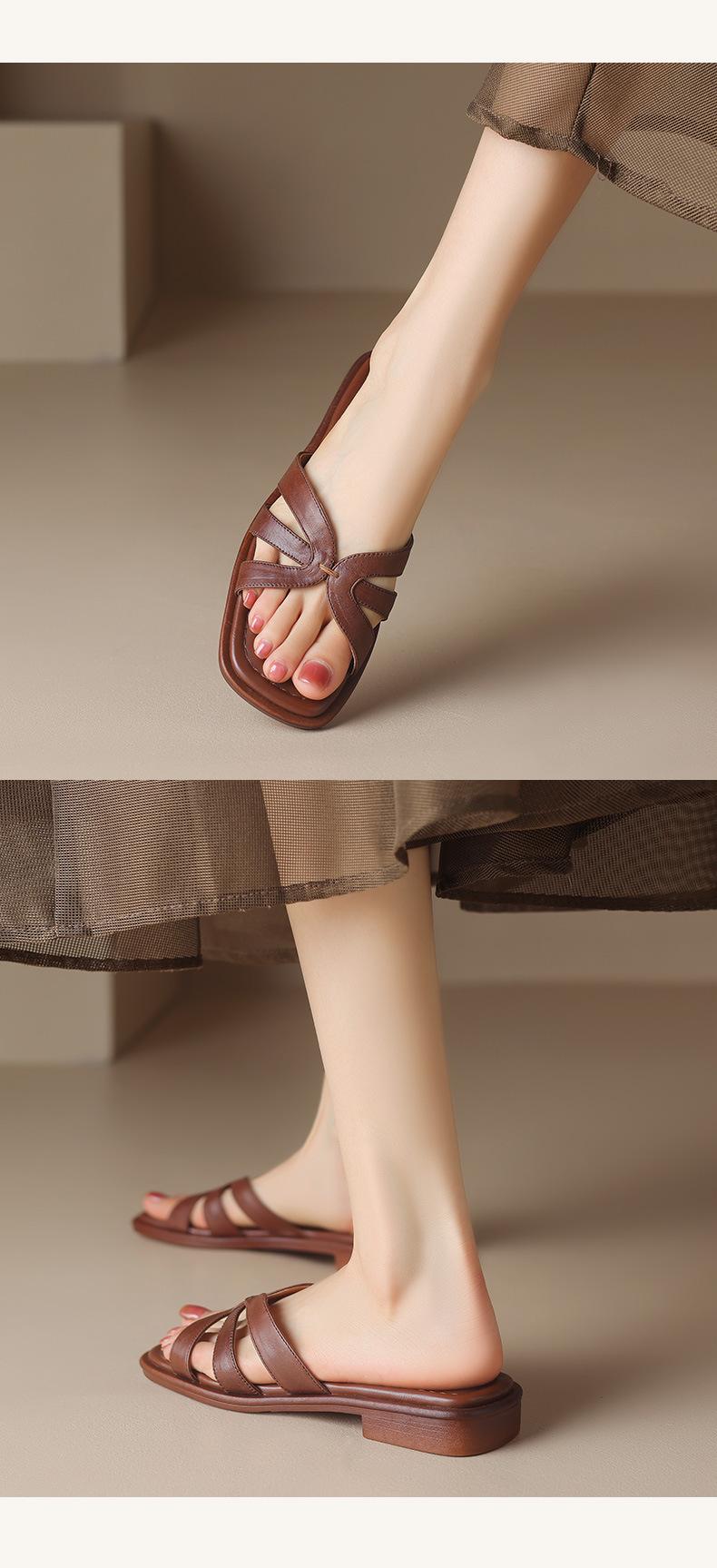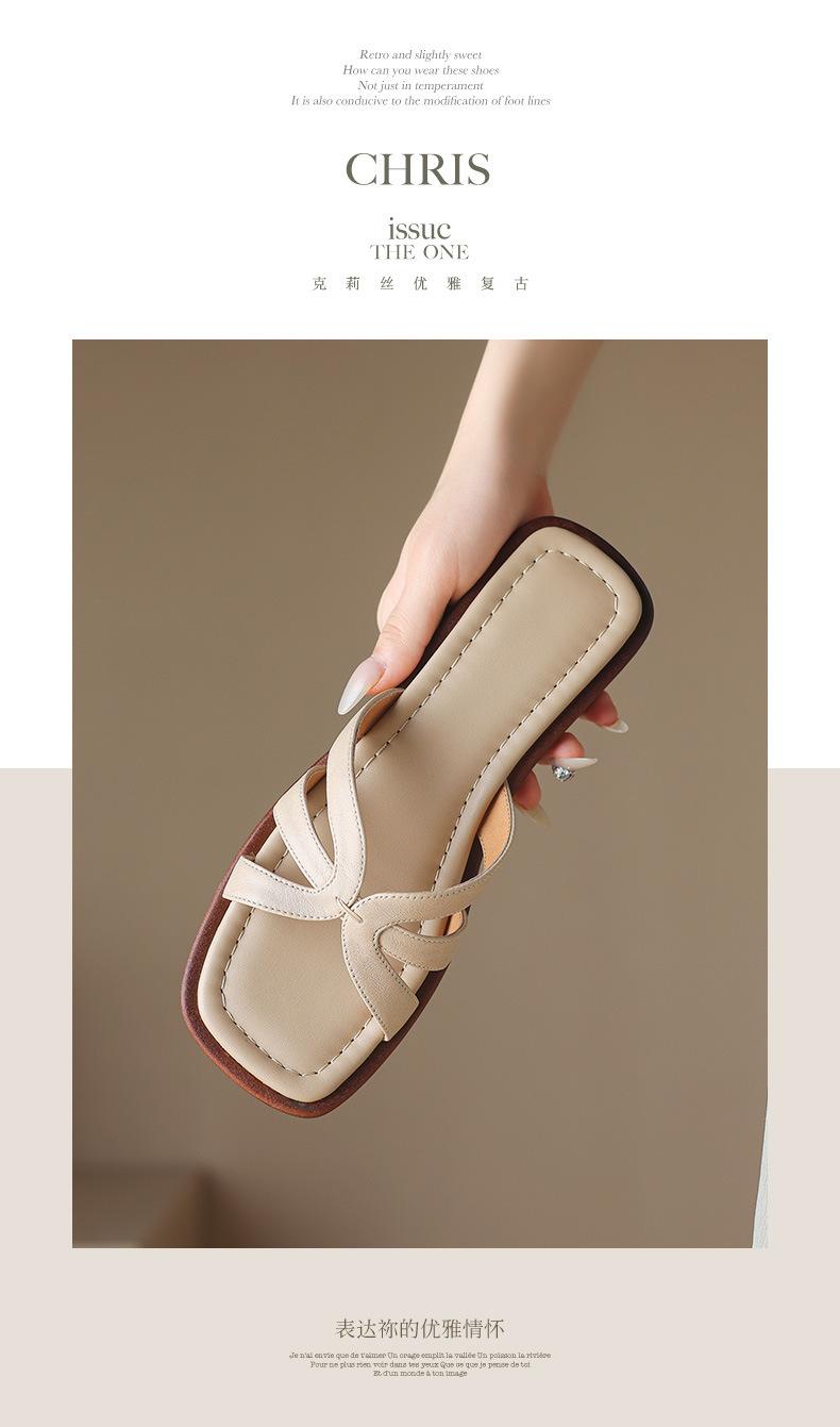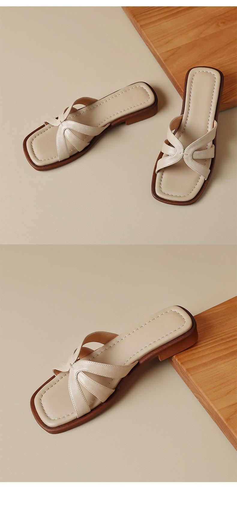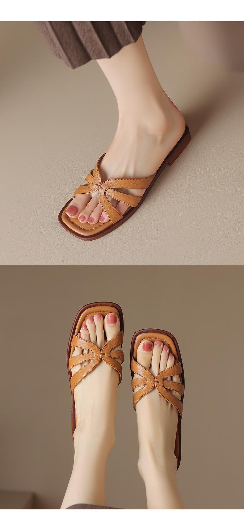 Zapatillas de cuero genuino Jiao Wenxi para mujer para usar en exteriores 2023 nuevas chanclas planas de verano de suela blanda sandalias francesas de alta gama