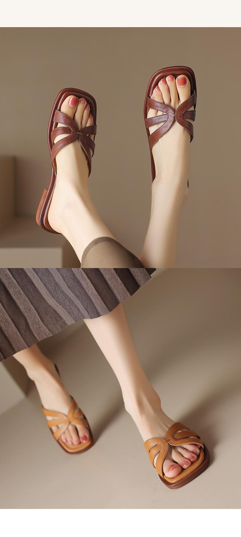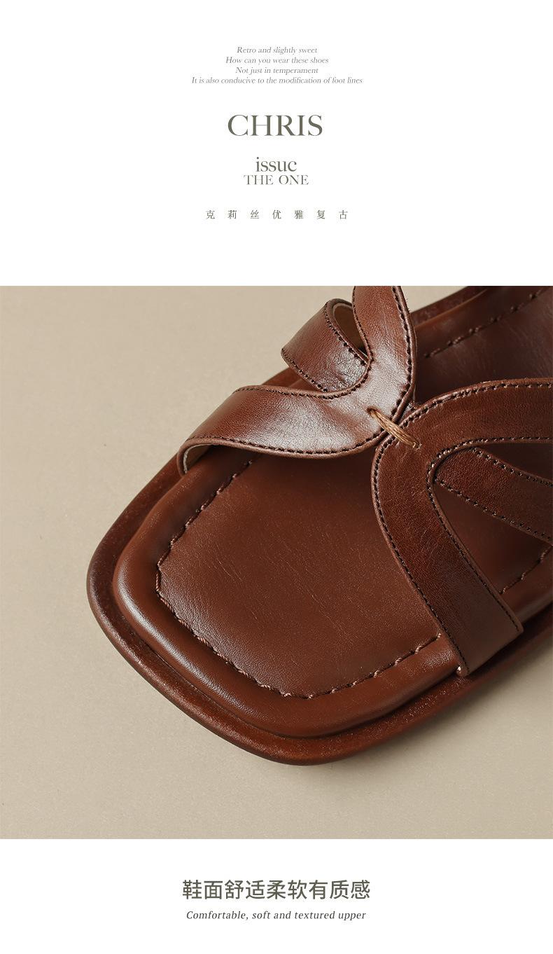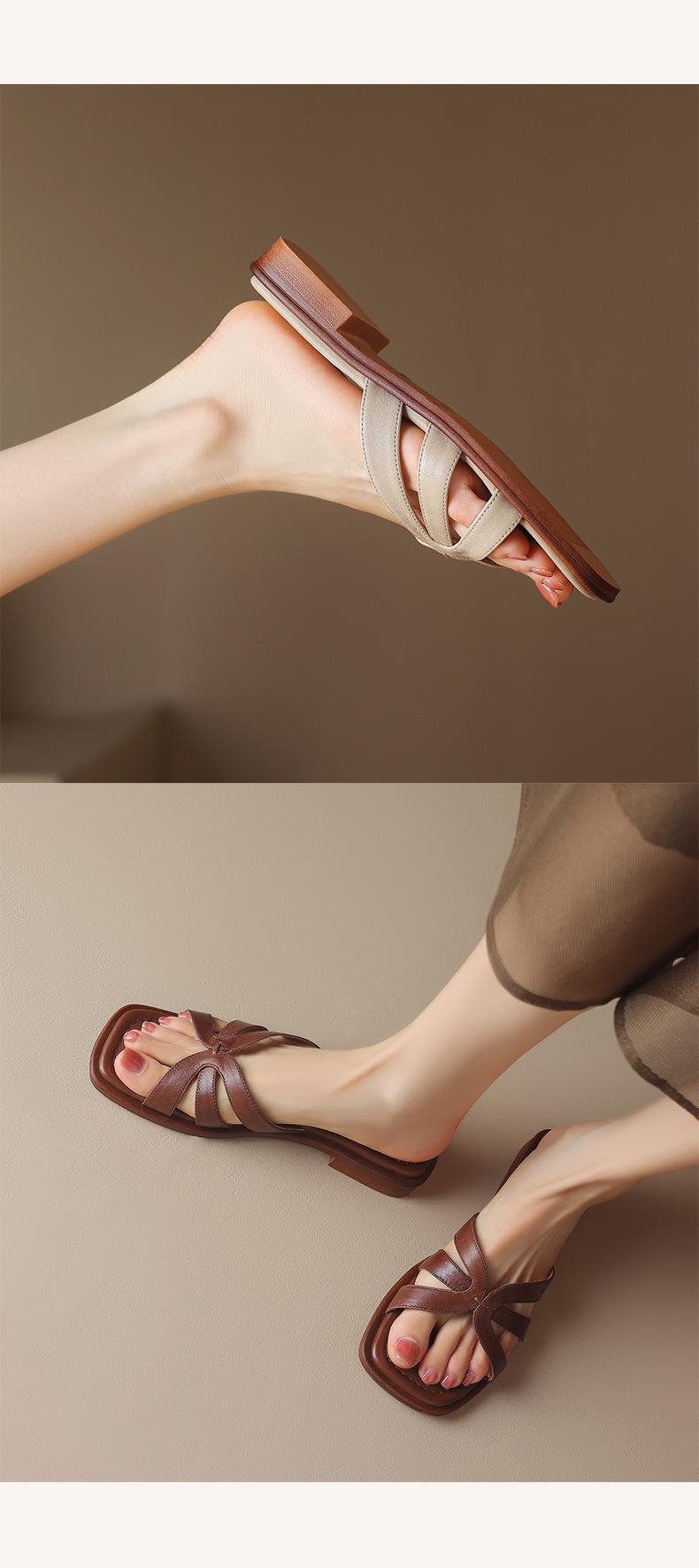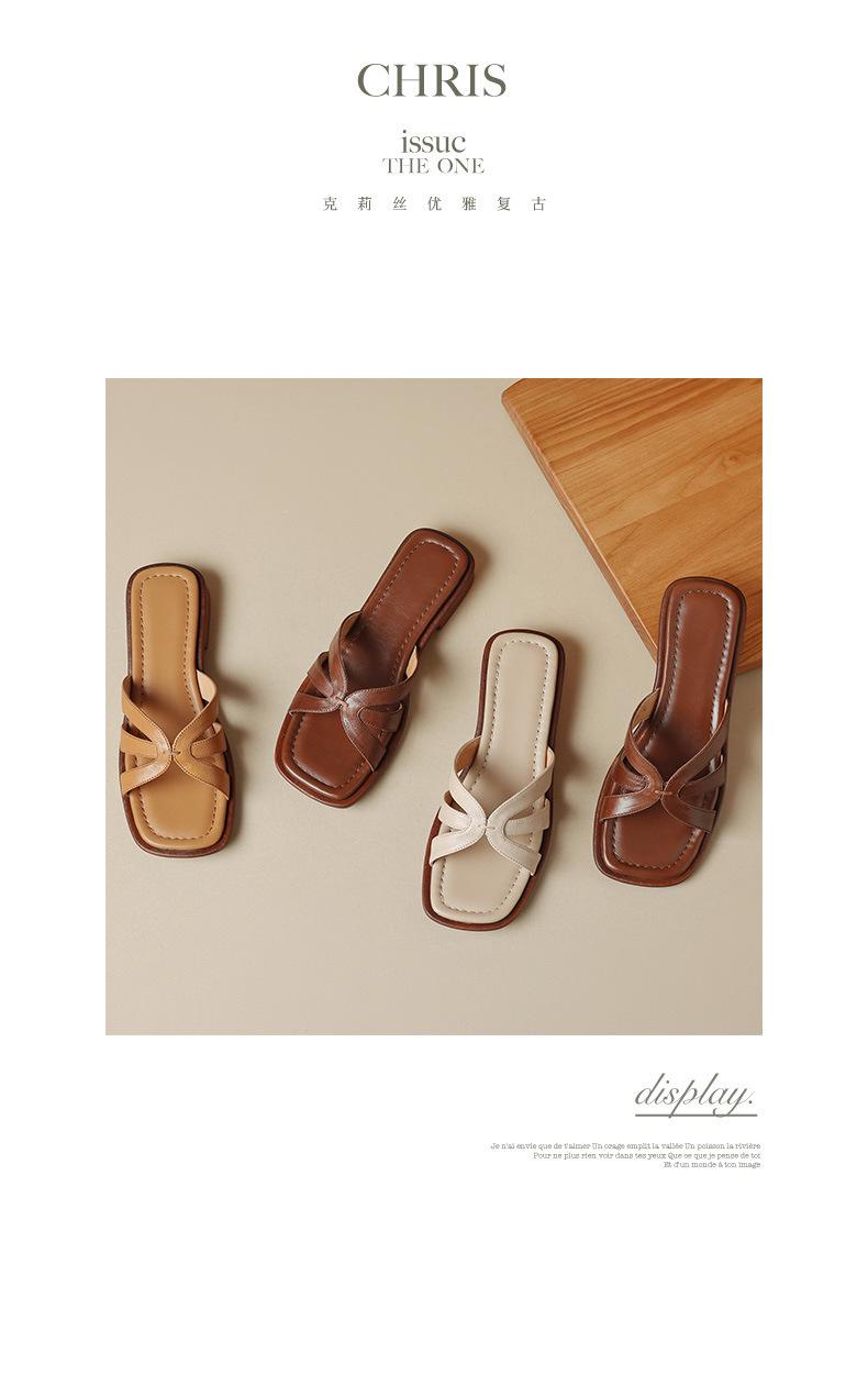 Zapatillas de cuero genuino Jiao Wenxi para mujer para usar en exteriores 2023 nuevas chanclas planas de verano de suela blanda sandalias francesas de alta gama