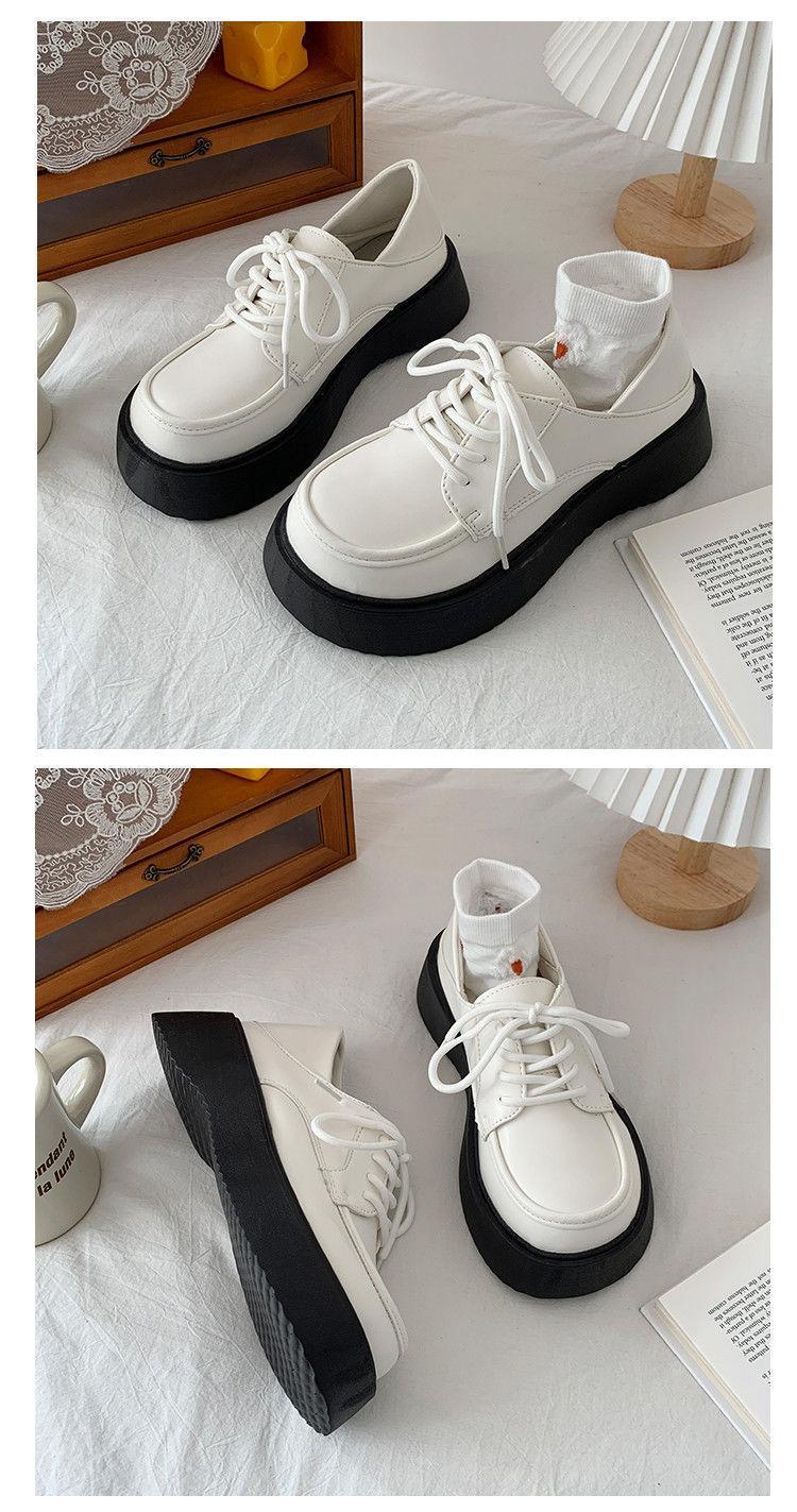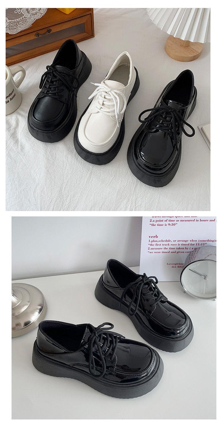 Zapatos pequeños de cuero para mujer, primavera 2023, nuevos zapatos de plataforma con aumento de altura, zapatos japoneses JK Mary Jane de una sola capa con punta grande.
