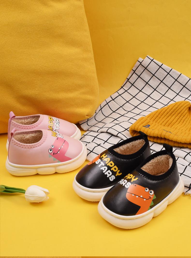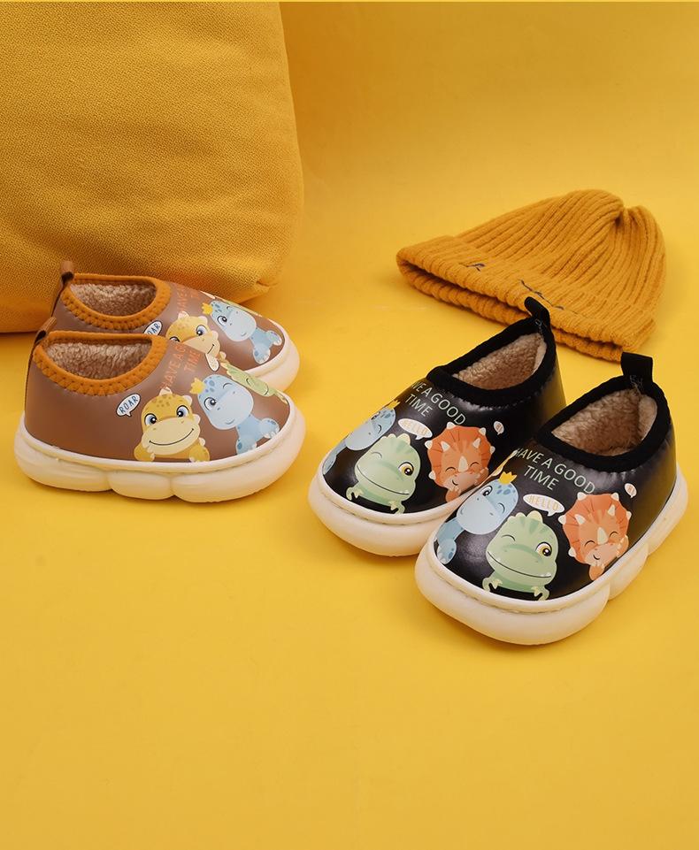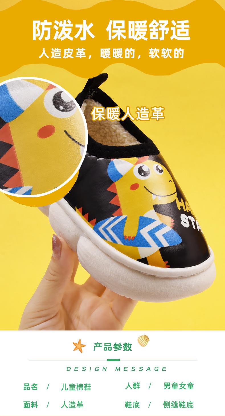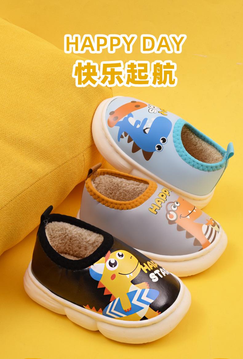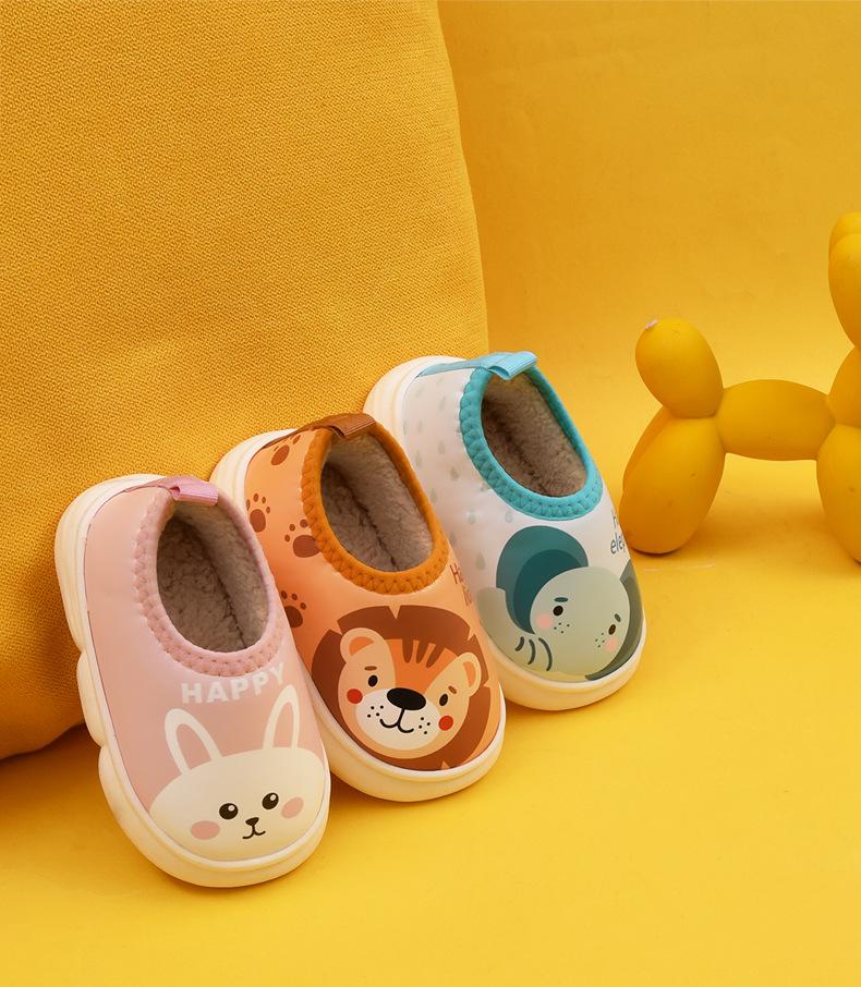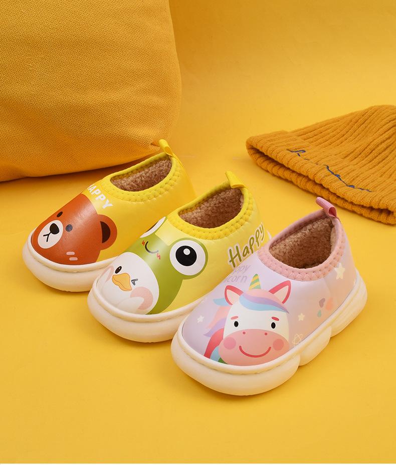Zapatillas de algodón para niños y niñas, cálidas y con dibujos animados, de felpa gruesa, antideslizantes e impermeables.