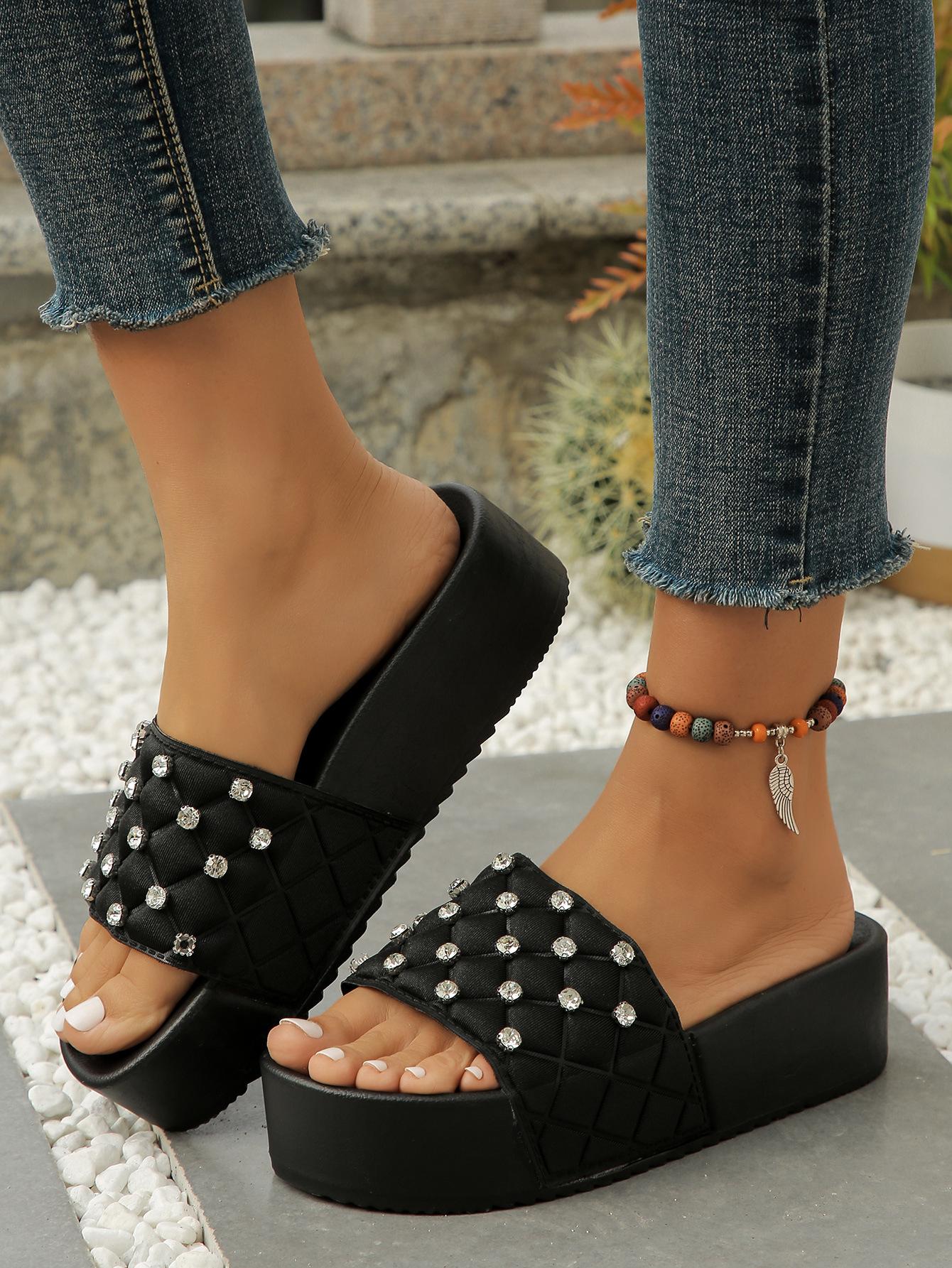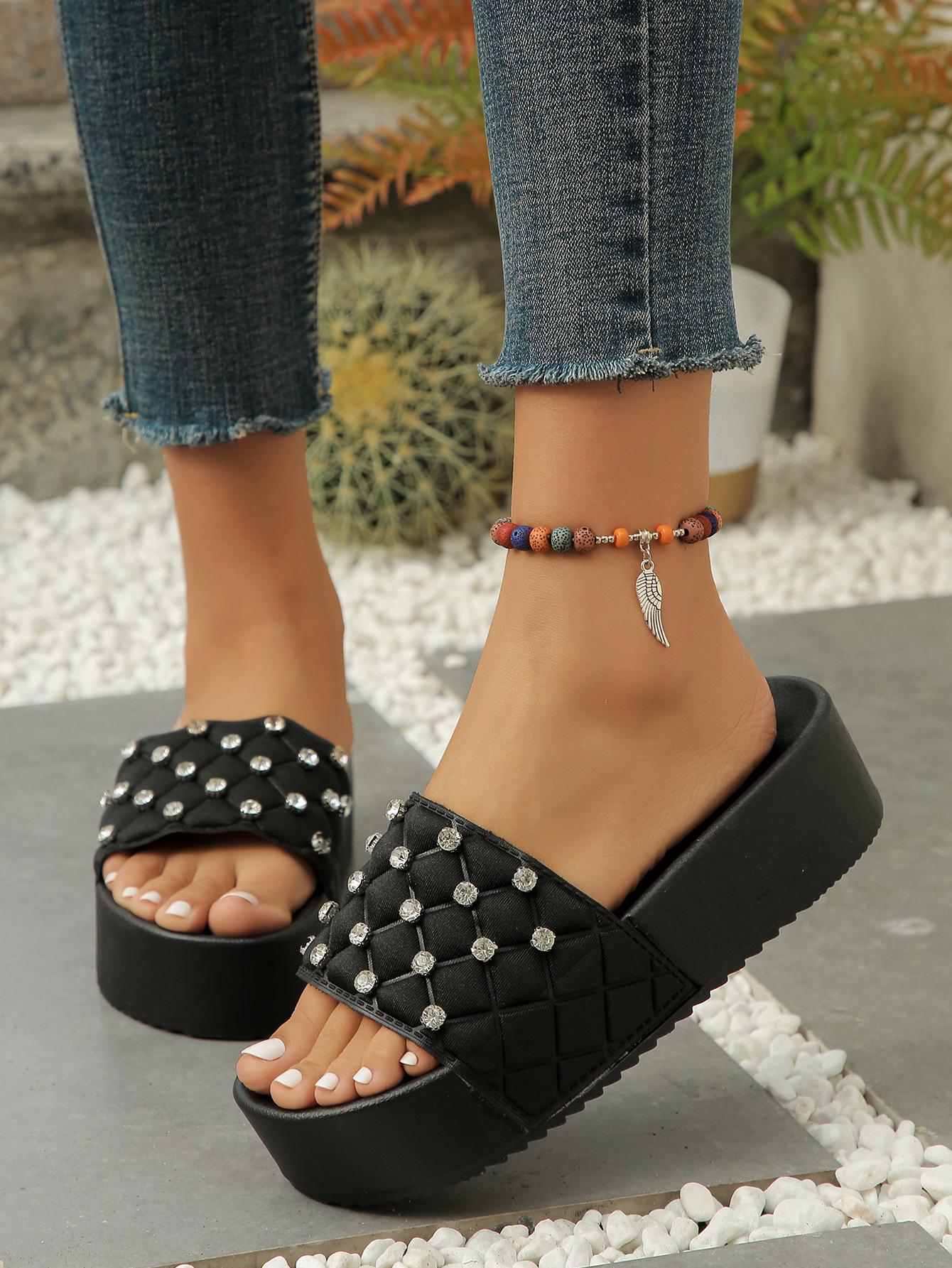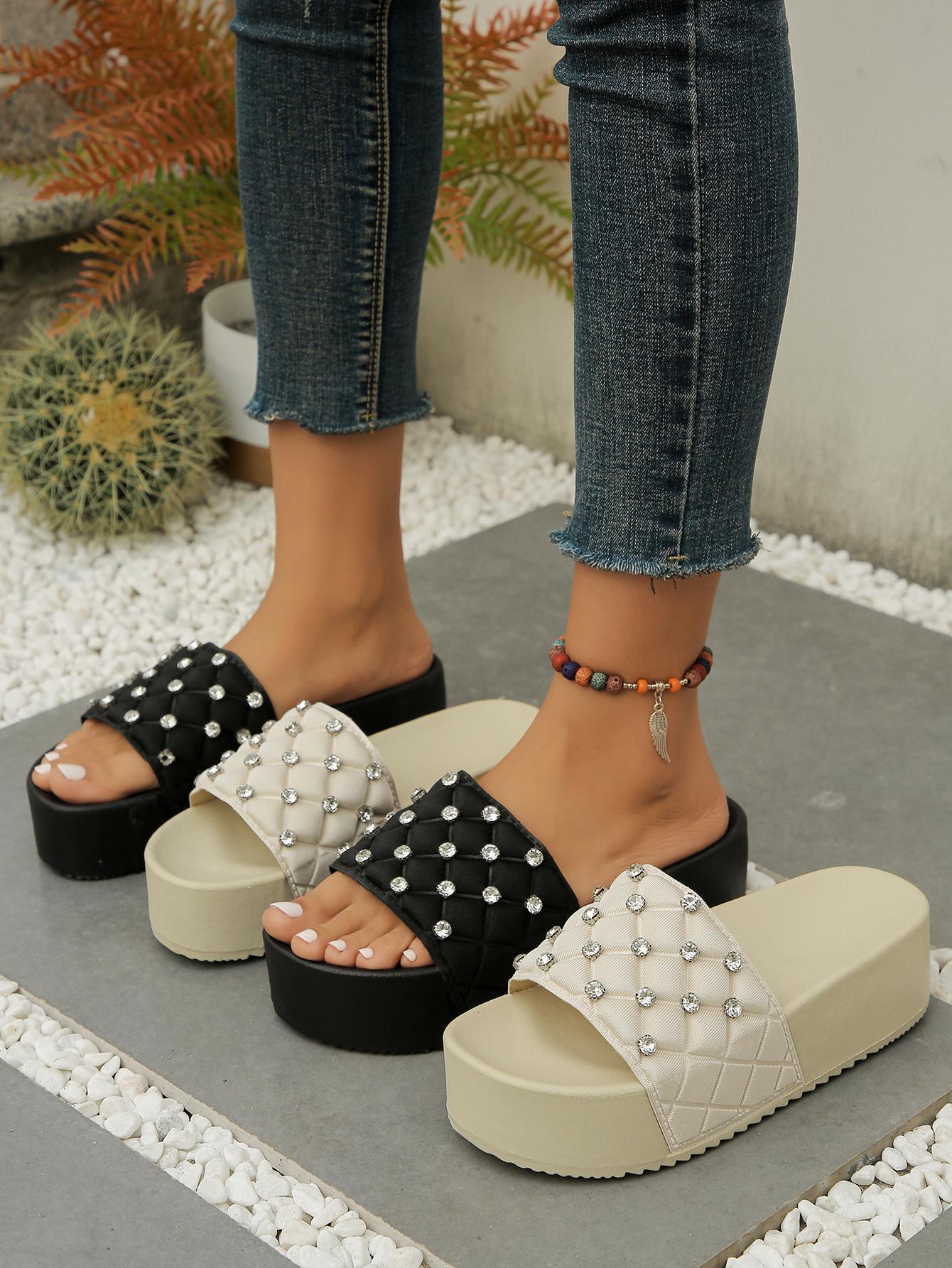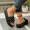 2025 Comercio Exterior Transfronterizo Sandalias de Plataforma con Pedrería Europea y Americana para Mujer Verano Playa Vacaciones Pantuflas de Suela Gruesa para Aumentar la Altura