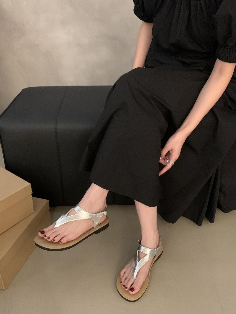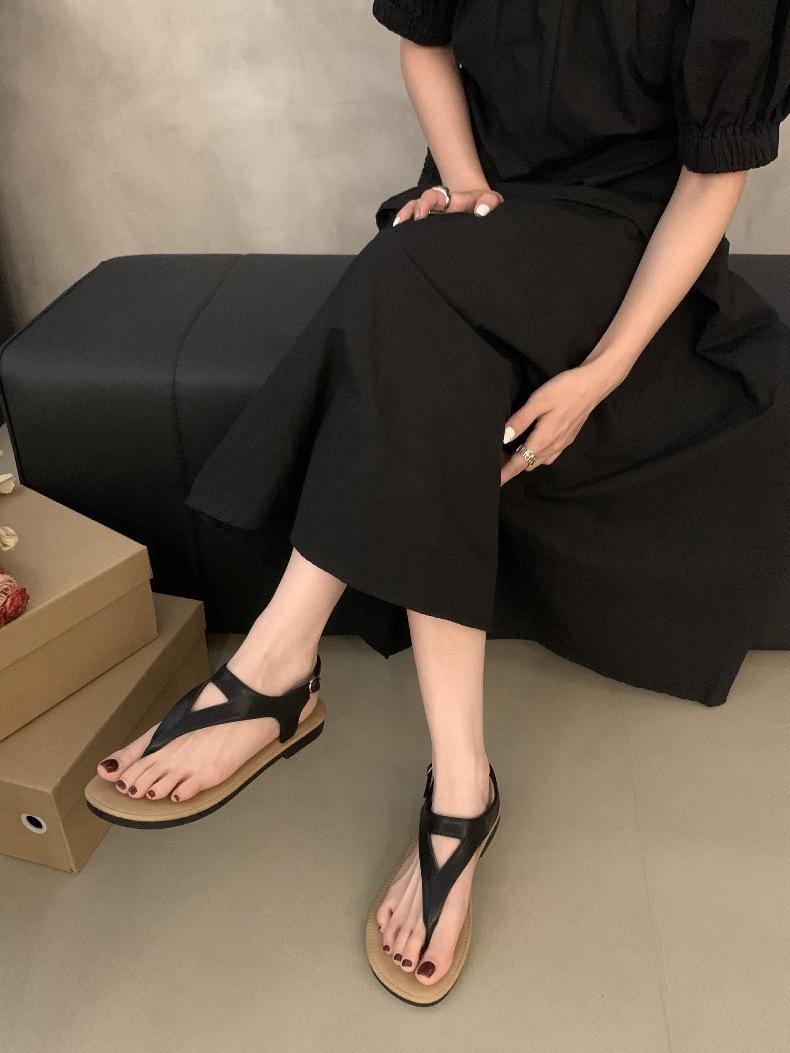 Flats Retro Francesas Chanclas Zapatos de Mujer 2024 Nuevo Verano Estilo Coreano Hada Versátil Suela Blanda Zapatos Romanos