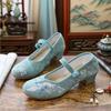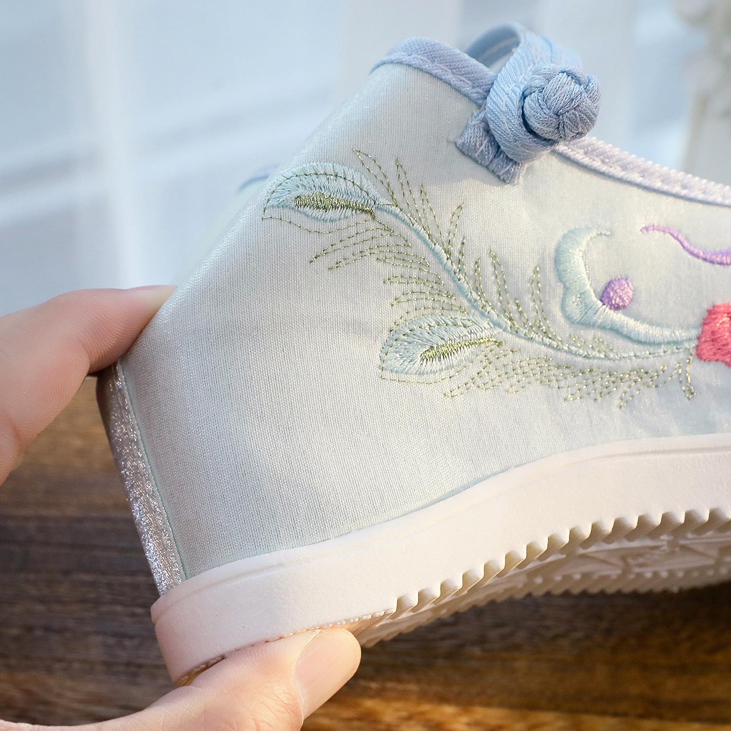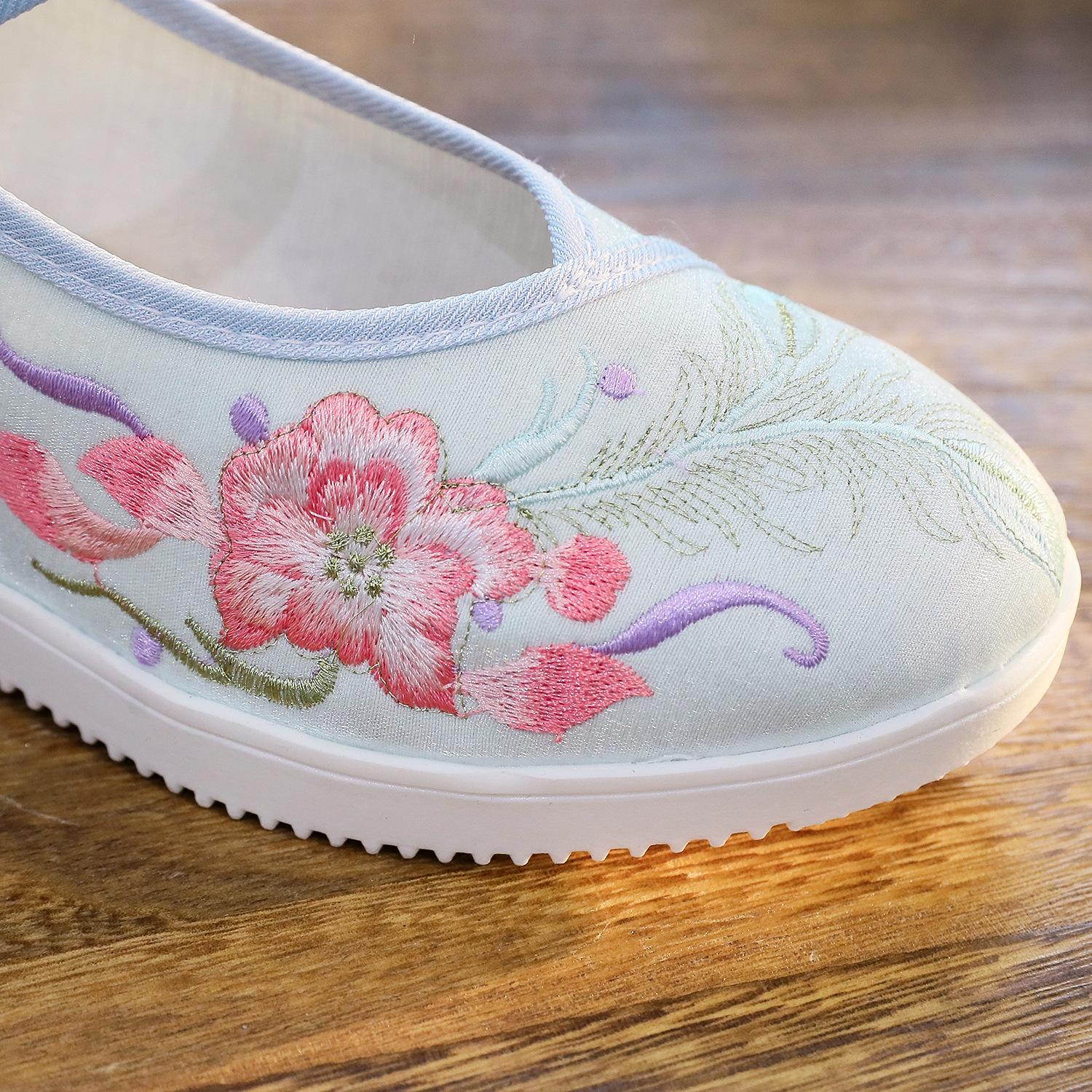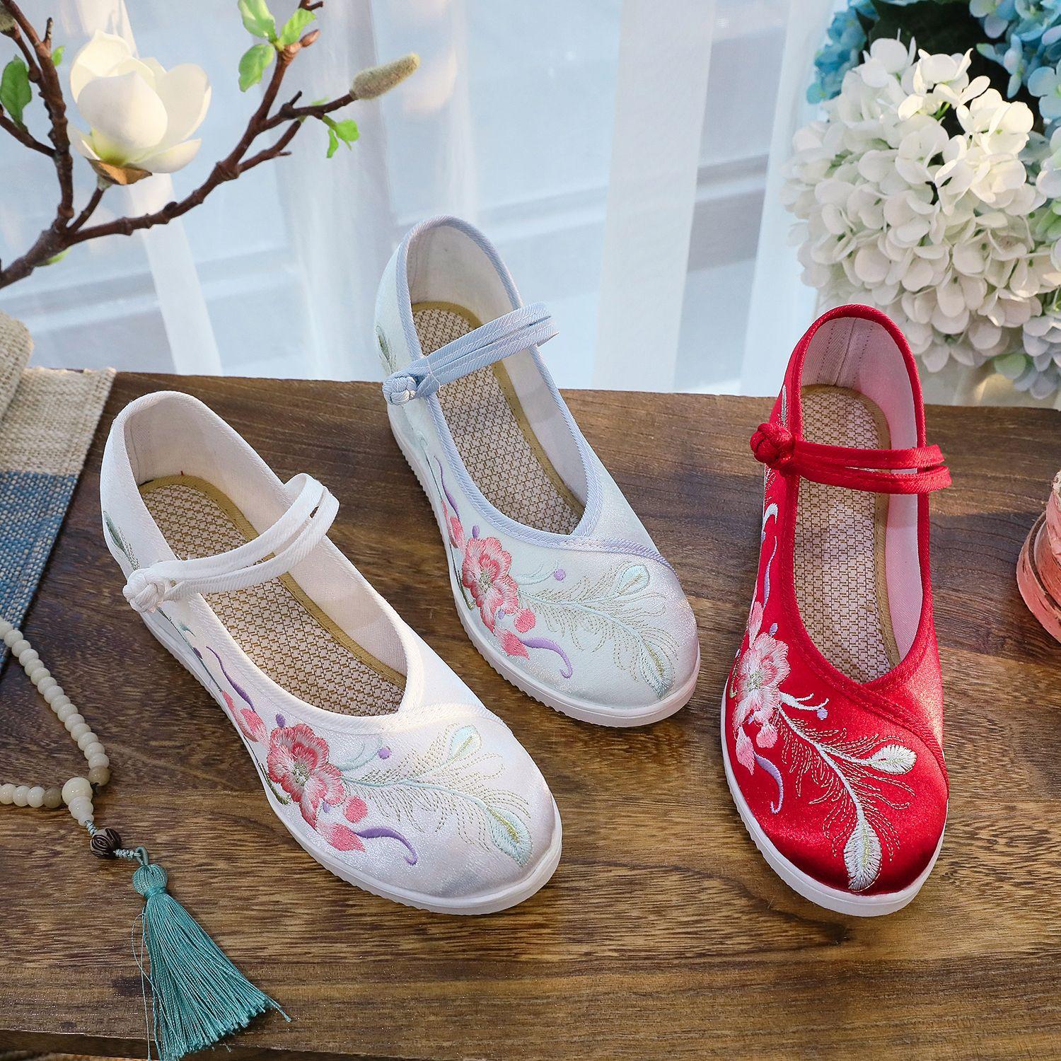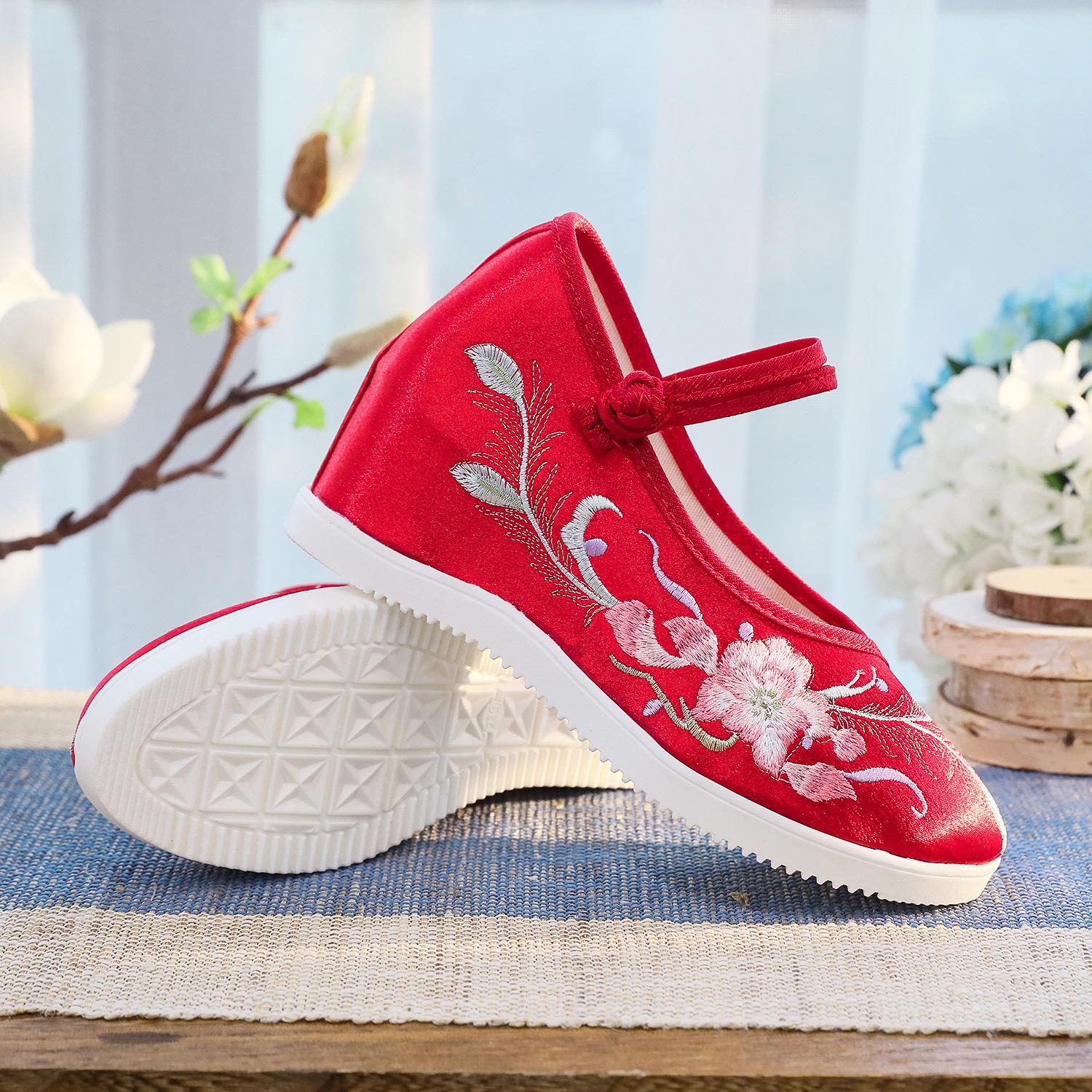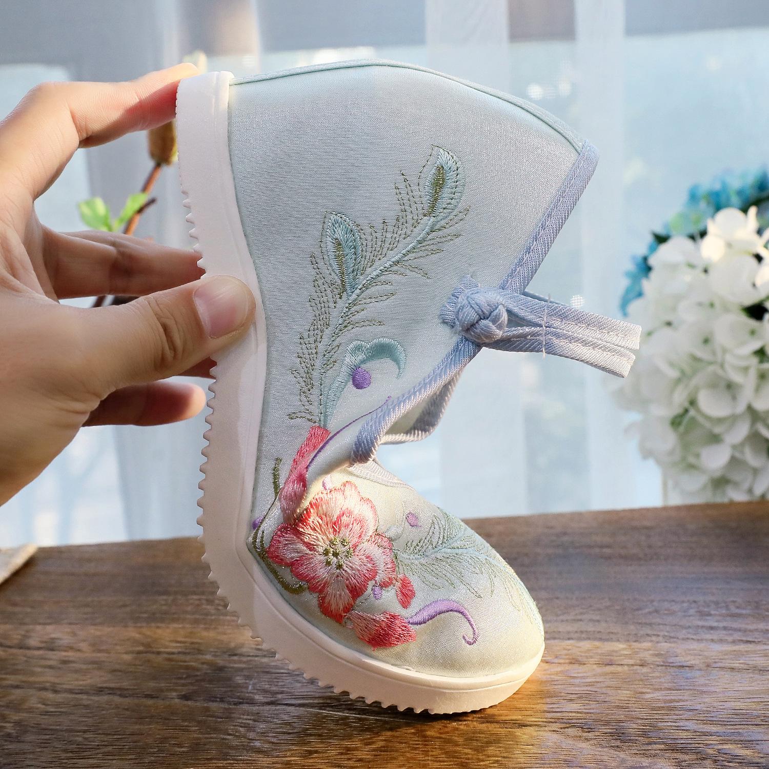 Fengyu 2024 Nuevo Estilo Altura Interior Aumentada Punta Redonda Zapatos de Tela de Pekín Antiguos para Mujer con Tacones Altos de la Dinastía Han y Suelas Gruesas Zapatos Bordados