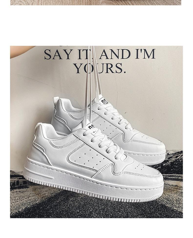 Tenis Nuevos de Primavera para Hombre, Zapatos de Hombre Deportivos y Casuales de Cuero Transpirable, Zapatos de Hombre Blancos Versátiles de Moda Juvenil con Suela Gruesa