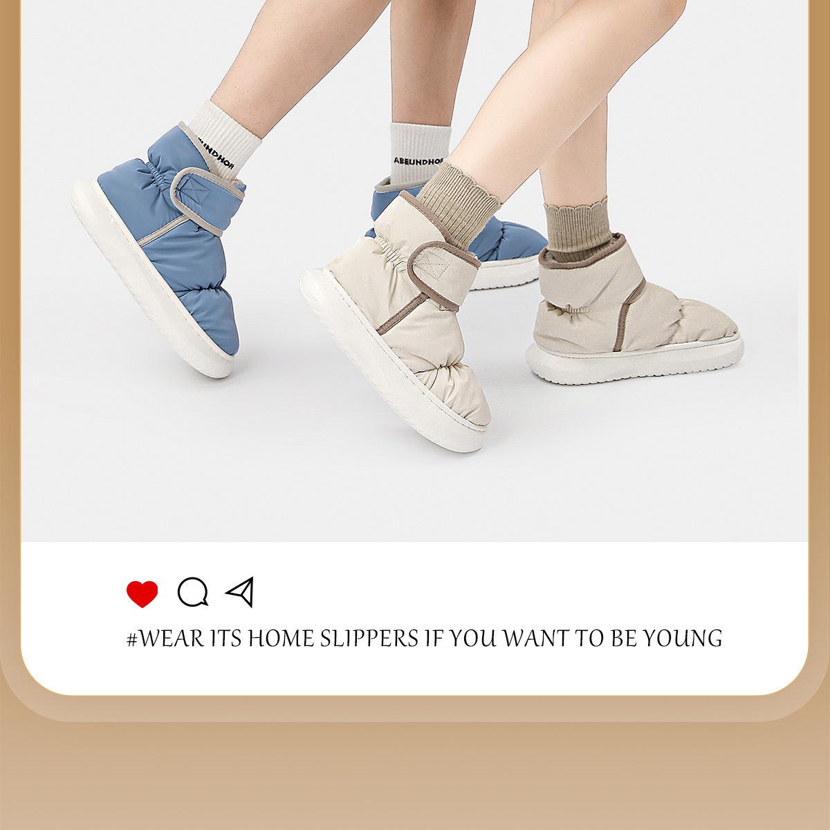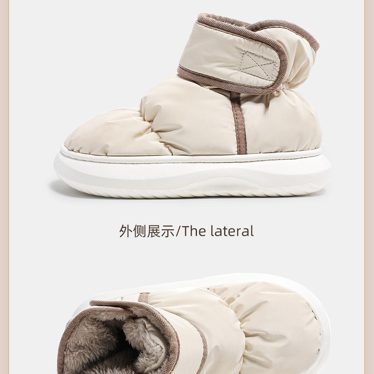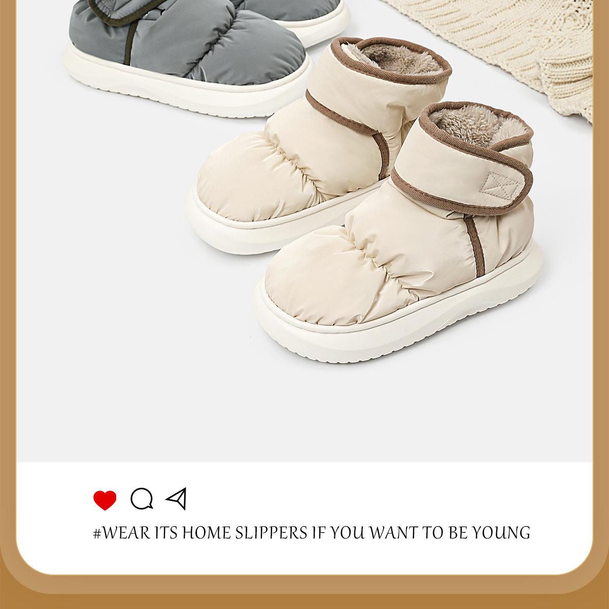 Pantuflas de Algodón de Pluma para Hombre Invierno 2025 Nuevo para Interior Hogar Forrado de Vellón Cálido Bolsa con Zapatos de Algodón Impermeables para Mujer Invierno