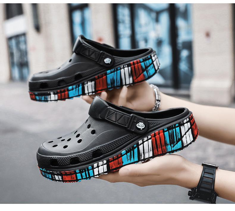 Zapatillas Baotou informales de EVA de verano para hombre, de talla grande, con agujeros, para conducir, para playa y exteriores.