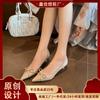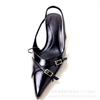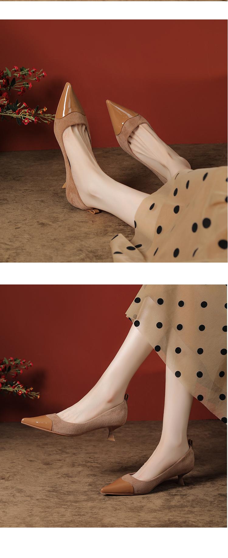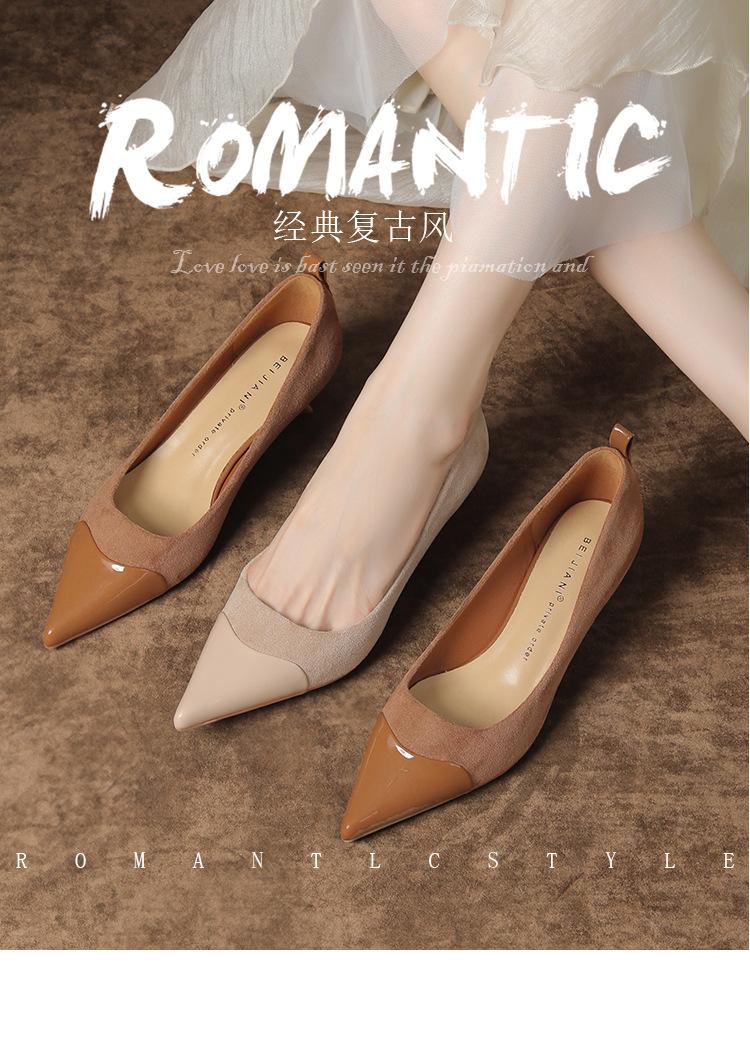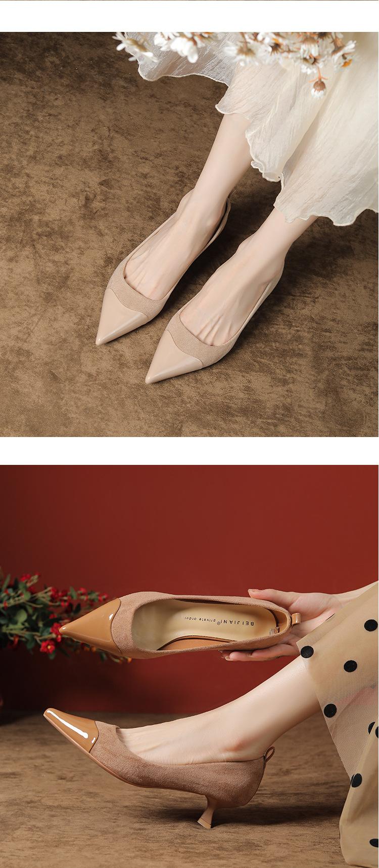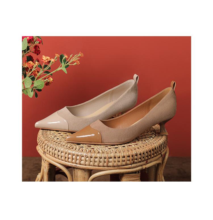 1578-17 Costuras de cachemira Miles de tacones altos de viento dorado Otoño 2025 Nuevos zapatos elegantes de cuero puntiagudo