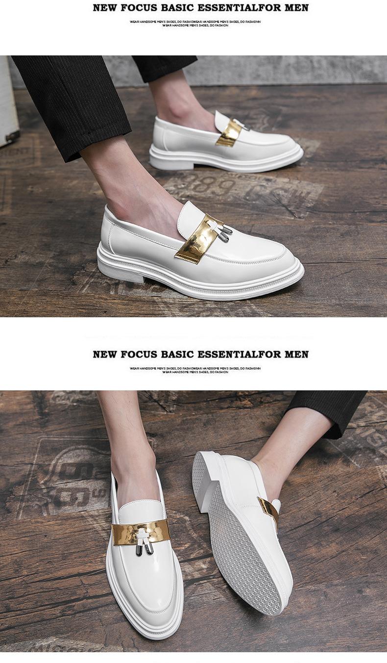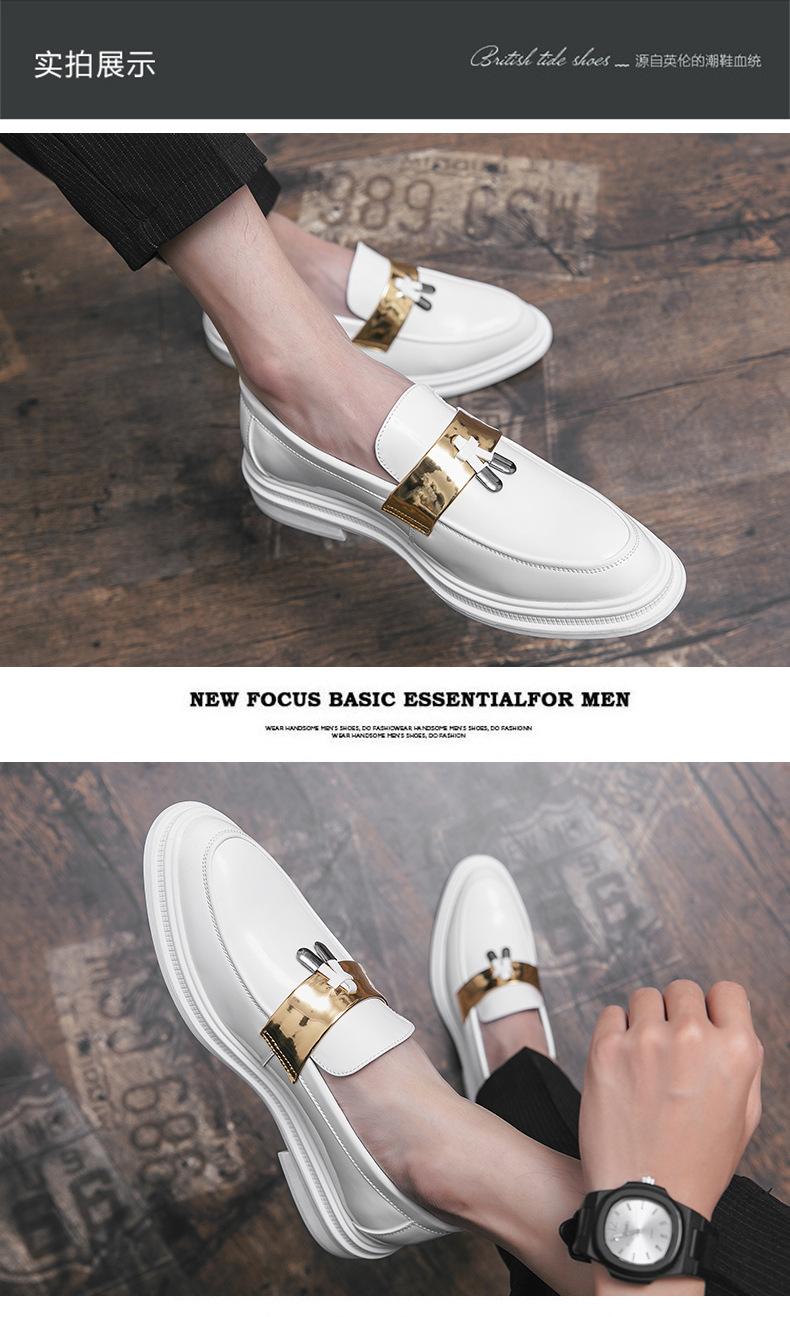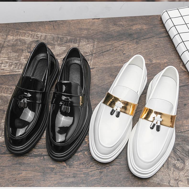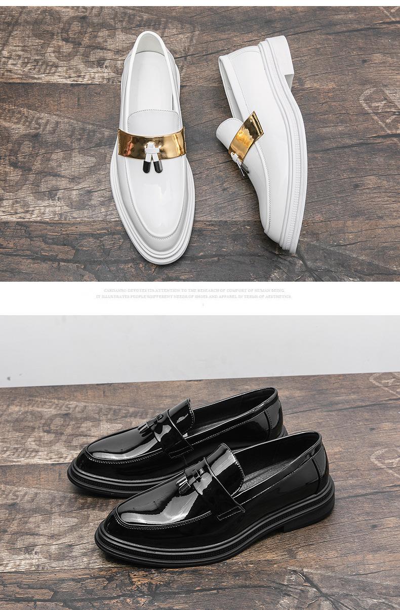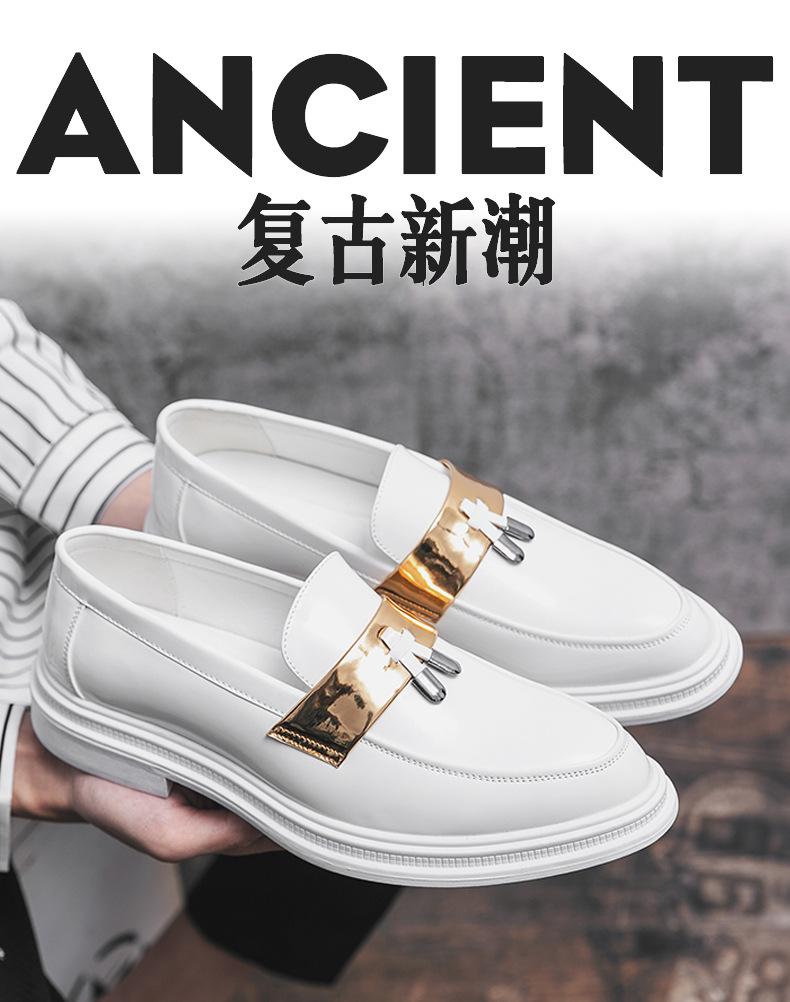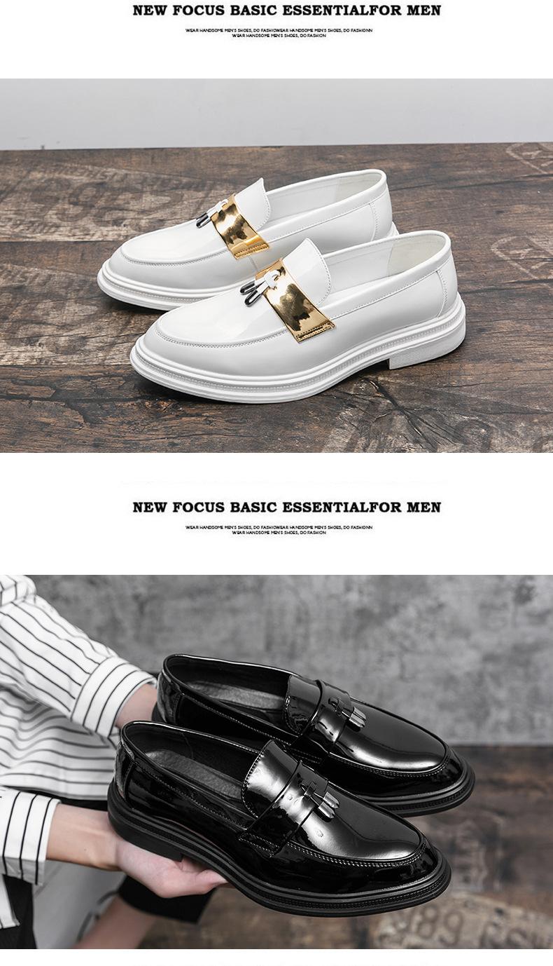 Zapatos de Cuero Blancos para Hombre Verano 2023 Estilo Británico Casual Fondo Suave Zapatos de Frijol Mocasines de Cara Brillante Slip-on Zapatos de Moda