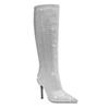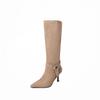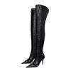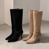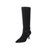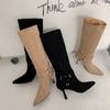 Botas altas hasta la rodilla de doble uso con remaches de metal puntiagudos de tacón alto y costura vaquera de comercio exterior, zapatos de mujer de talla grande, novedad de 2024