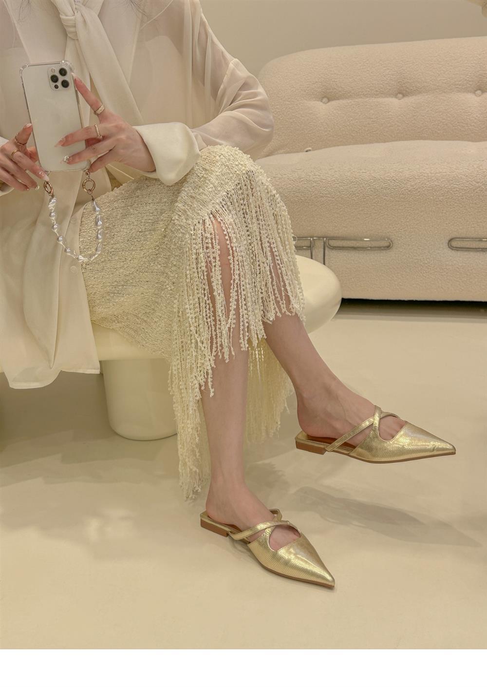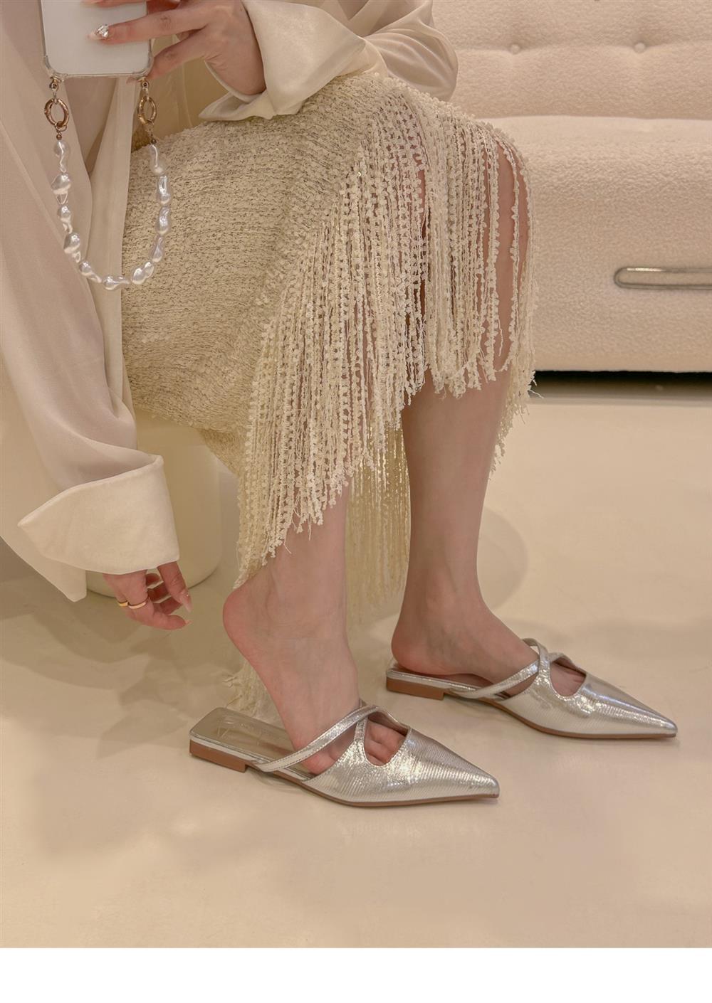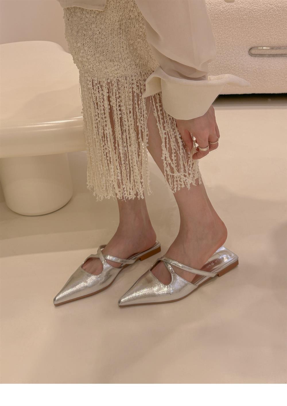 ¡Moderna y buena para usar! Pantuflas de Punta para Mujer Verano 2024 Nuevas Zapatos Planos de Tacón Bajo con Tiras Cruzadas