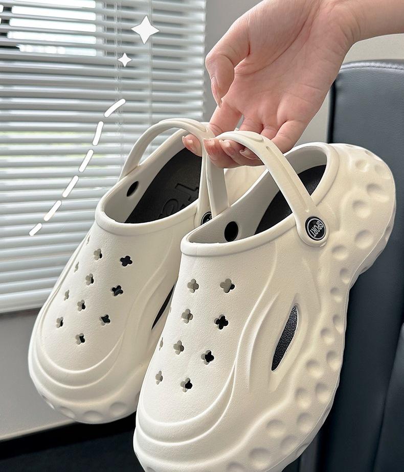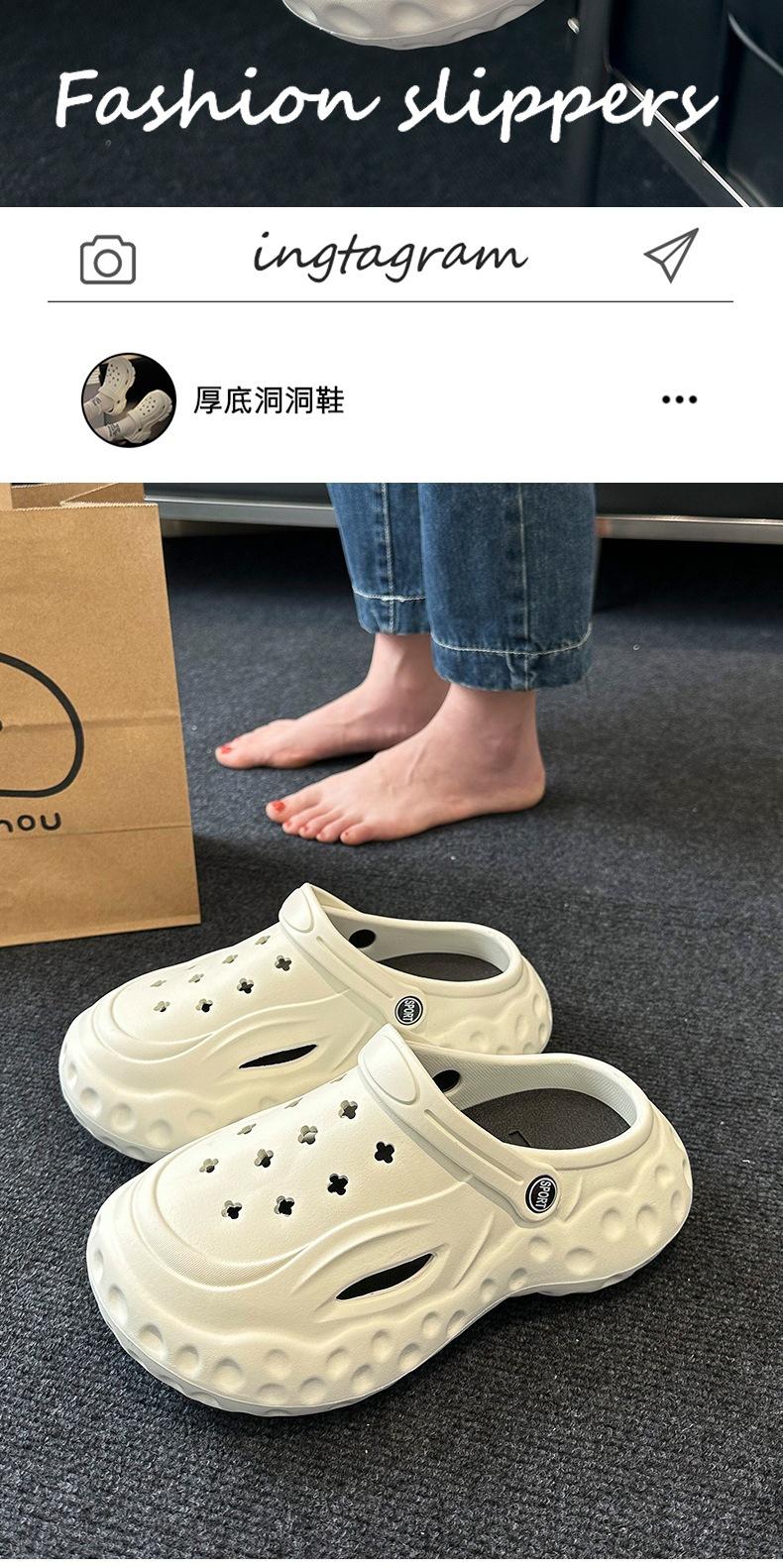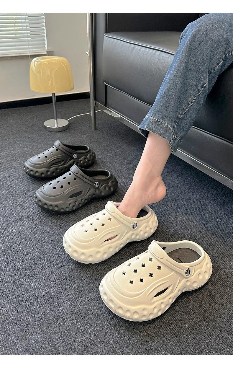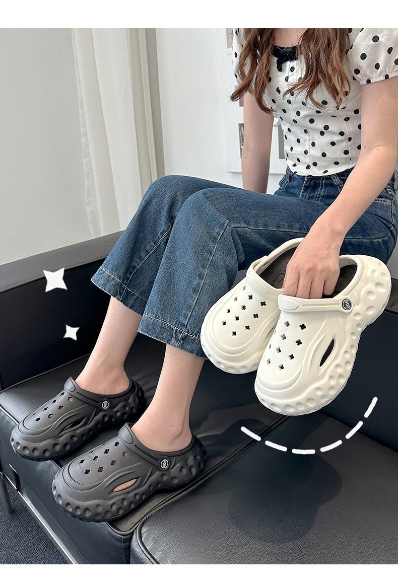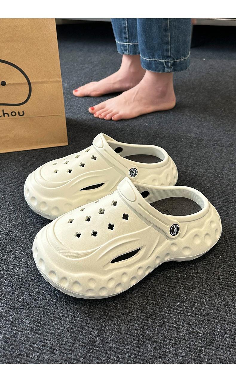 Zapatos de suela gruesa con agujeros para mujer, ropa exterior de verano, accesorios de dibujos animados para el hogar, sandalias de playa Baotou, zapatos de jardín, zapatillas de mujer