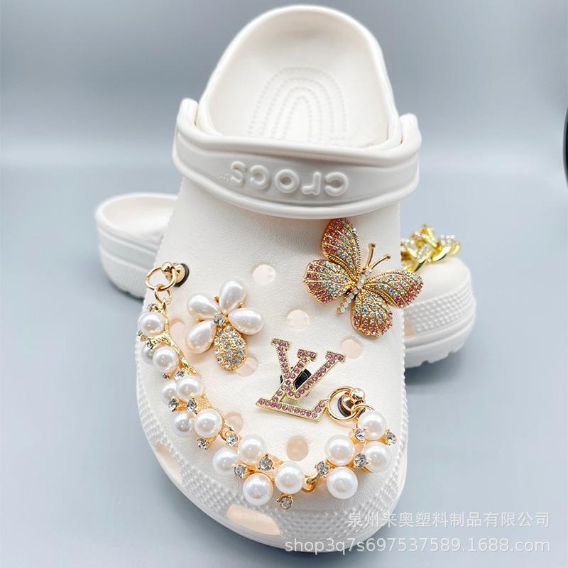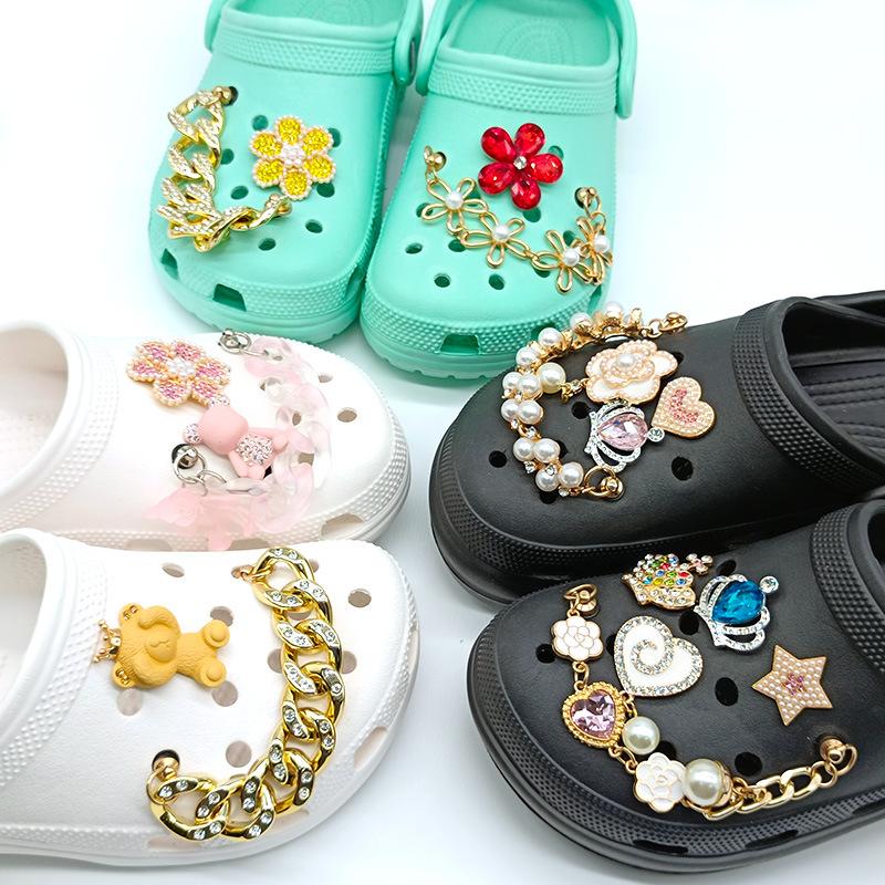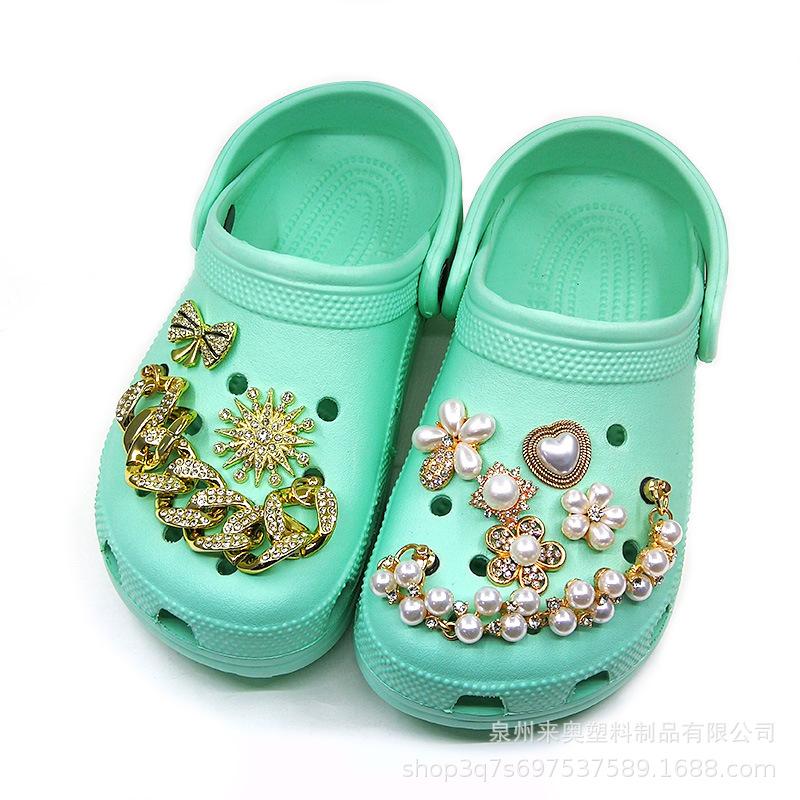 Zapatos de cueva nuevos, zapatos de metal, flores, accesorios de bricolaje, zapatos de jardín que combinan con todo, accesorios decorativos, hebilla de zapato de cristal desmontable.