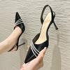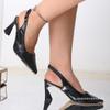 Sandalias de tacón alto con punta cerrada de color liso para mujer, zapatos de una sola capa con hebilla y tacón grueso de talla grande, de comercio exterior japonés y coreano