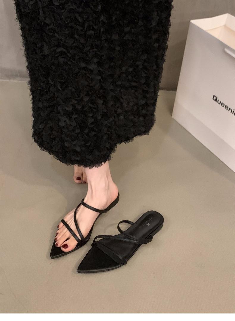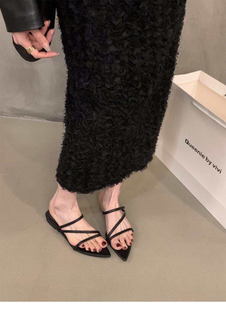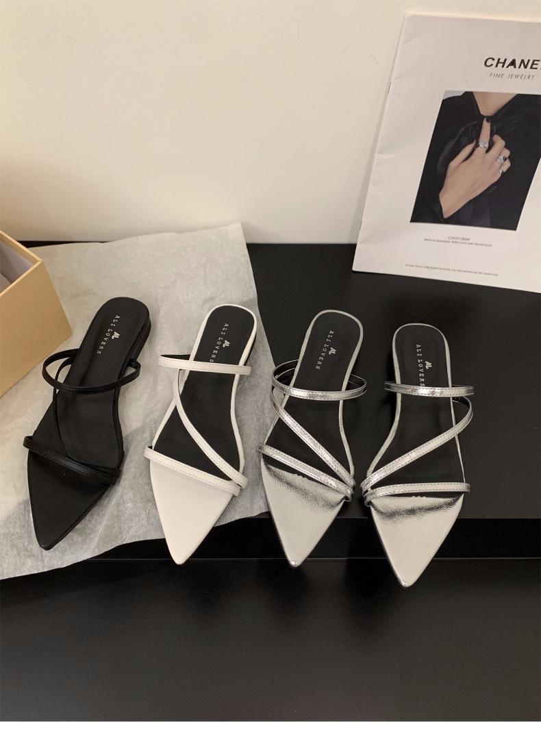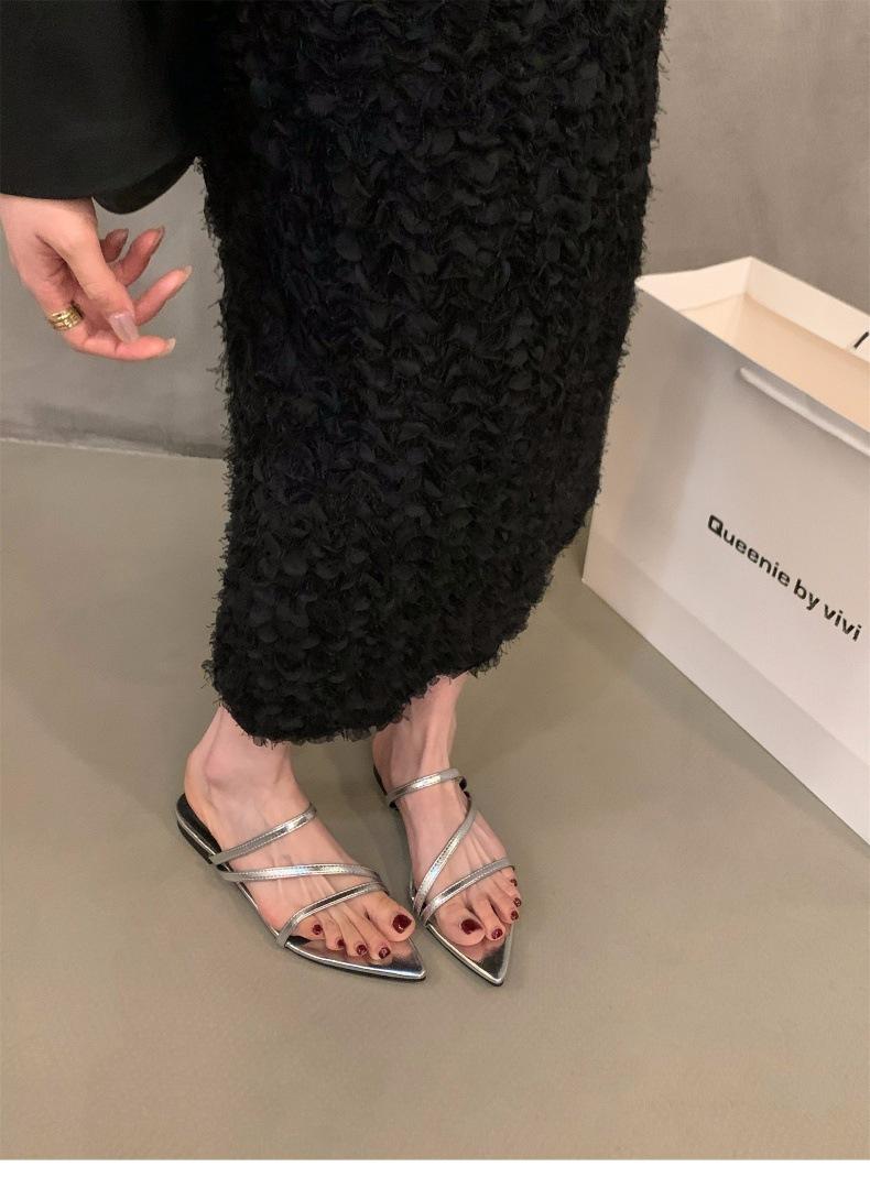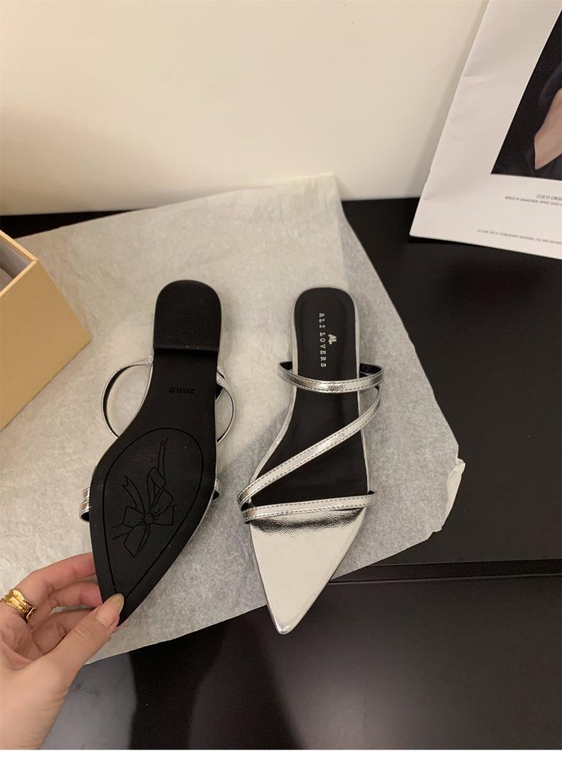 Sandalias y pantuflas pequeñas de estilo francés, planas y plateadas, zapatos de hadas, ropa exterior, nuevo estilo 2024, sandalias romanas de tiras finas de verano