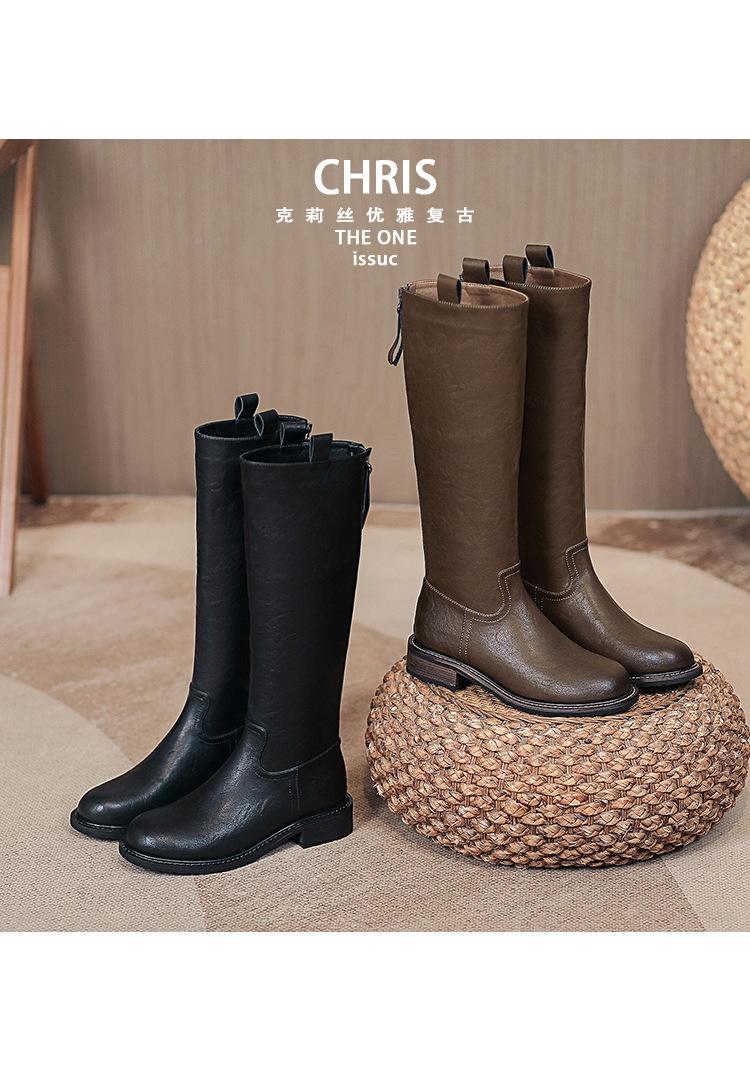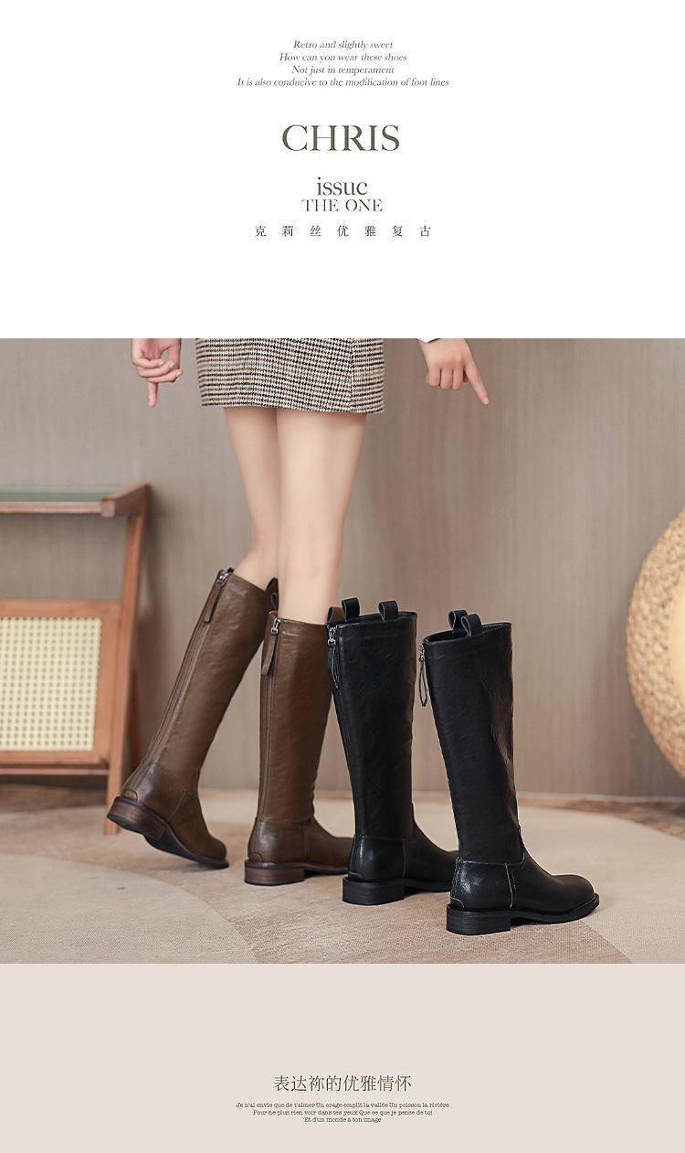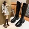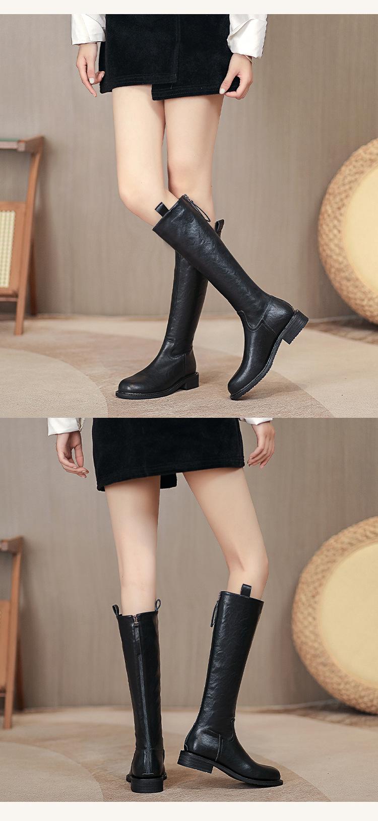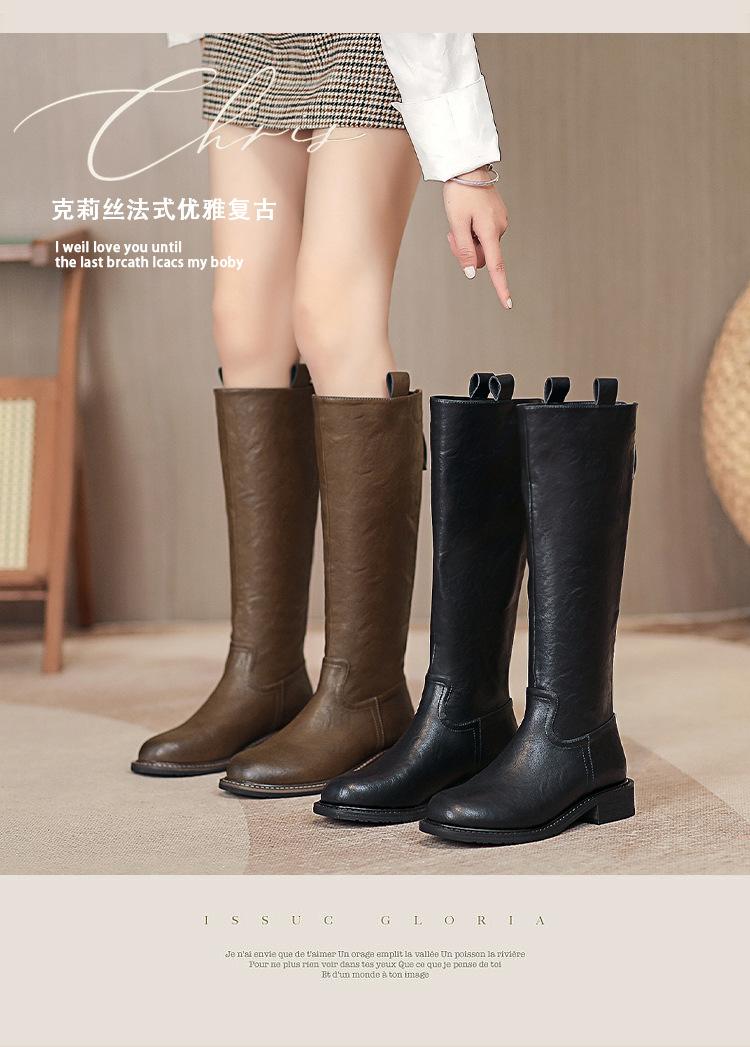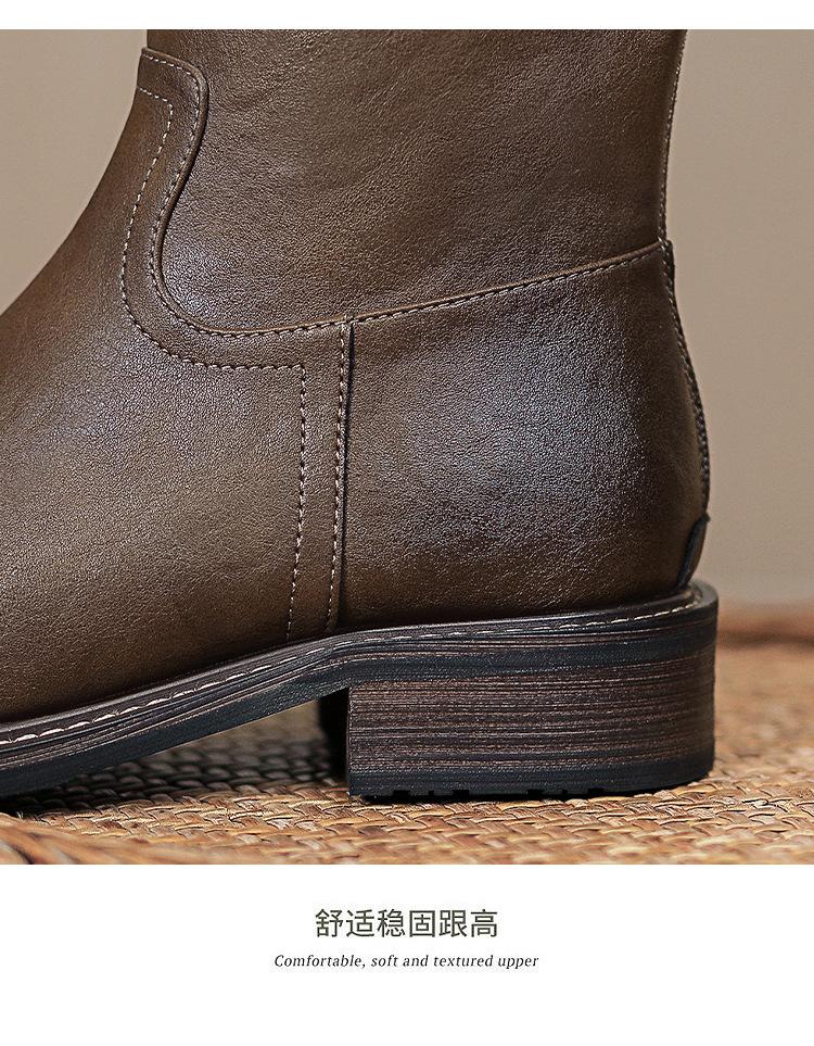 Botas Teahoo Botas Negras Retro Hasta la Rodilla Botas de Caballero para Mujer 2024 Otoño e Invierno Versátiles con Aspecto Adelgazante Botas de Media Caña