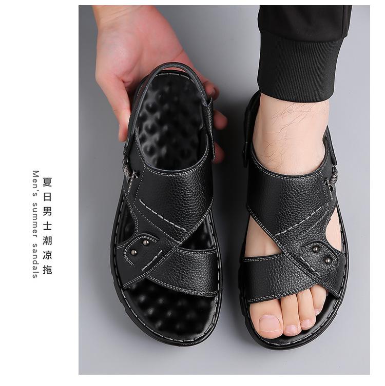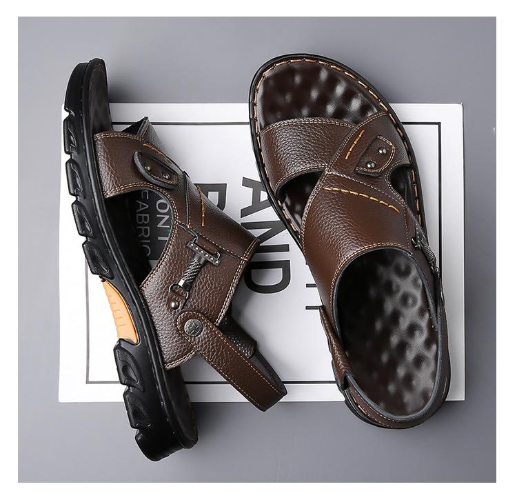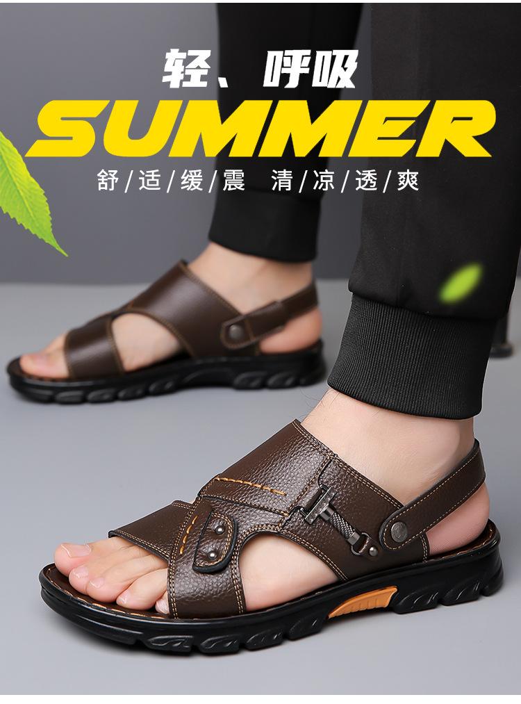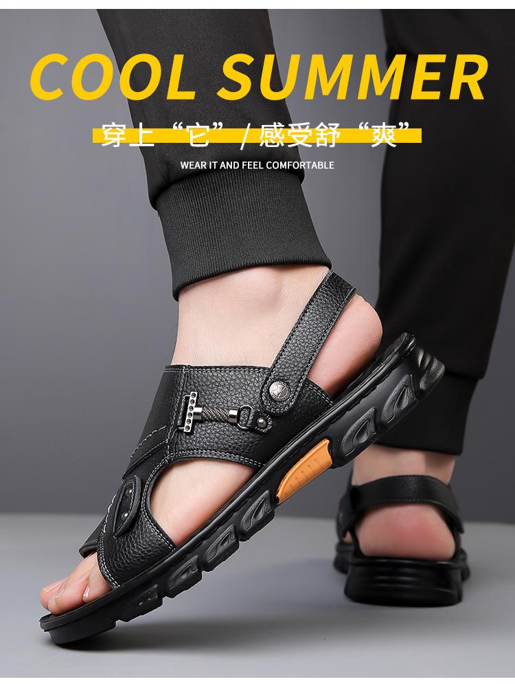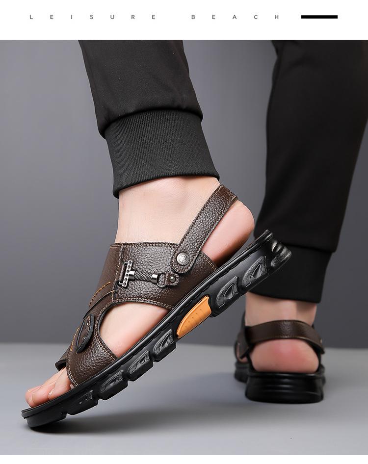 Sandalias de Cuero Genuino para Hombre 2025 Verano Nuevo Casual Suela Blanda Antideslizante Zapatos de Playa Sandalias y Pantuflas de Doble Uso para Exteriores para Hombre