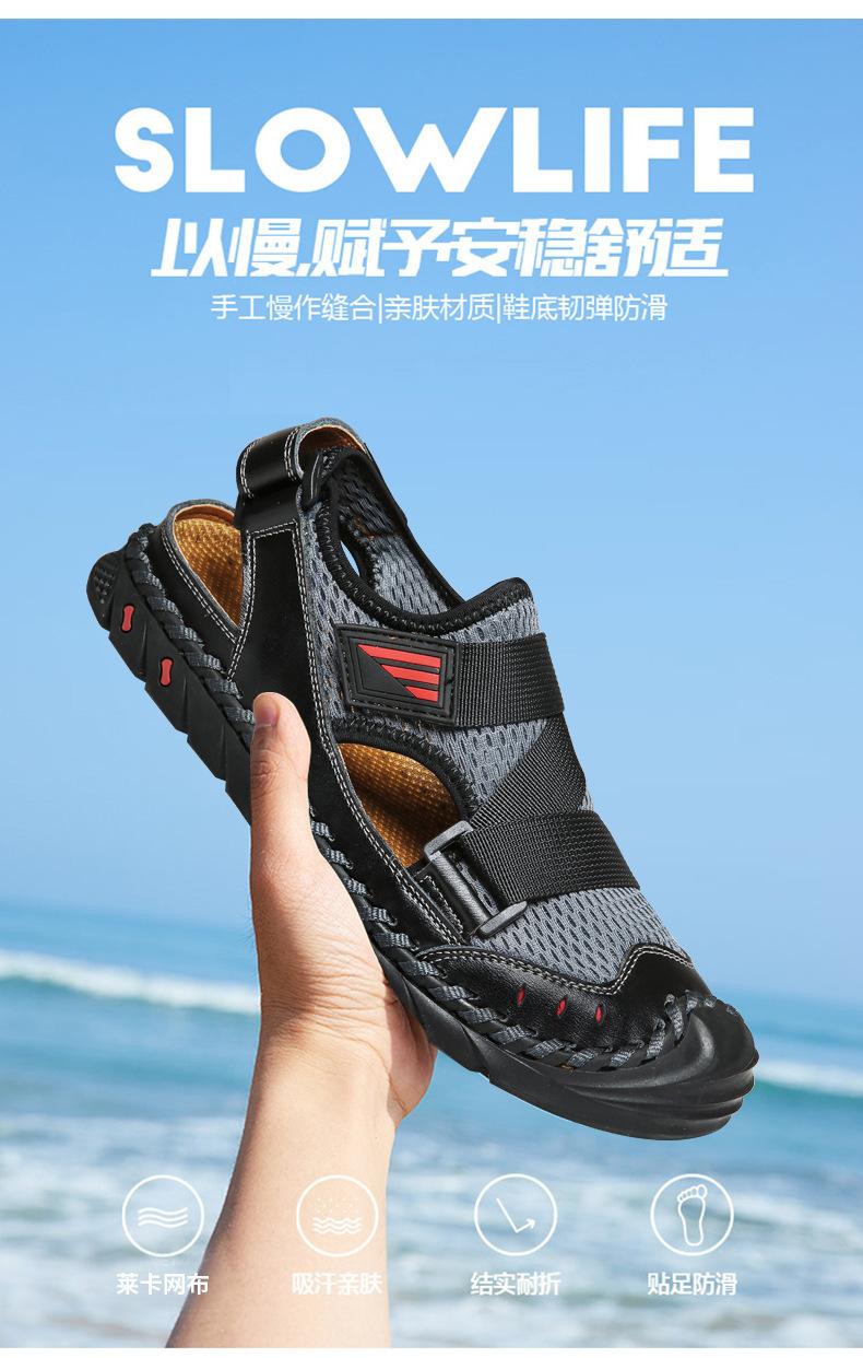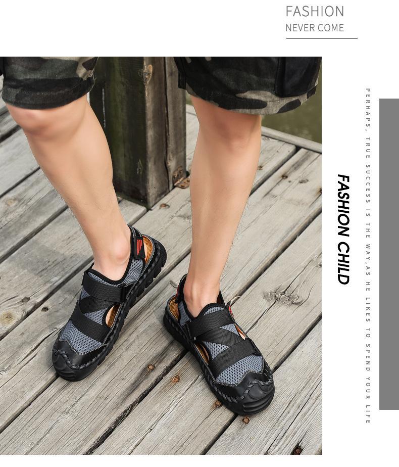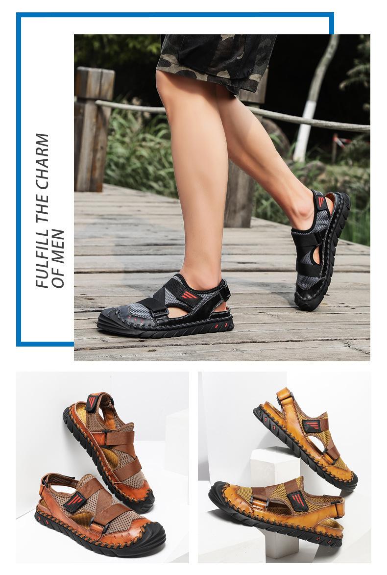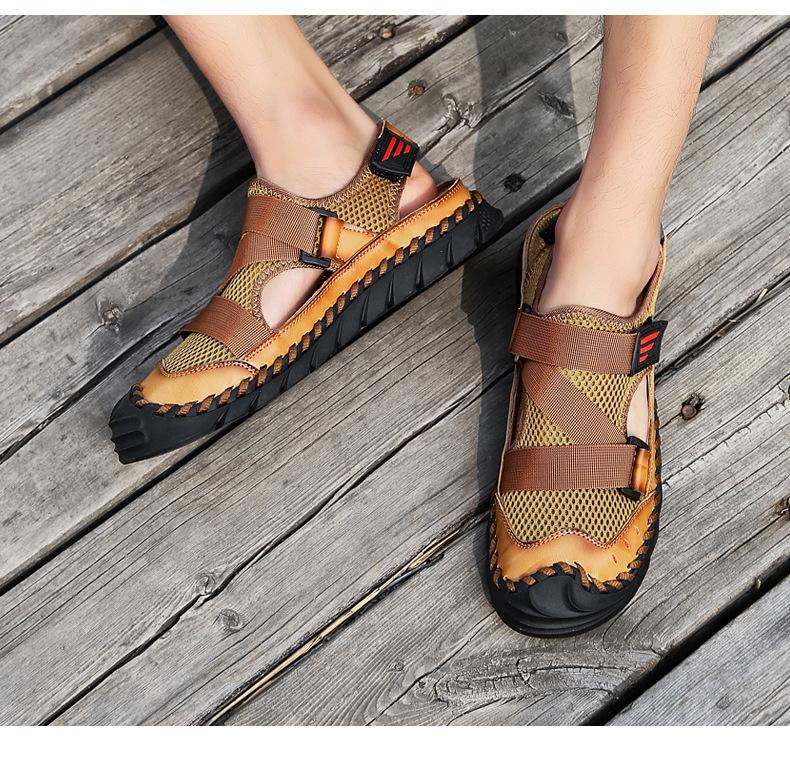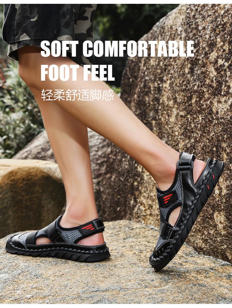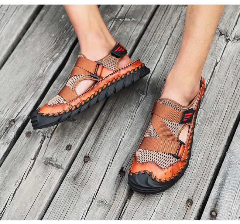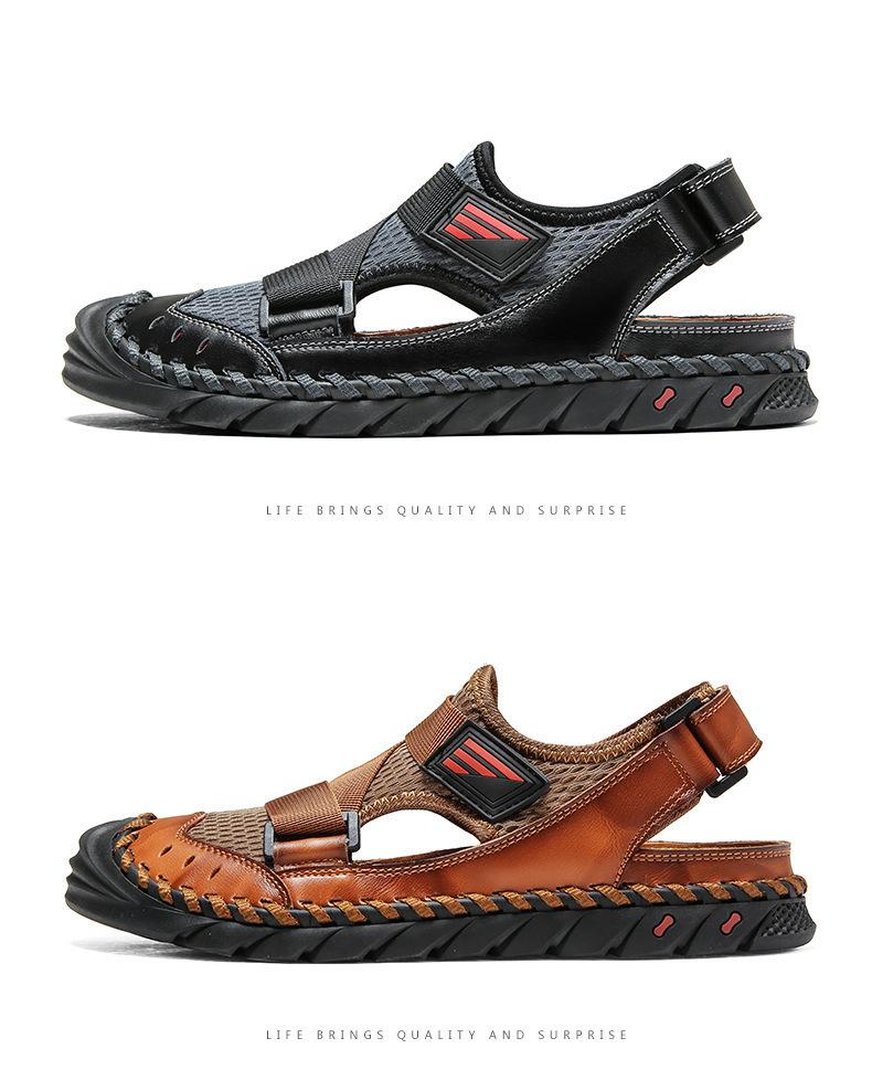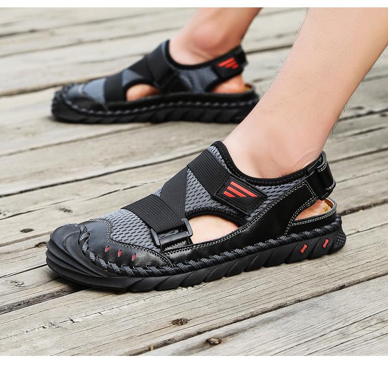 Sandalias de playa para hombre con punta cerrada y suela suave, sin cordones, de cuero, con costuras, talla grande, 2021